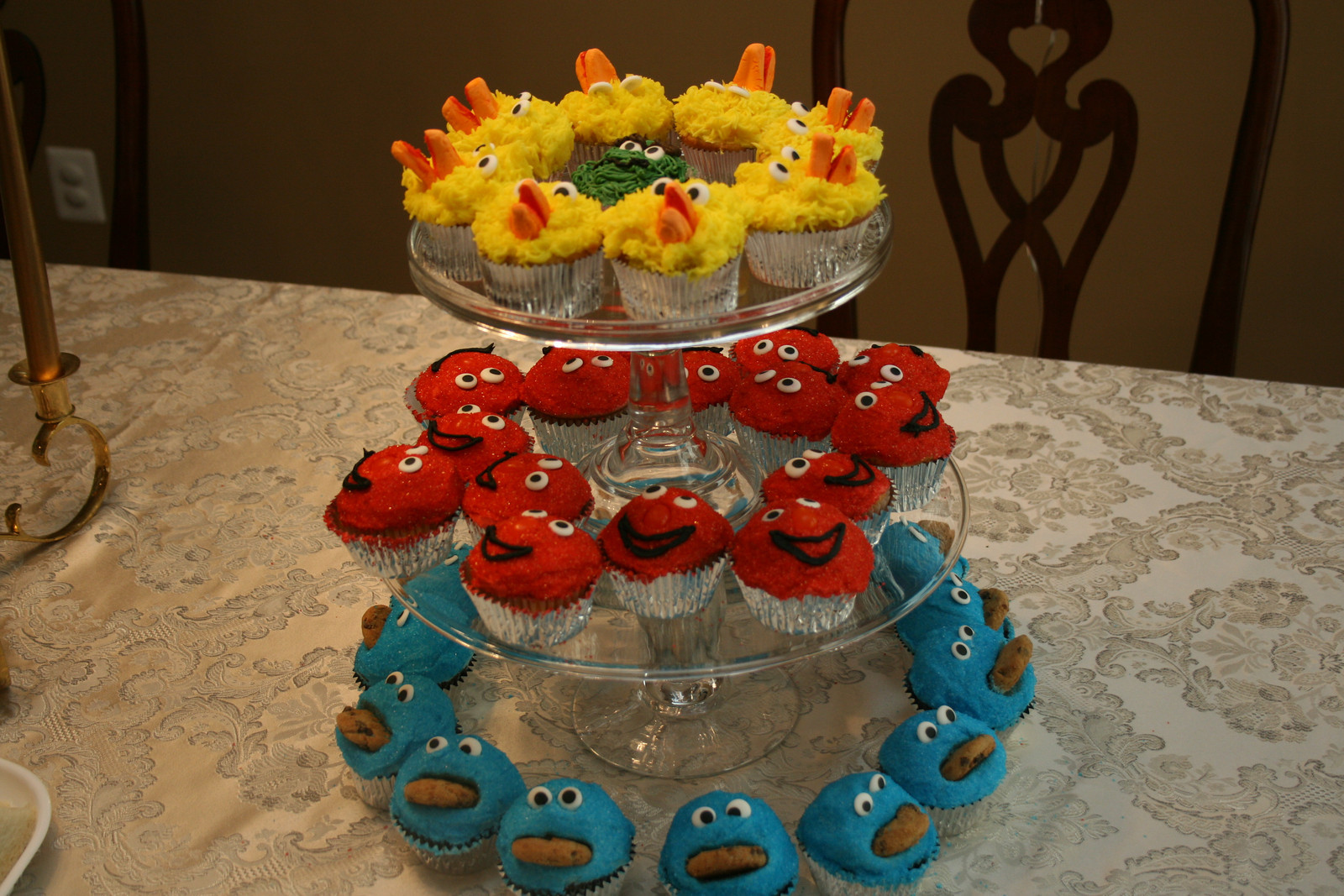 Singing On Sesame Street. Big Bird And Oscar The Grouch Cupcakes.