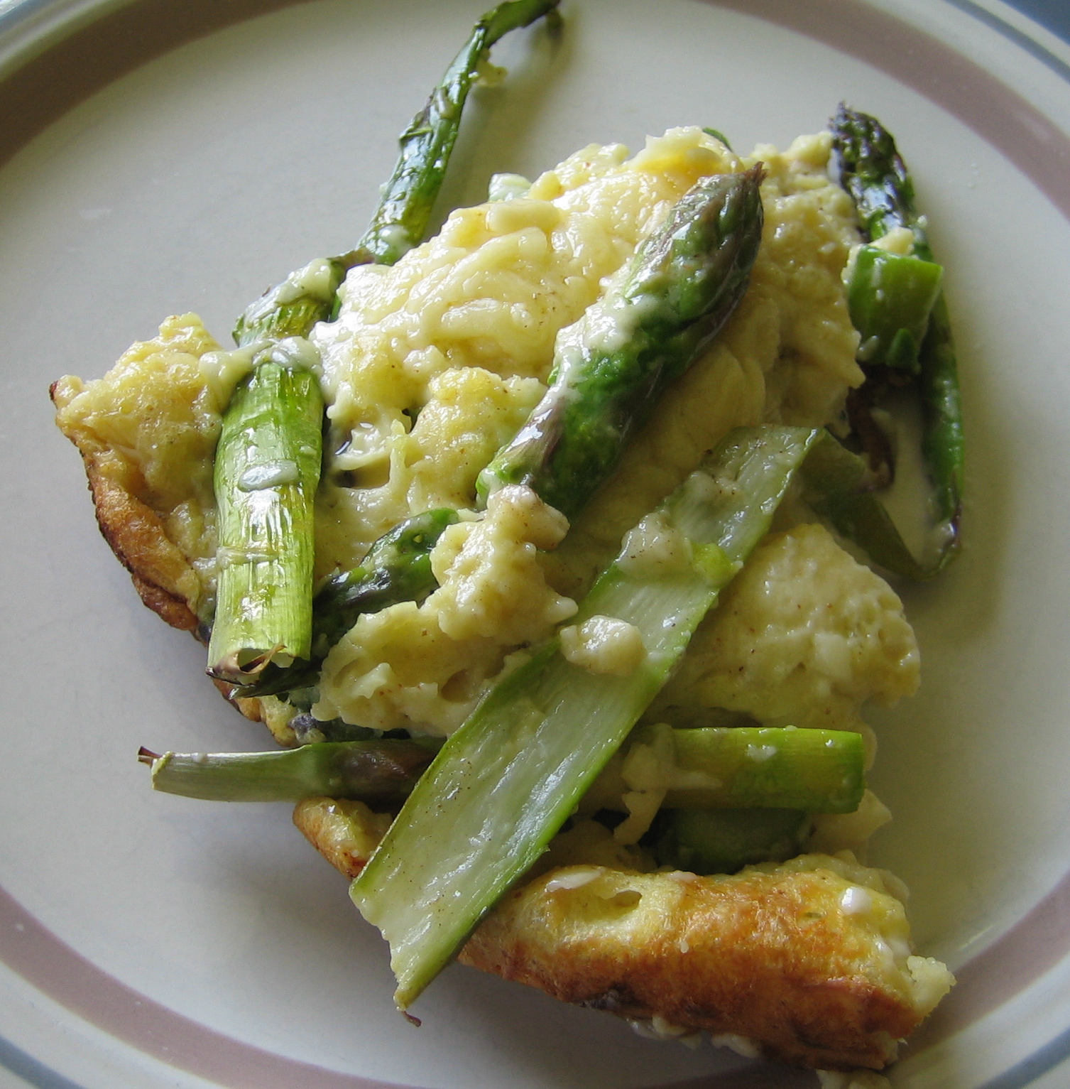 Last Saturday DaHub was reading the newspaper and said “This looks good”. He was referring to this recipe for Asparagus And Ramp Skillet Soufflé. You know what? I made it the next day for breakfast and it was good. Really good.