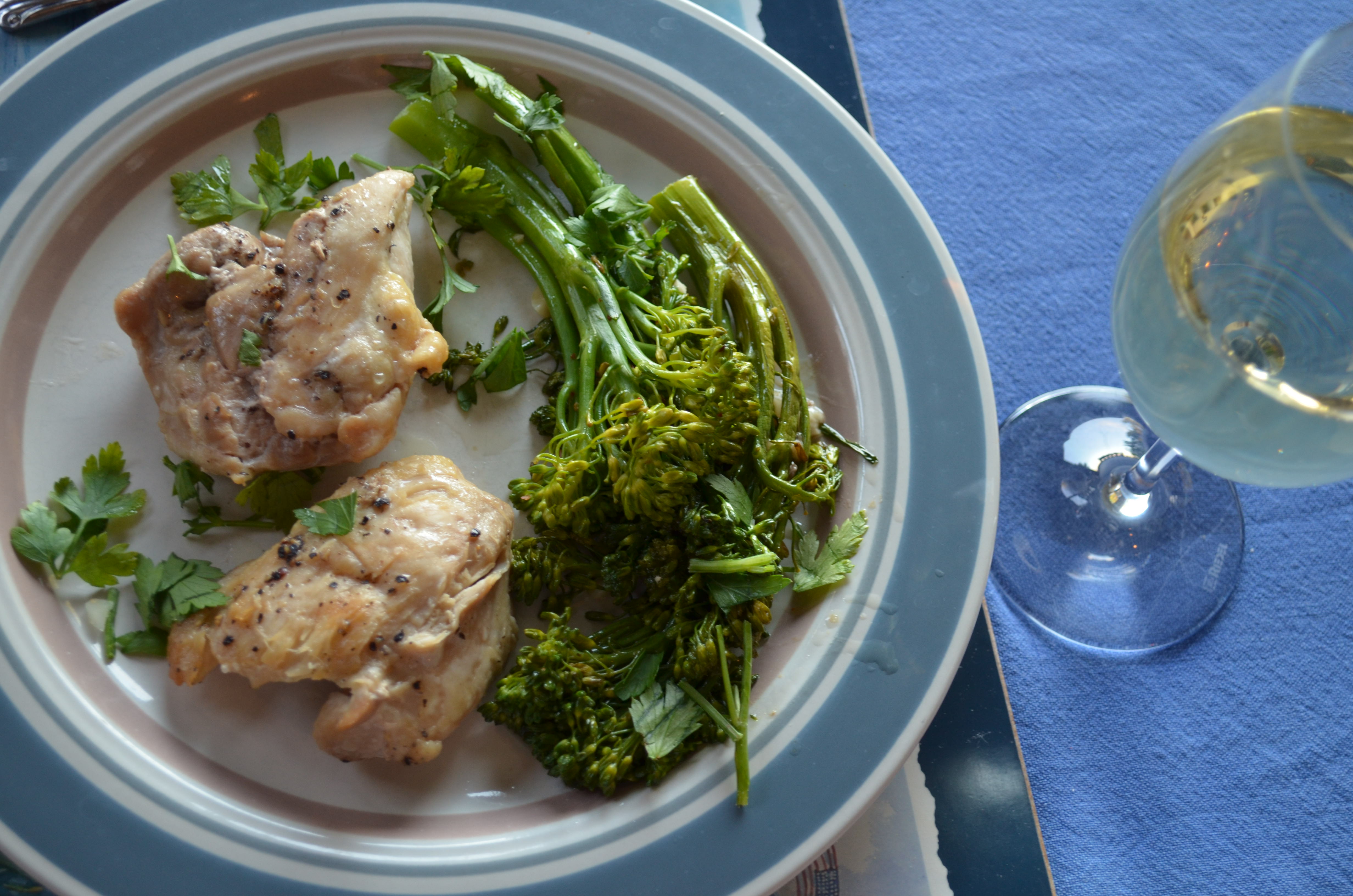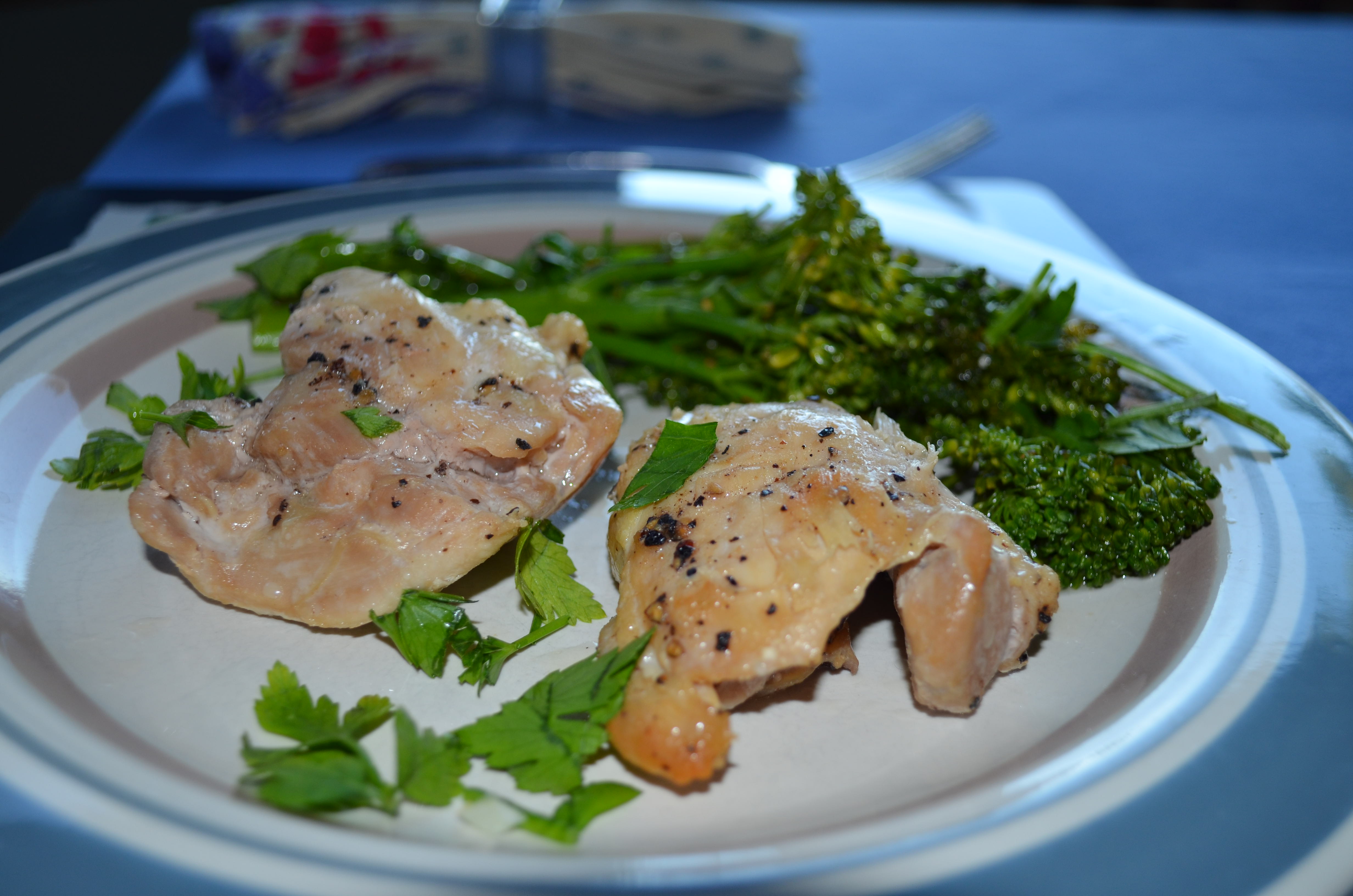1 1/2 pounds chicken thighs (I had boneless on hand, but with skin would be really good…it would get nice and crisp)