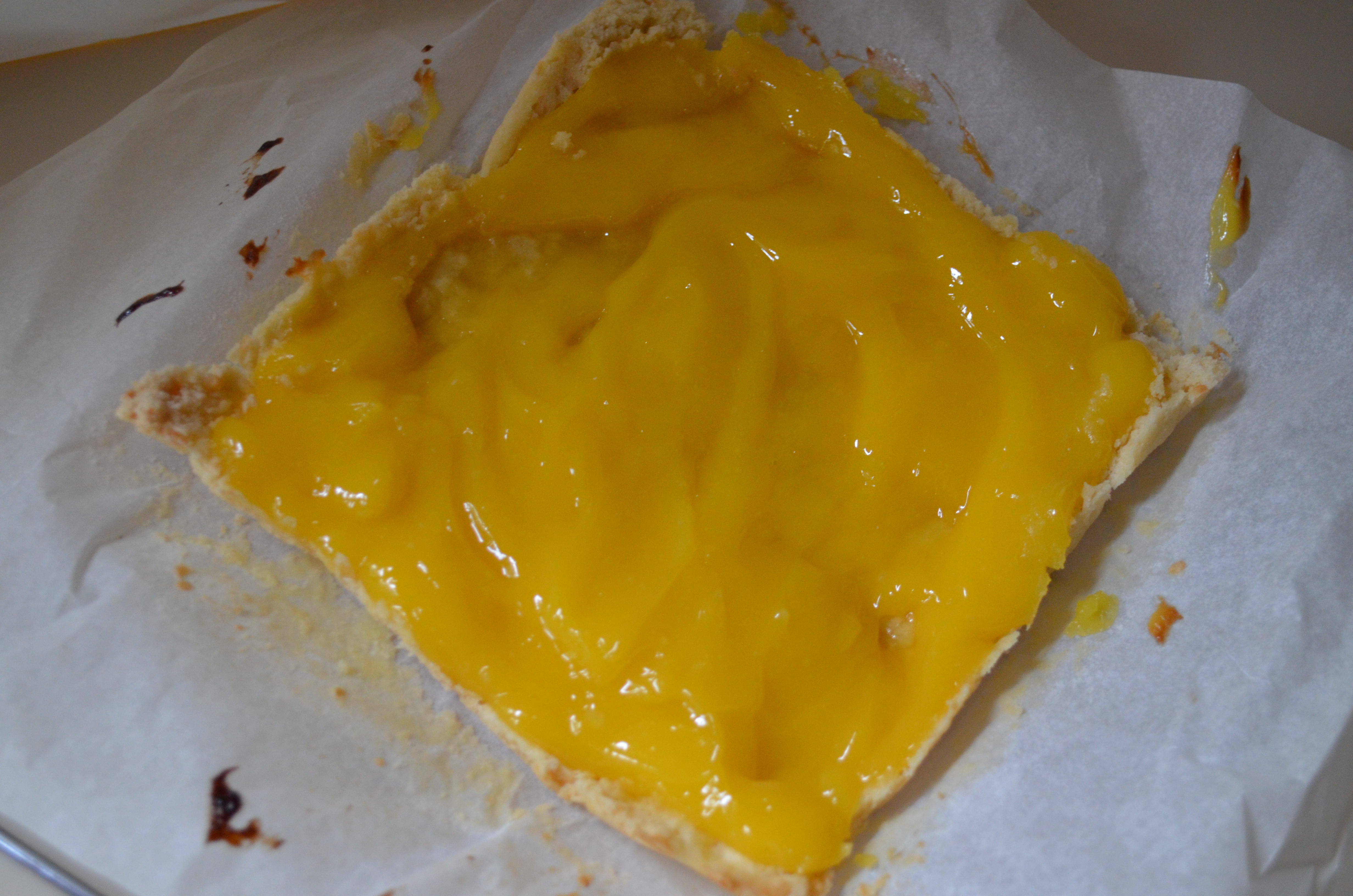 5. Pour the lemon curd into the baked, cooled crust. Bake until the center is set, 10 minutes.