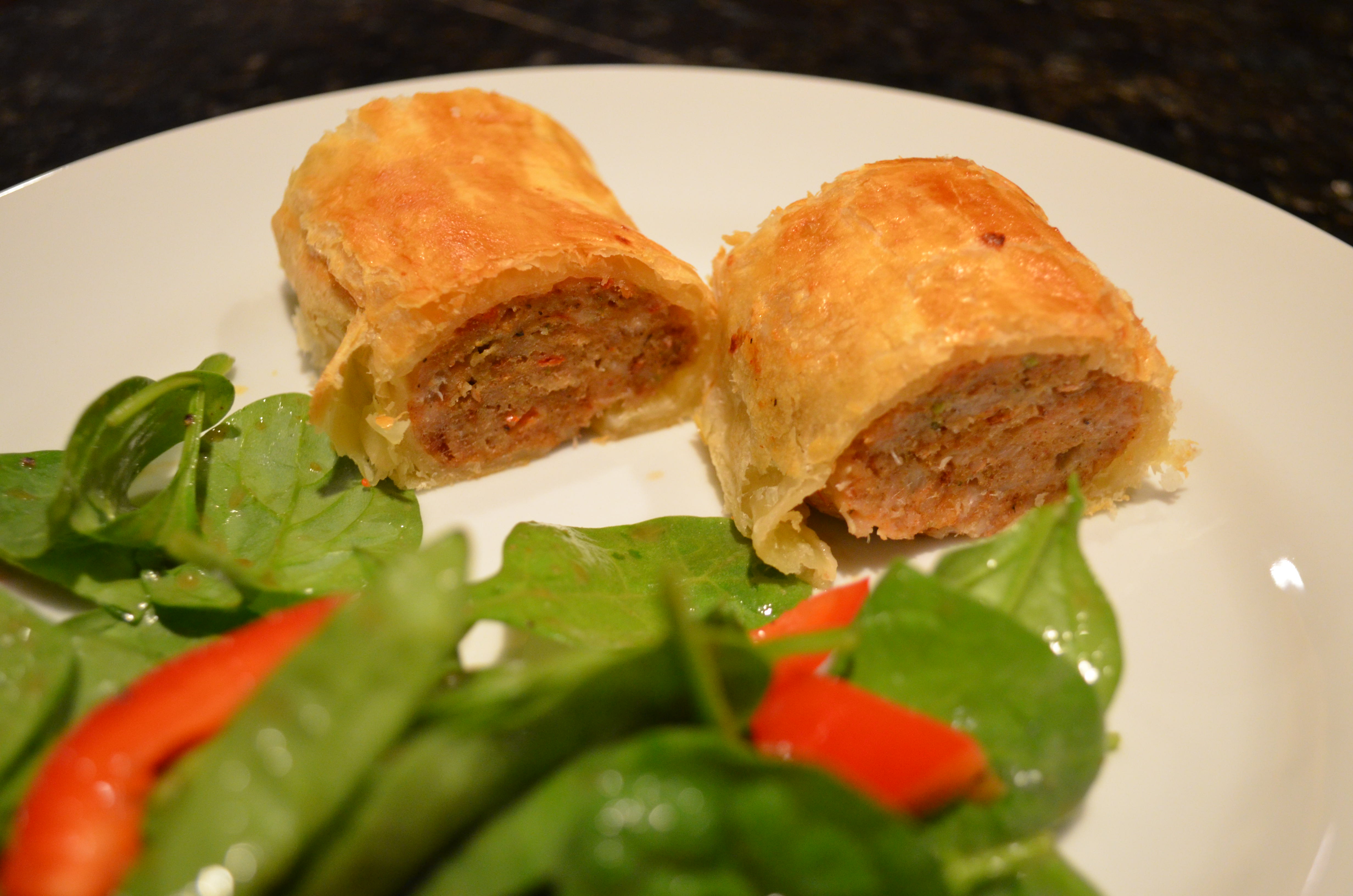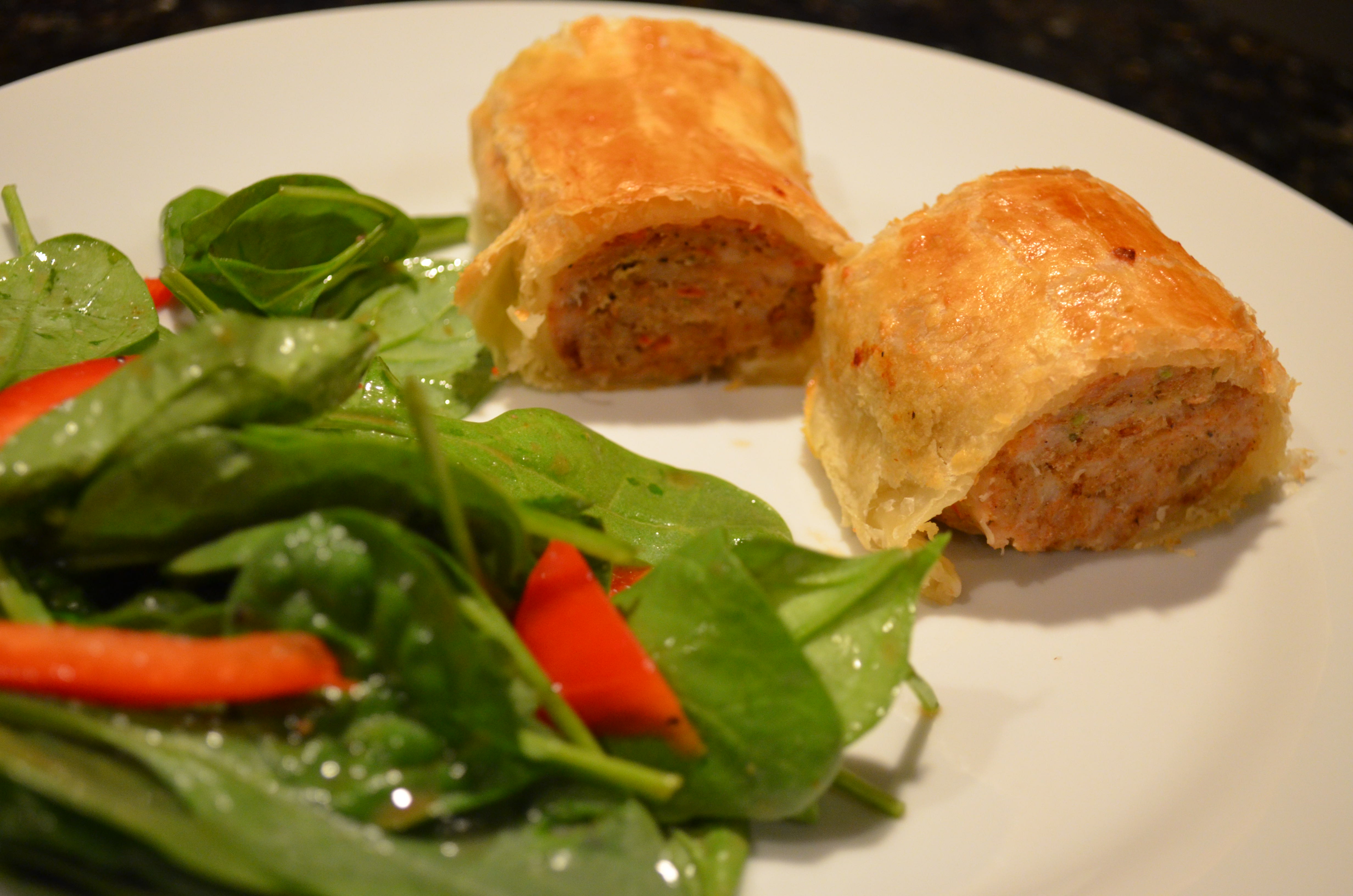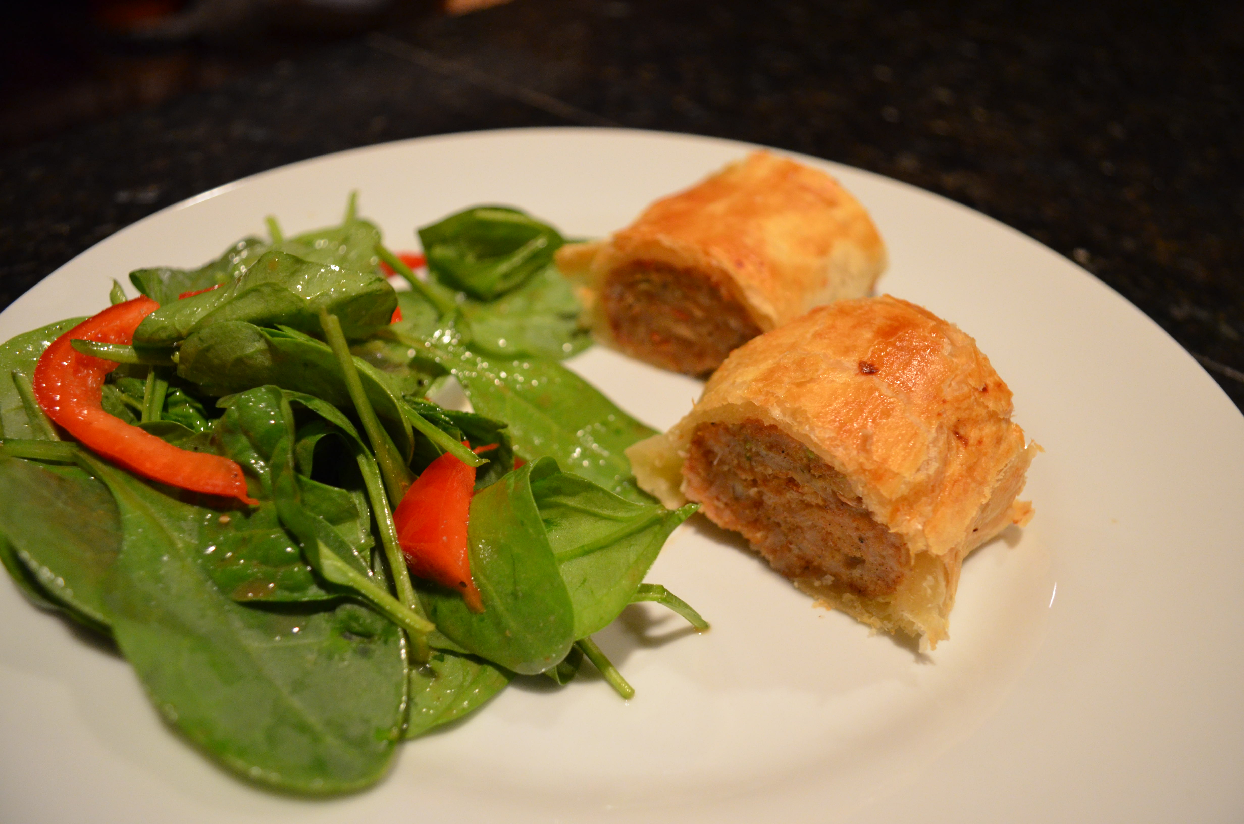 Sausage Rolls With Spinach Salad