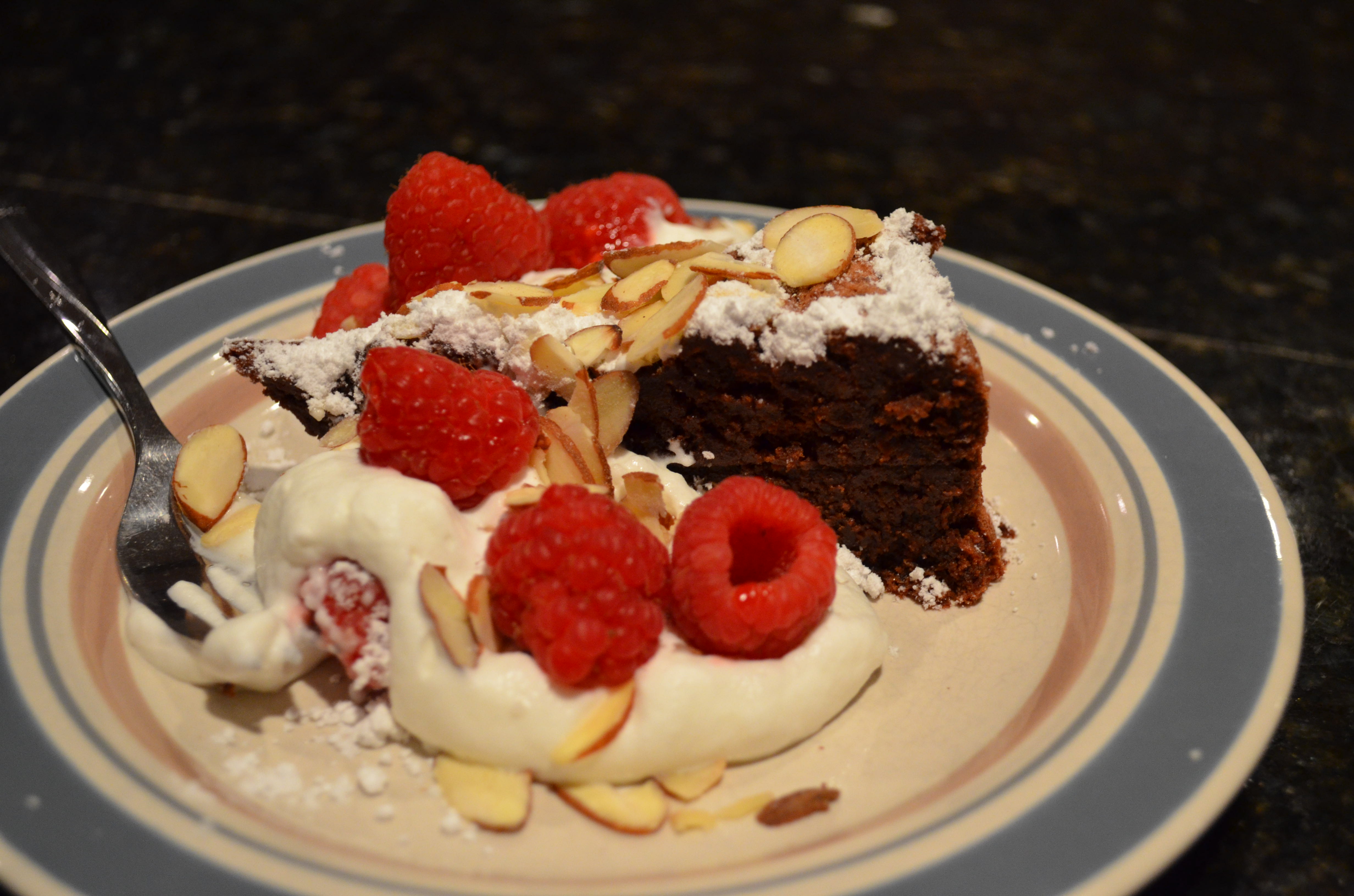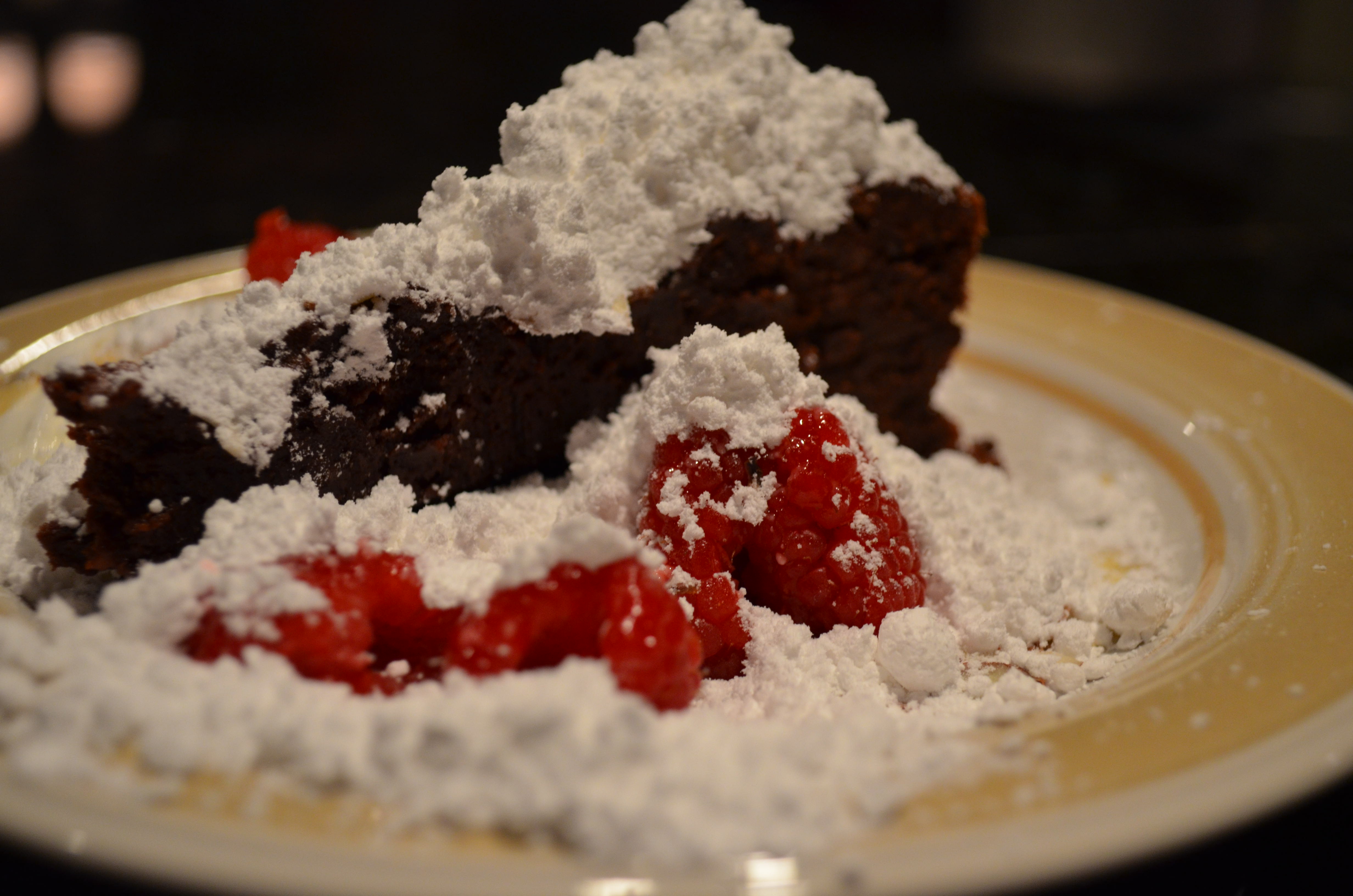 At the time, I asked singer Meg Maryatt what she would like me to make for the band and she had mentioned a flourless chocolate cake from Bon Appétit Magazine.