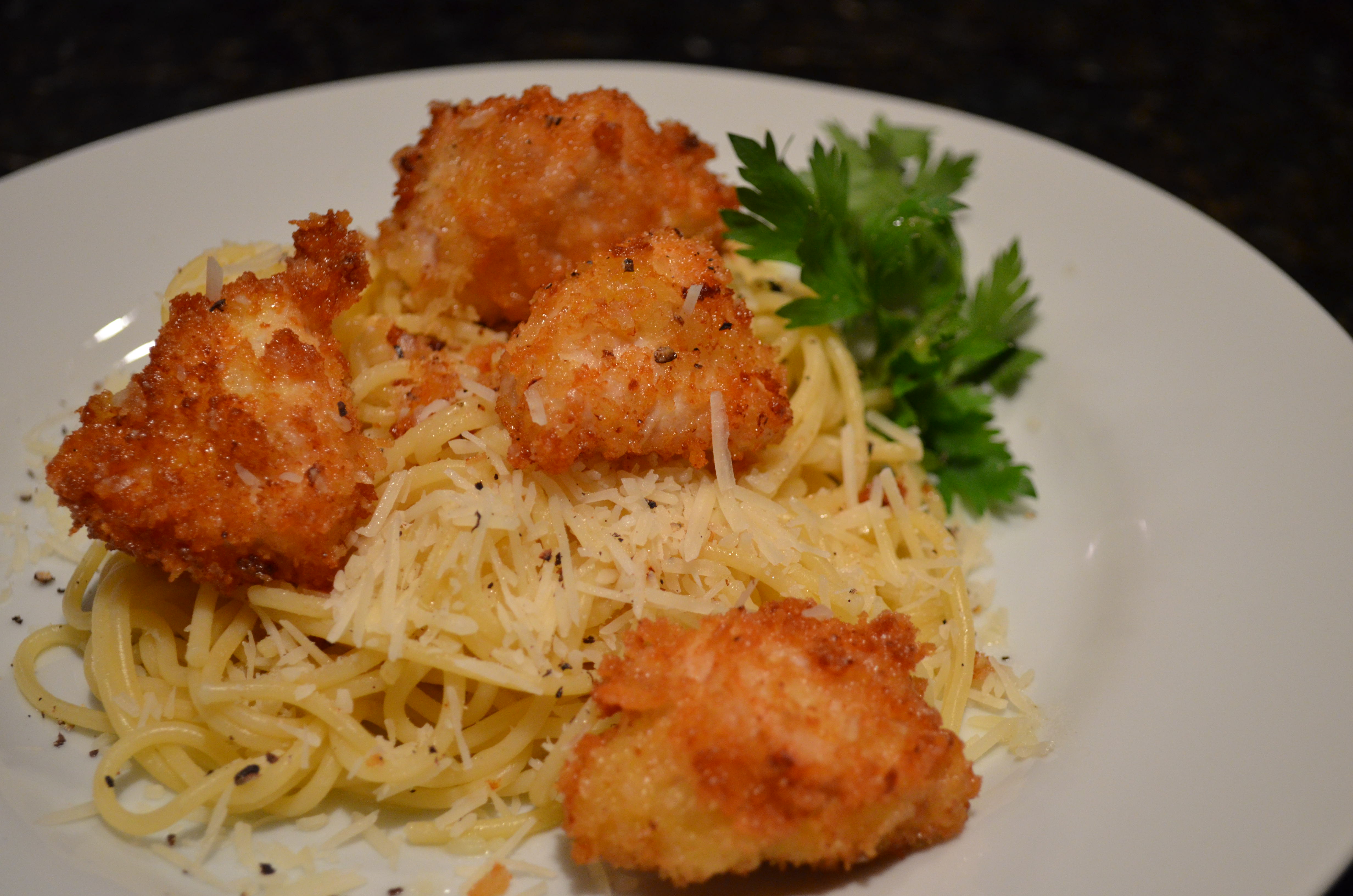 4. Wipe out skillet and cook garlic in butter for one minute. Add chicken and lemon juice and stir to coat with butter. Remove from heat and pour chicken and sauce over pasta to serve. Sprinkle with pepper, Parmesan and parsley if you like.