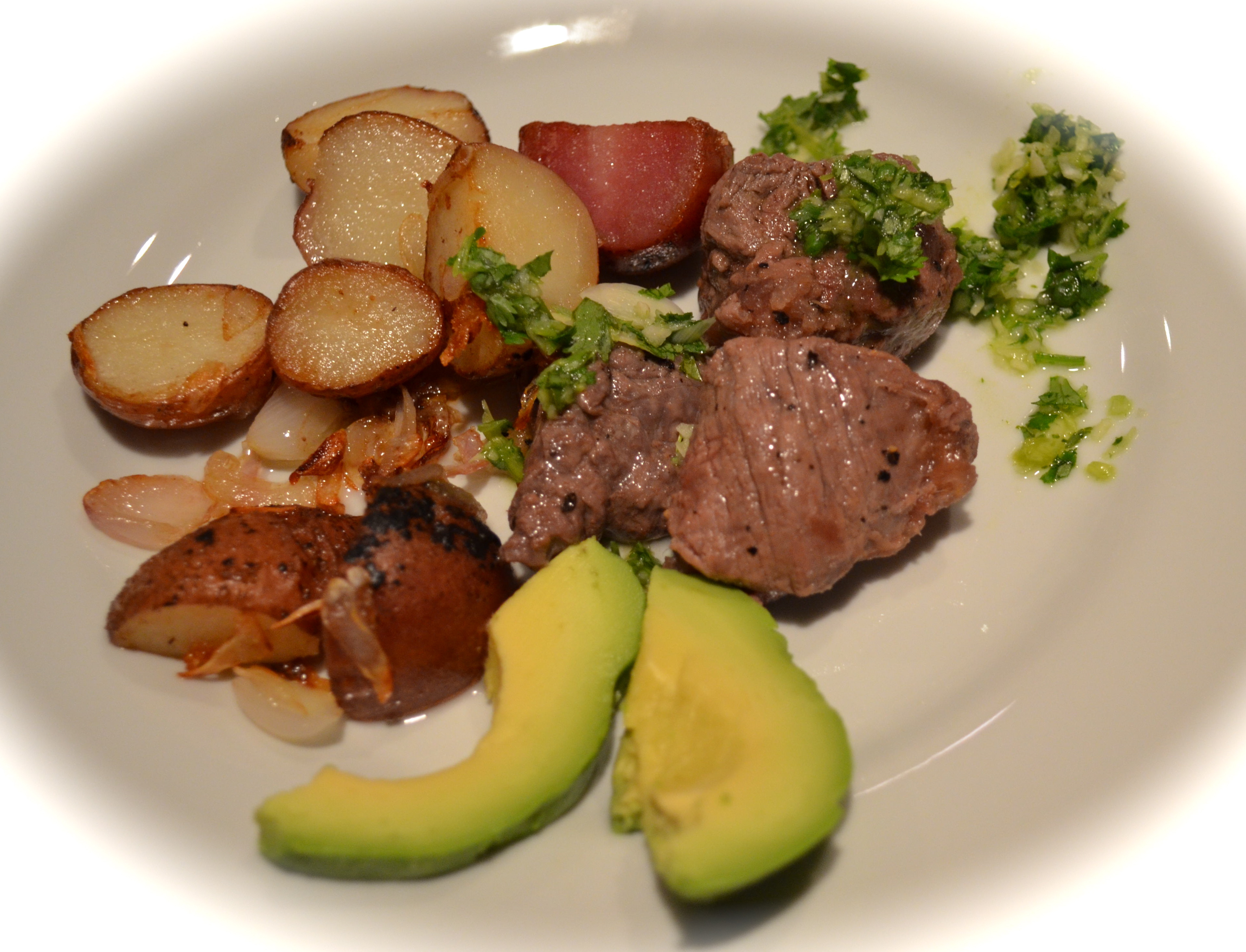 Delicious. The potatoes were the biggest hit, especially since I cooked them long enough to allow the shallots to get crispy. Next time, I’m replacing the vinegar with lime juice, though,for a zingier taste. Cooked the beef until it carmelized, and it was perfect. Thanks for this recipe. (The beef is good when stuffed into a warm tortilla, too.)
