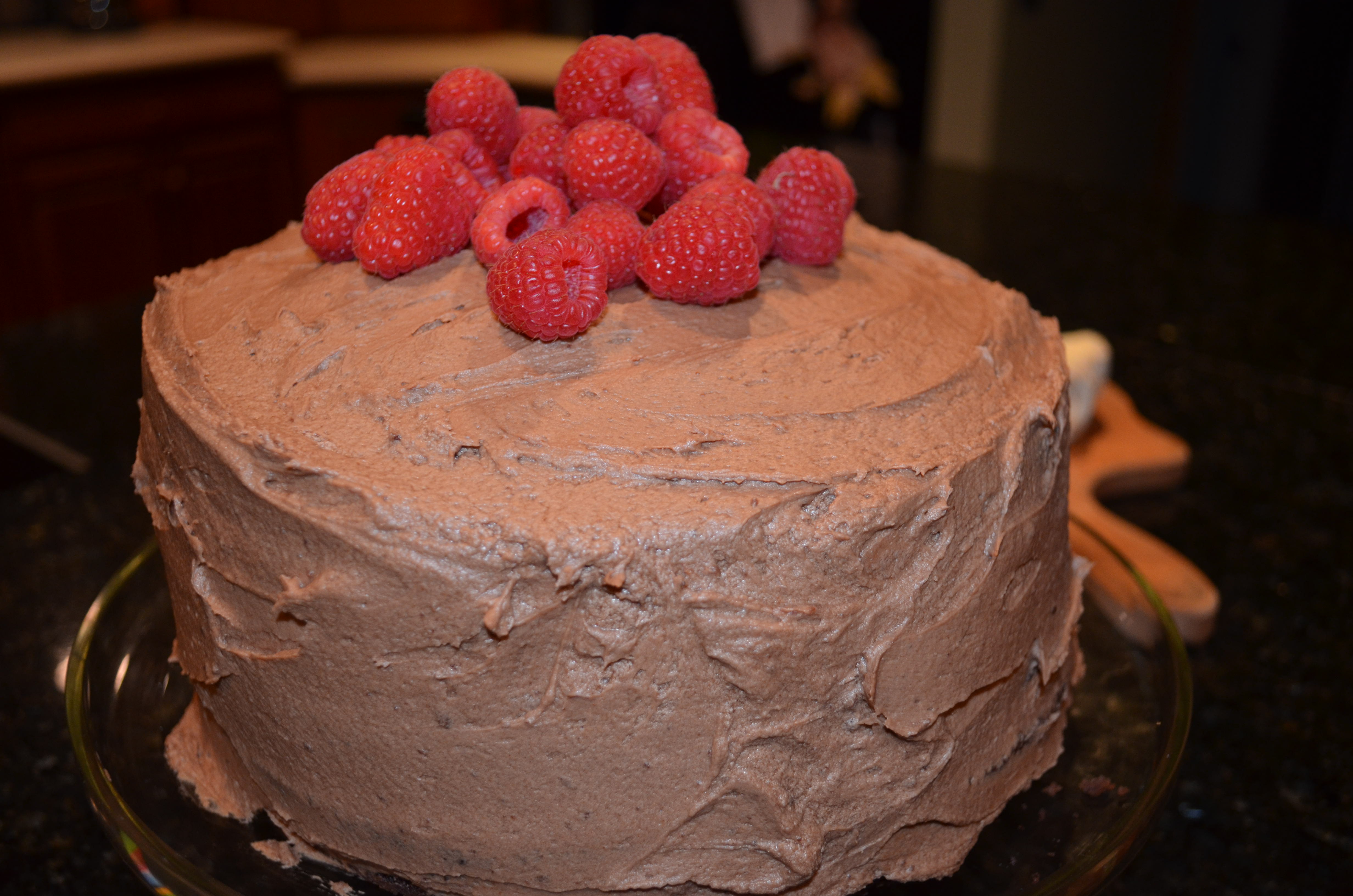 11. Spread top and sides of cake with remaining chocolate icing.
