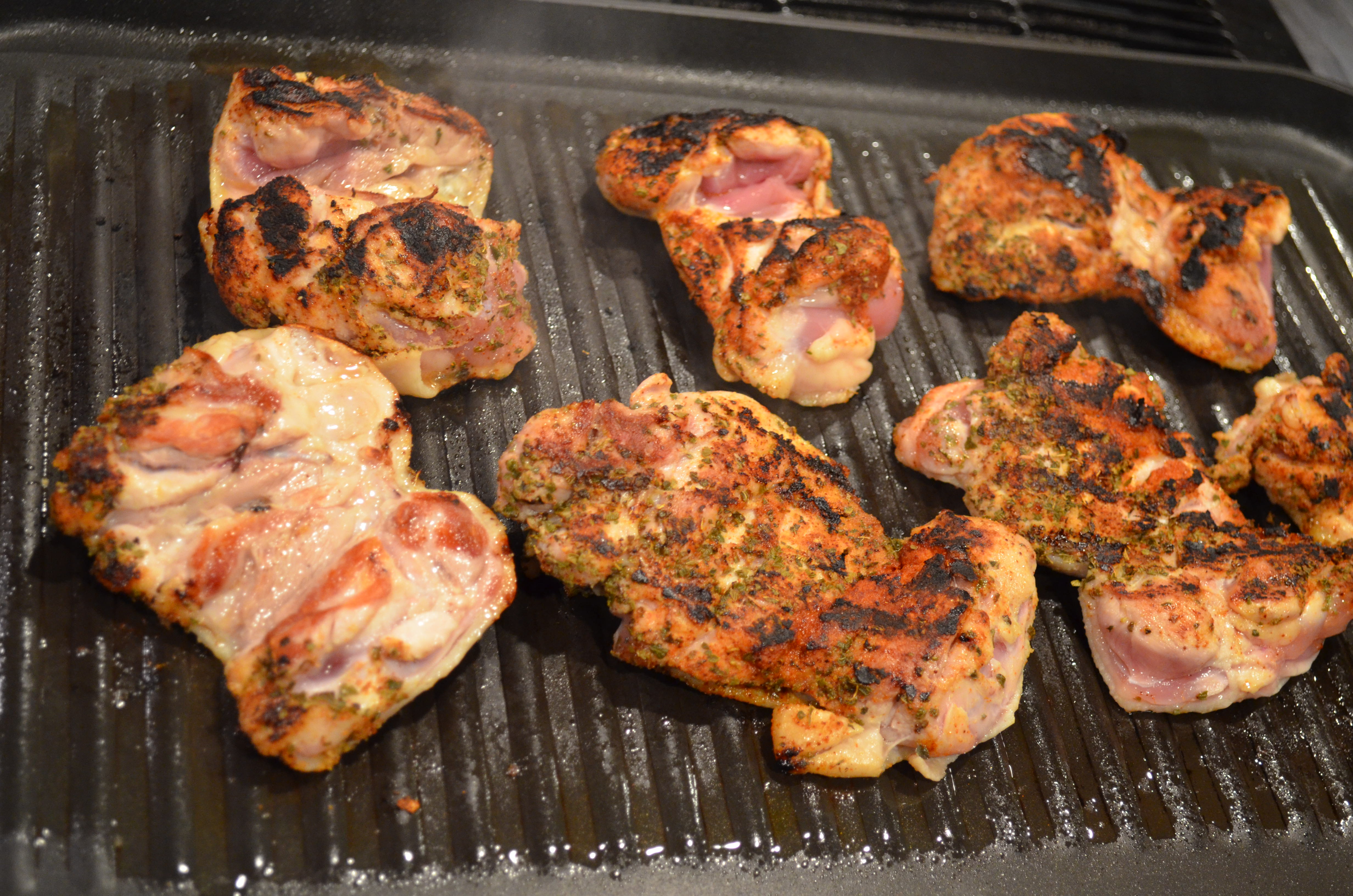1. Place the chicken, onion salt, chili power, oregano, paprika and oil in a bowl and toss to coat. Preheat a char-grill pan or barbecue over high heat. Char-grill or barbecue the chicken for 4-5 minutes each side or until cooked through.