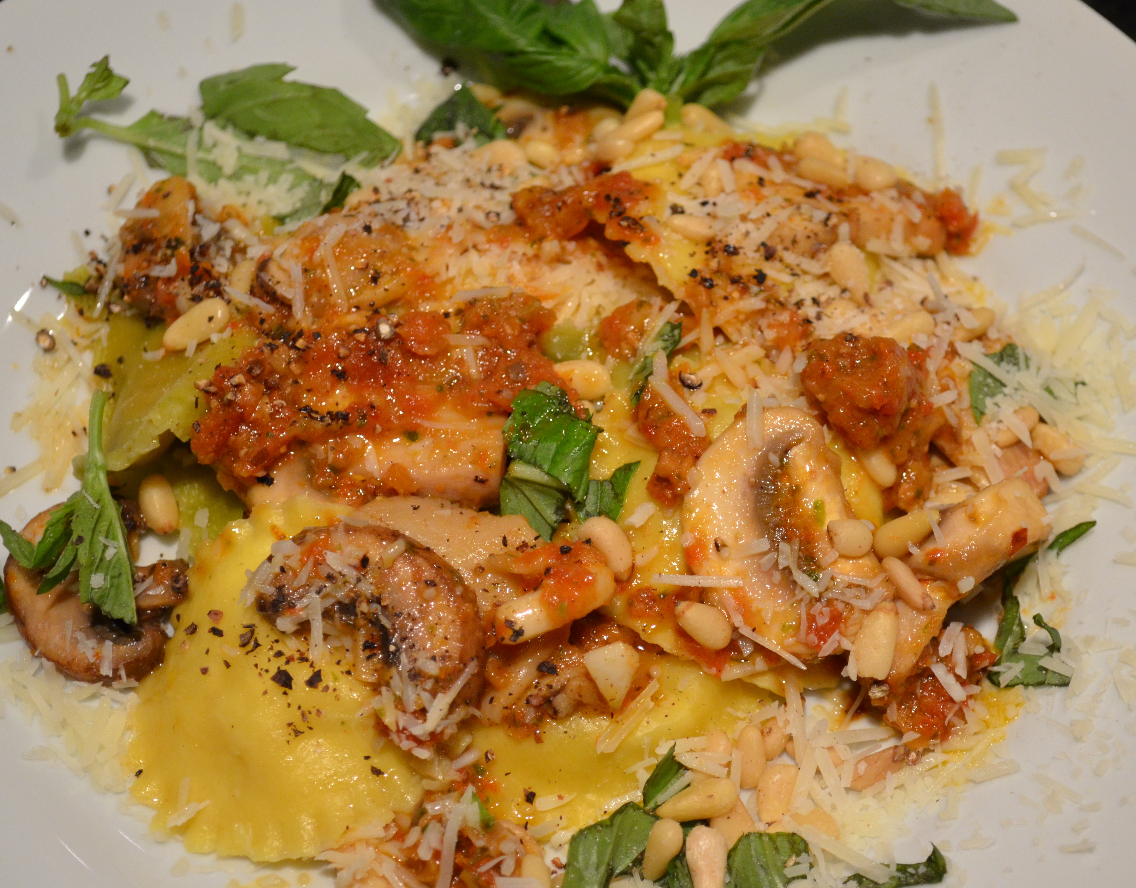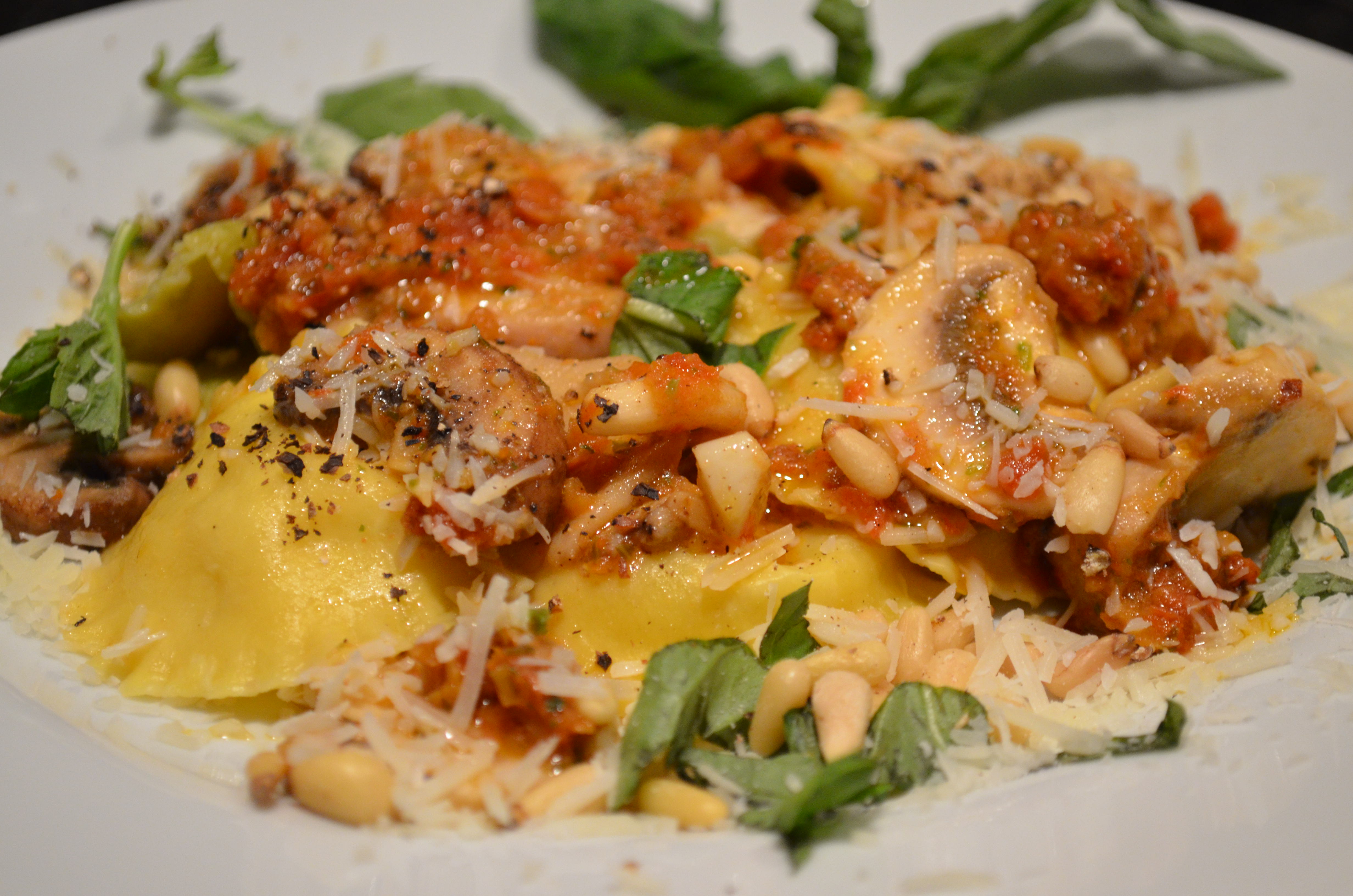 Ravioli With Mushroom And Sun Dried Tomato Pesto Sauce