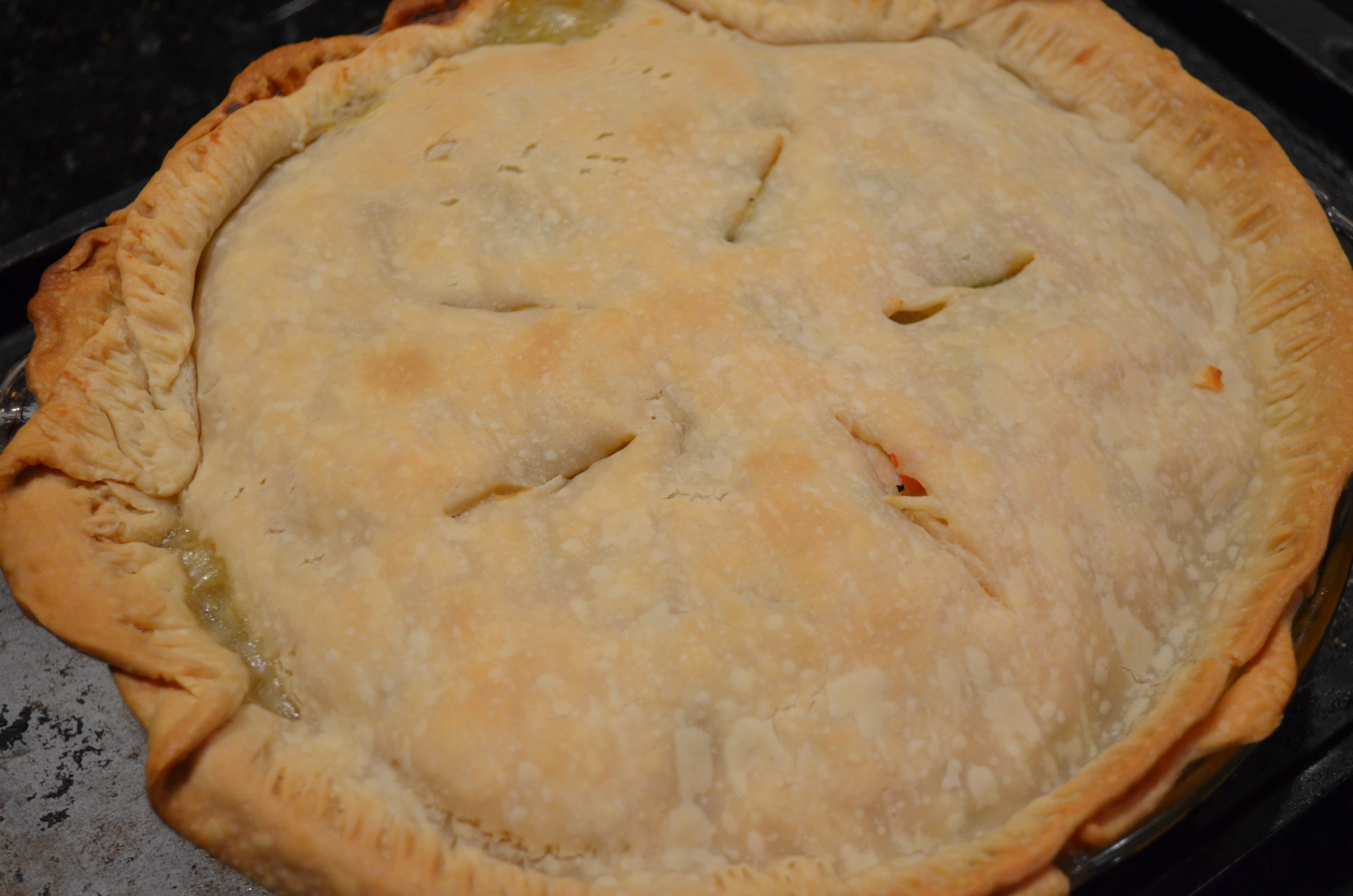 5. Bake pie on top of a baking sheet for 20-25 minutes. Let potpie rest for about 10 minutes than serve.