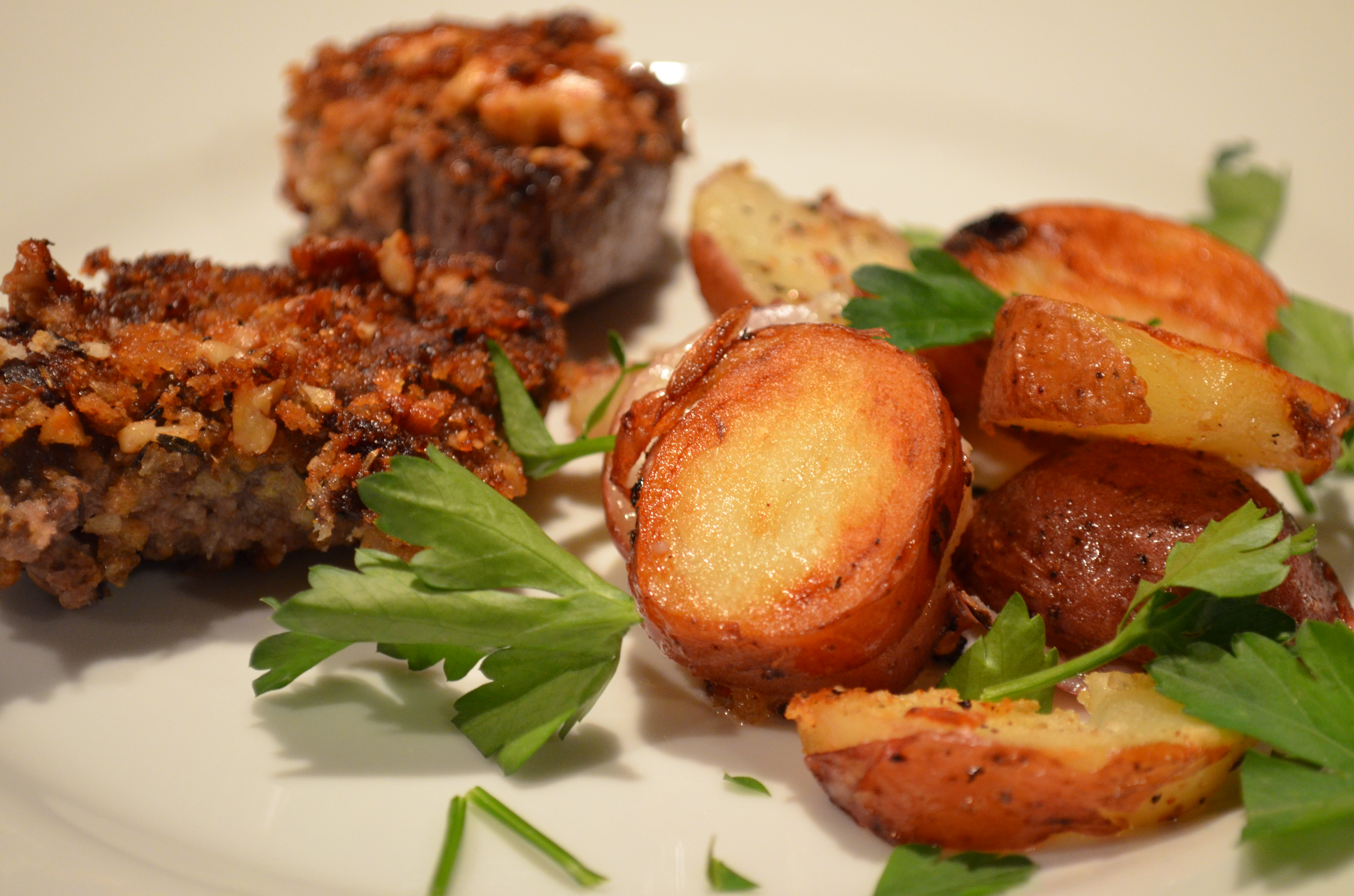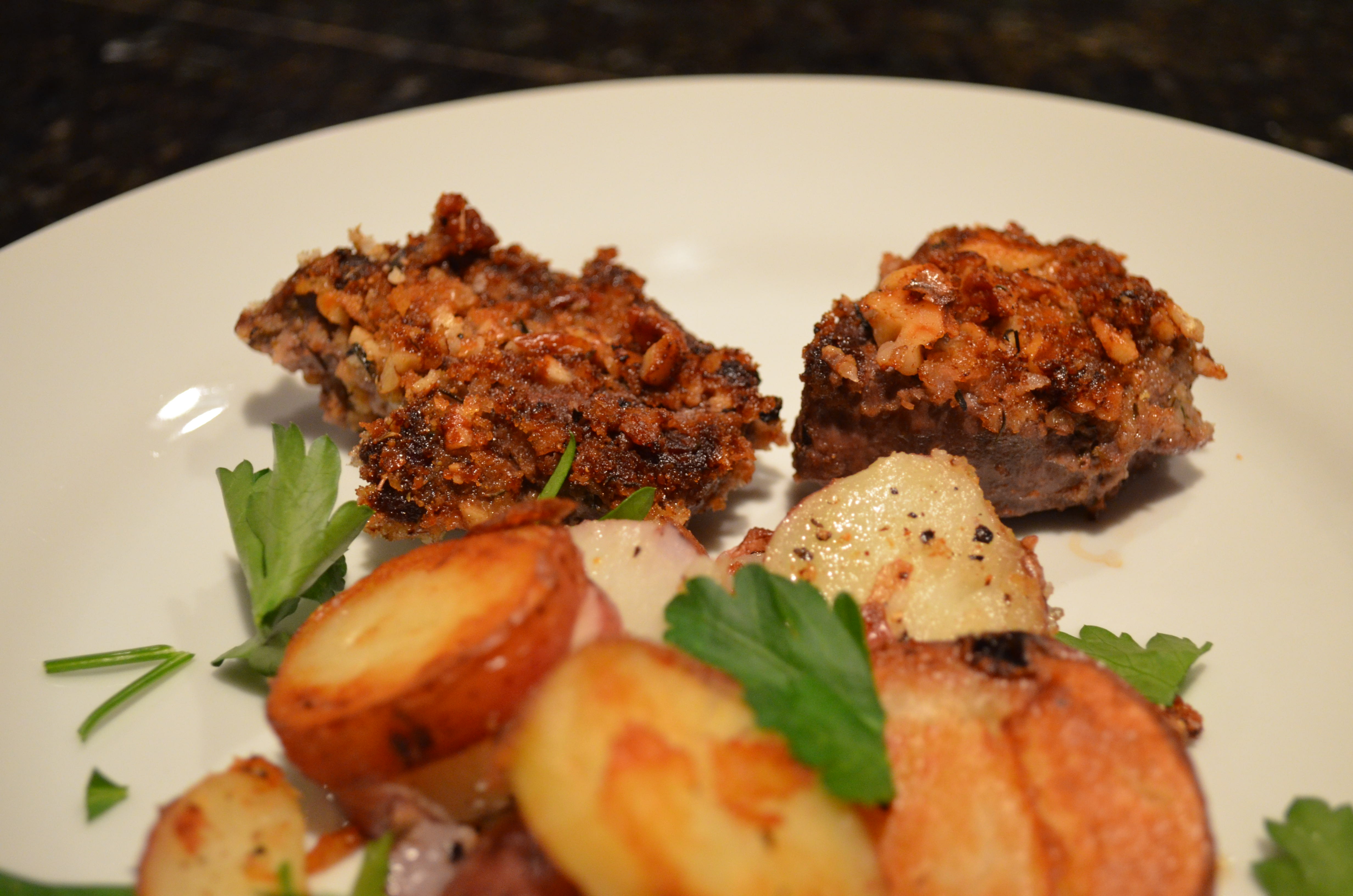 Herb And Mustard Crusted Venison Medallions With Sauté Potatoes