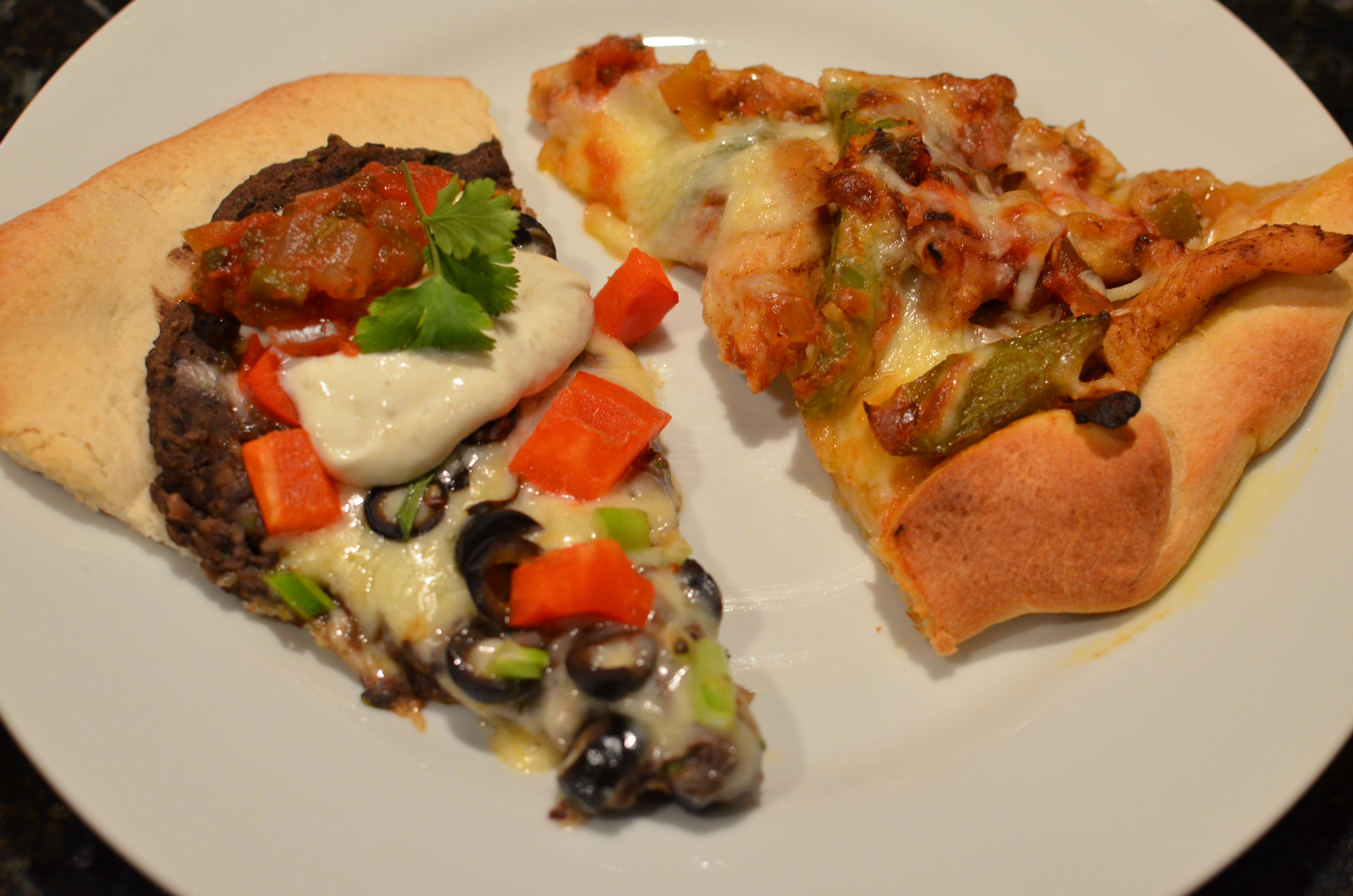 Both of these pizza recipes are delicious and very easy to put together. Served together they complement each other well.