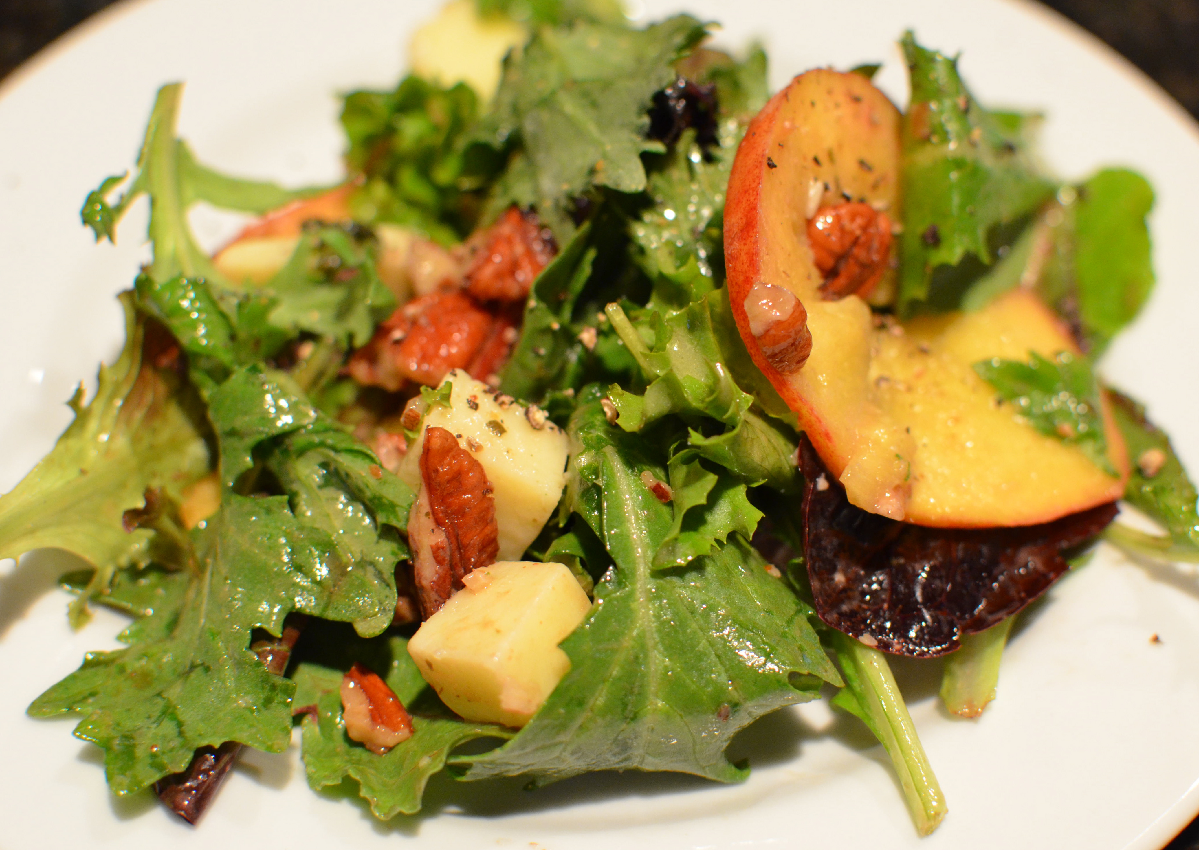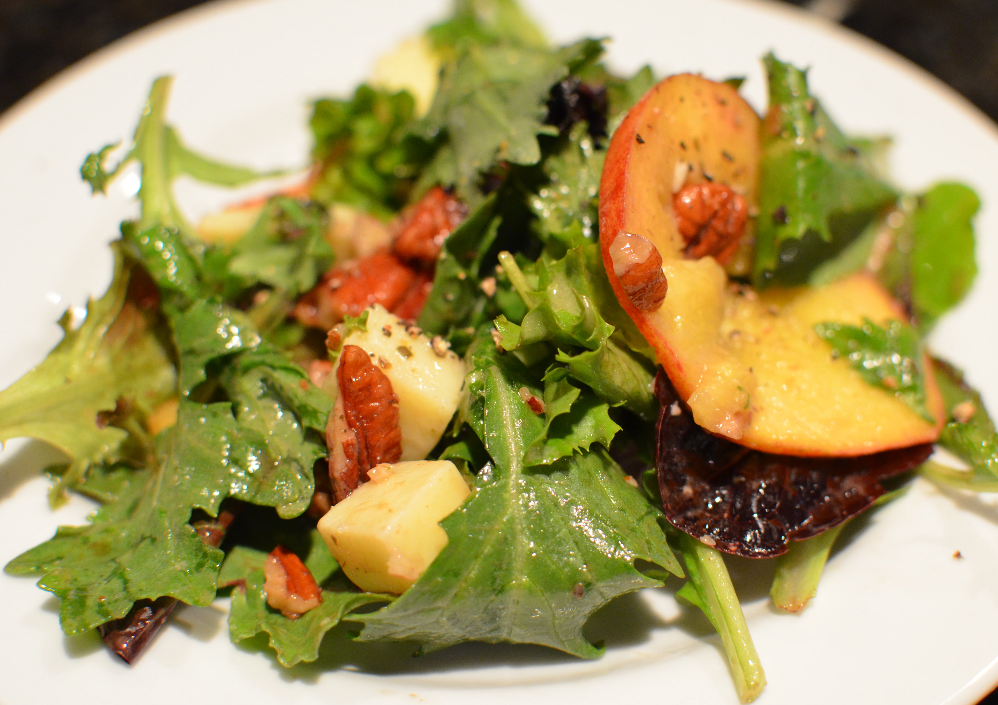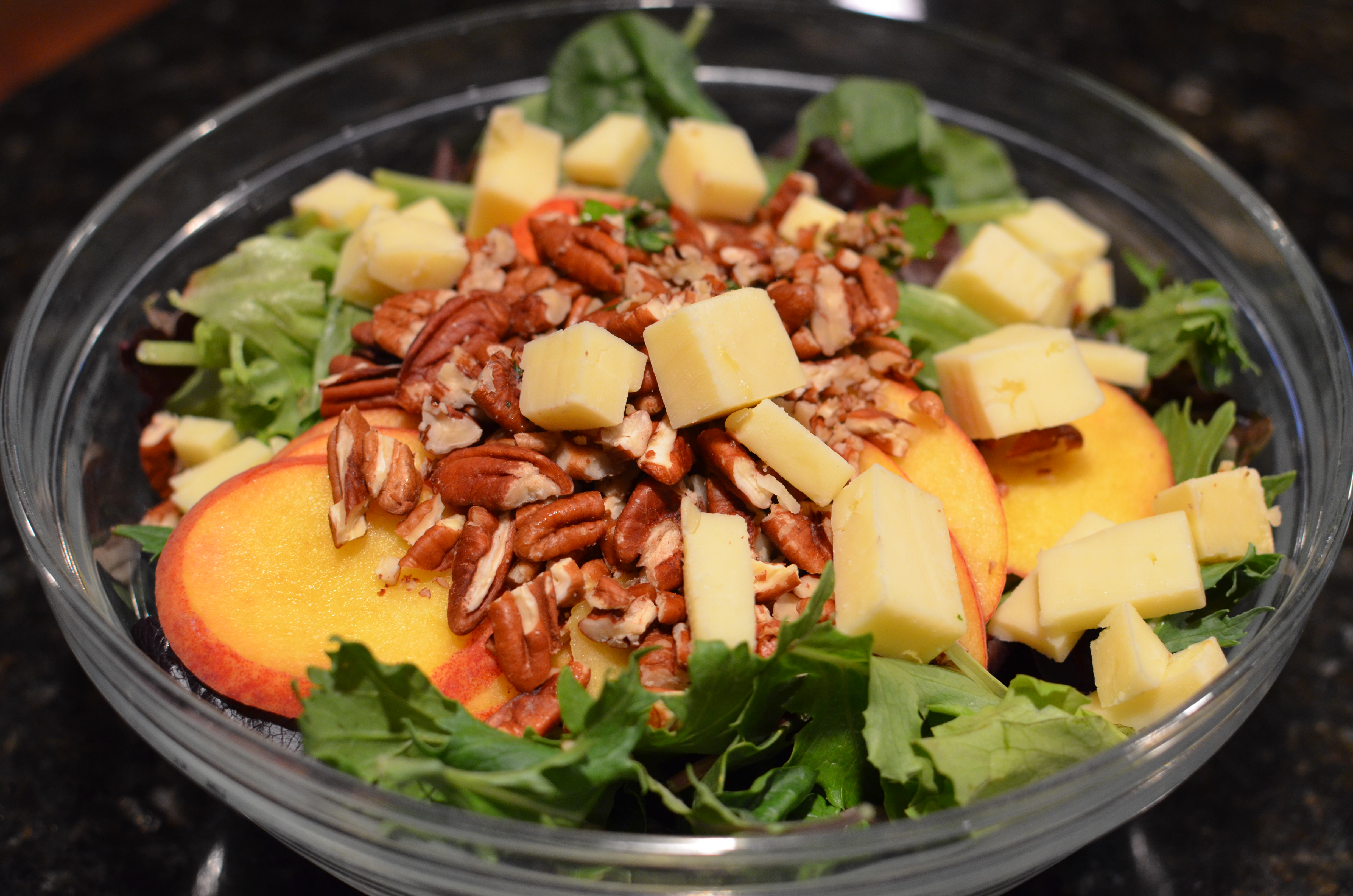 I was intrigued at the thought of cheese and peaches and pecans in a salad together.