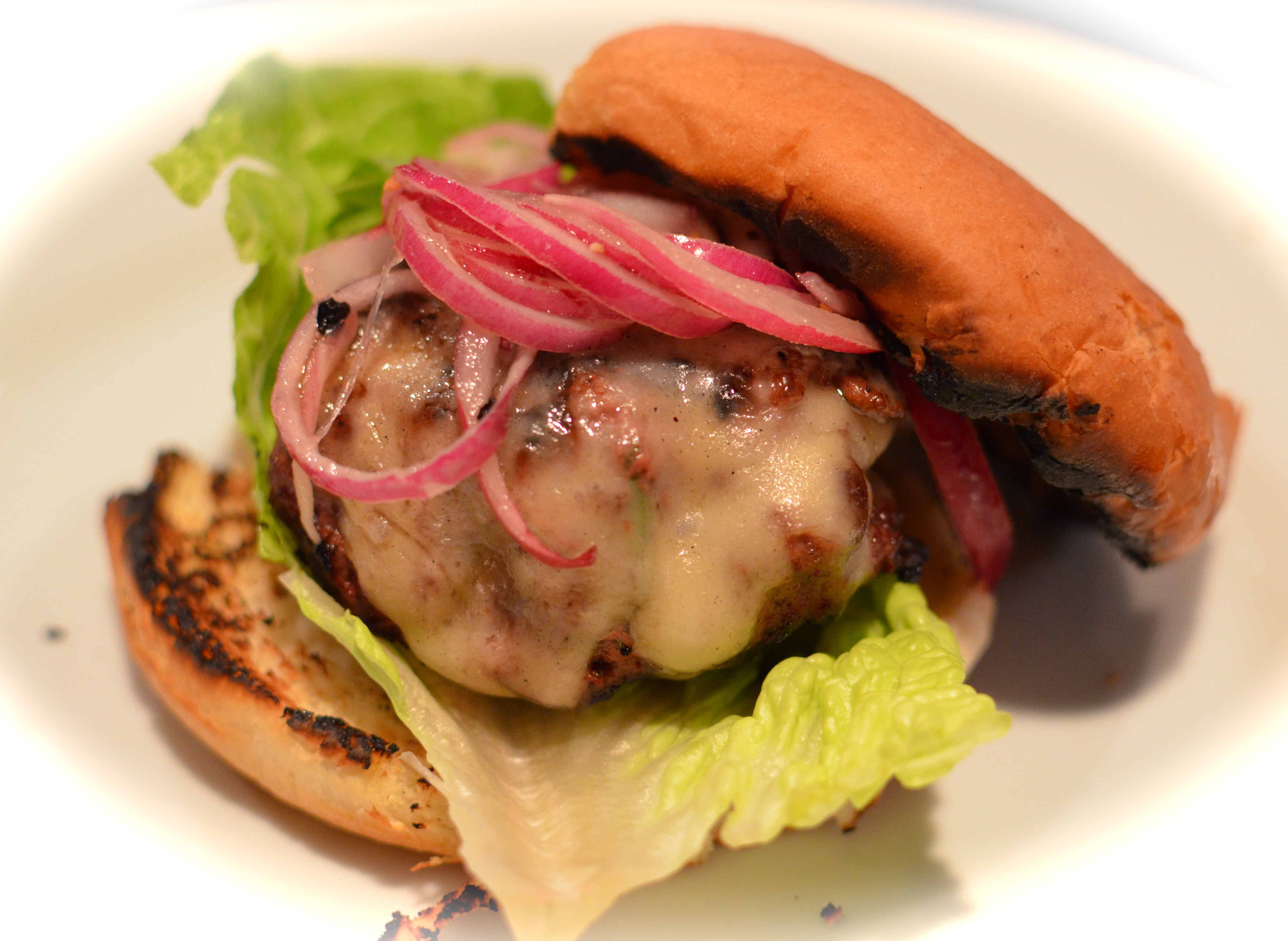 I have been wanting to share this burger recipe with you all for ages. Perfectly spiced beef that is oozing with cheese. The marinated onions are soooo good.