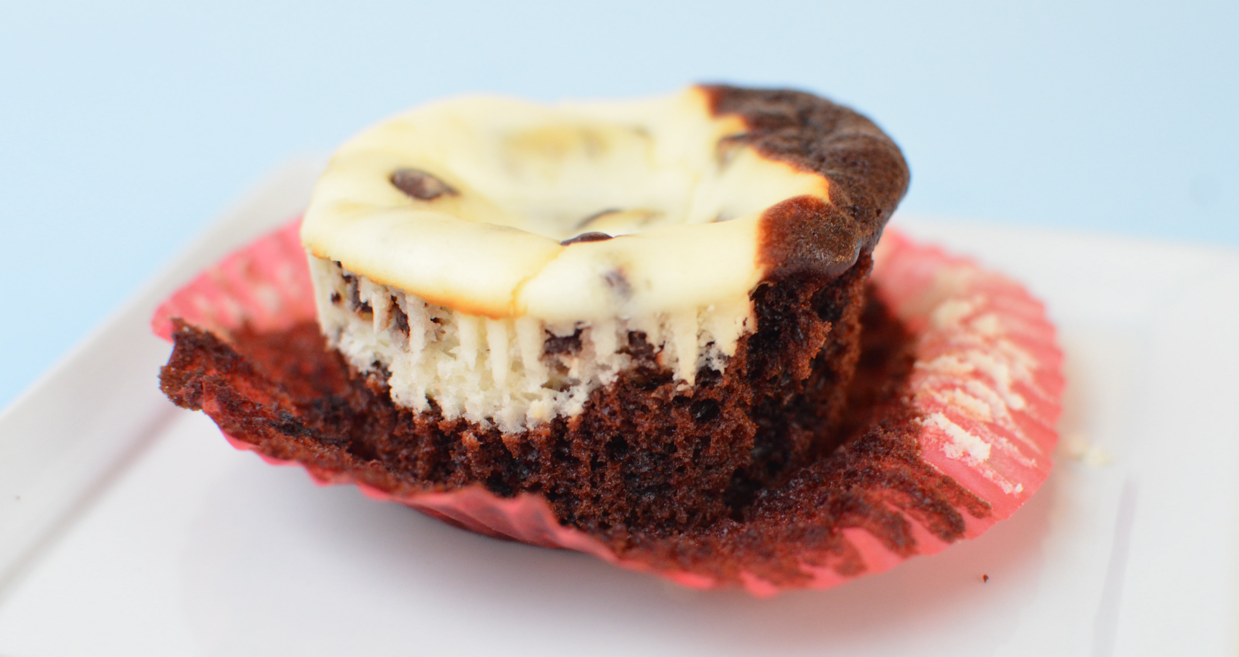 No need for icing on these babies. Rich chocolate cake filled with dollops of chocolate chip cheesecake are all you need. Sweet and tangy at the same time, they are calling your name.