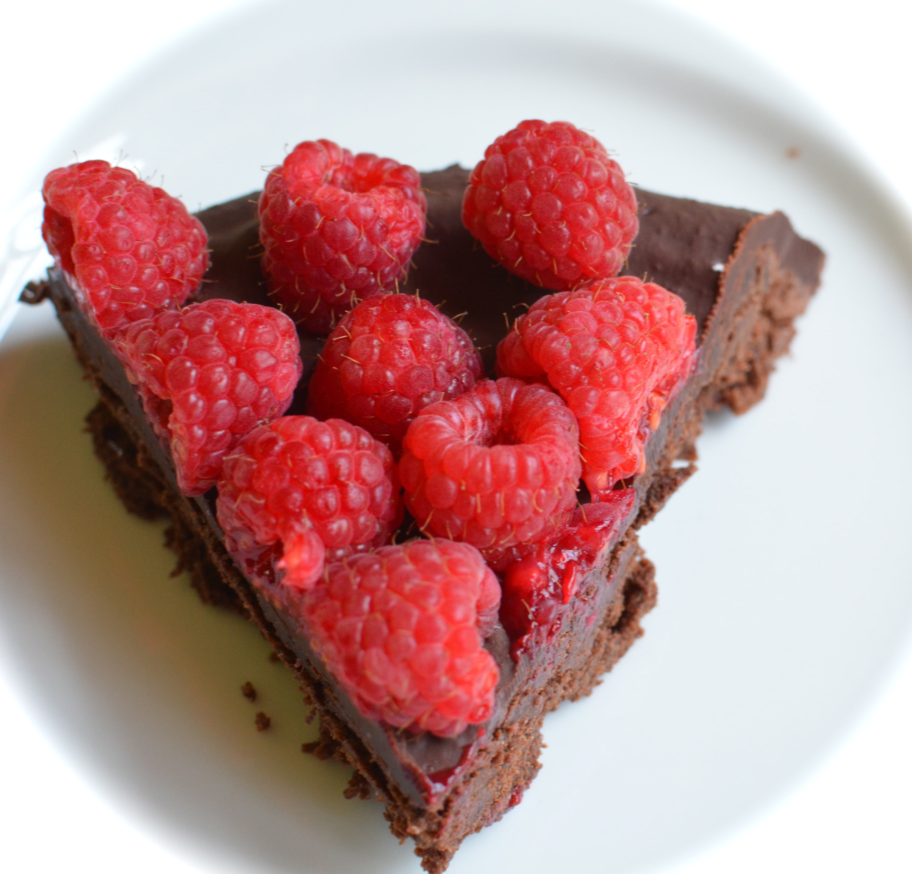 Hazelnuts and top shelf chocolate make this cake super special. The raspberries make it look as good as it tastes.