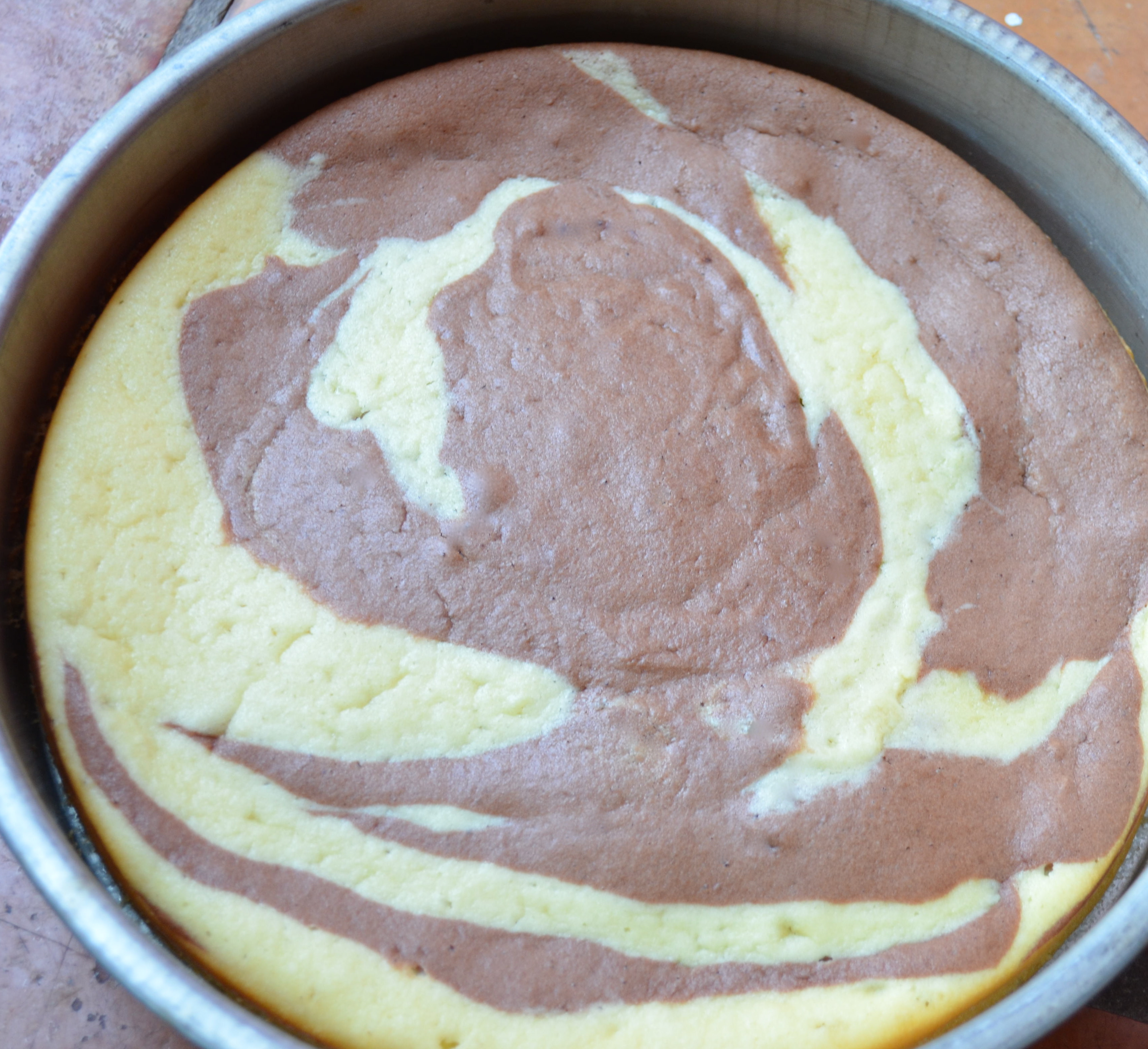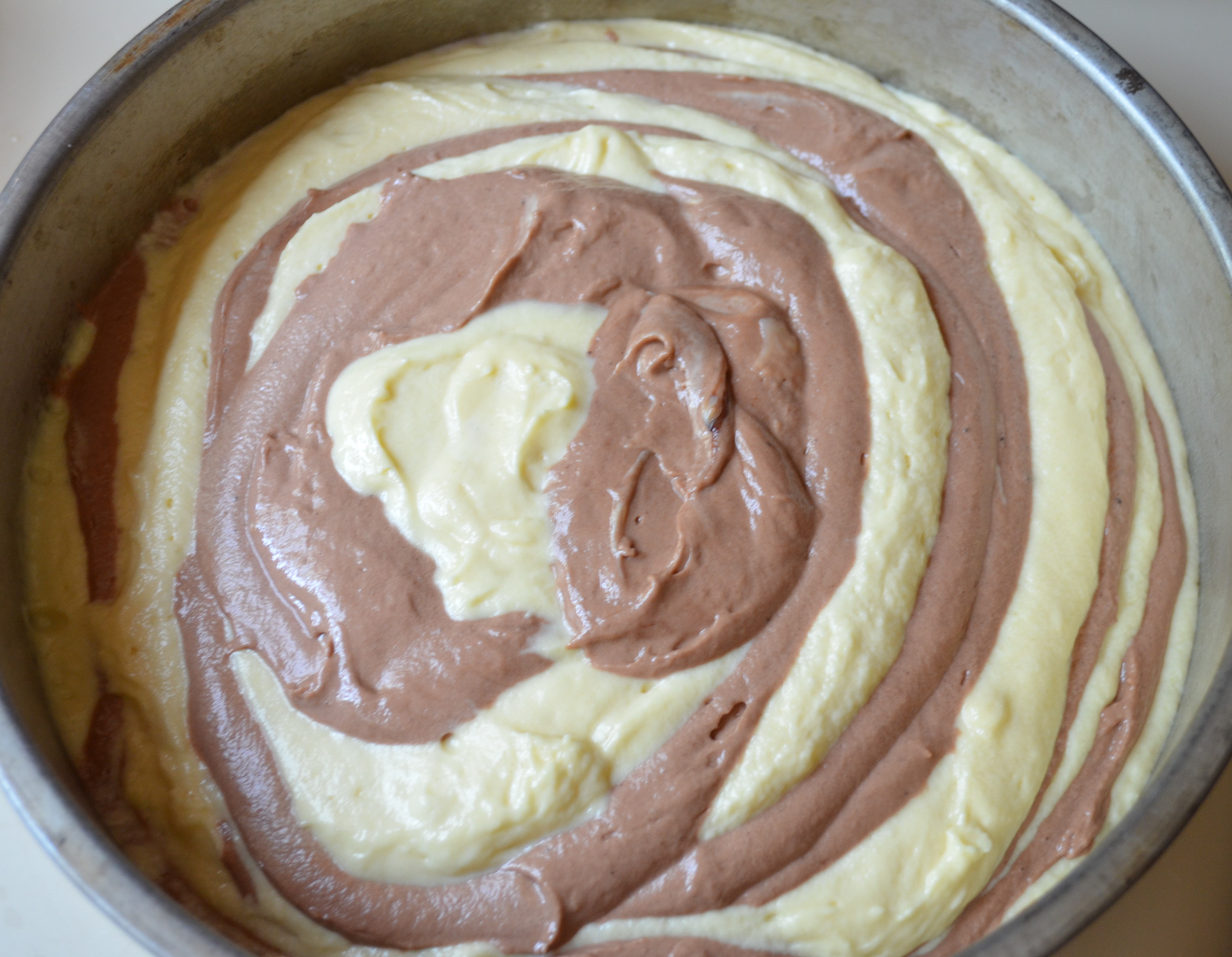 4. Divide the batter between two bowls. Add cocoa to one bowl and mix to combine.