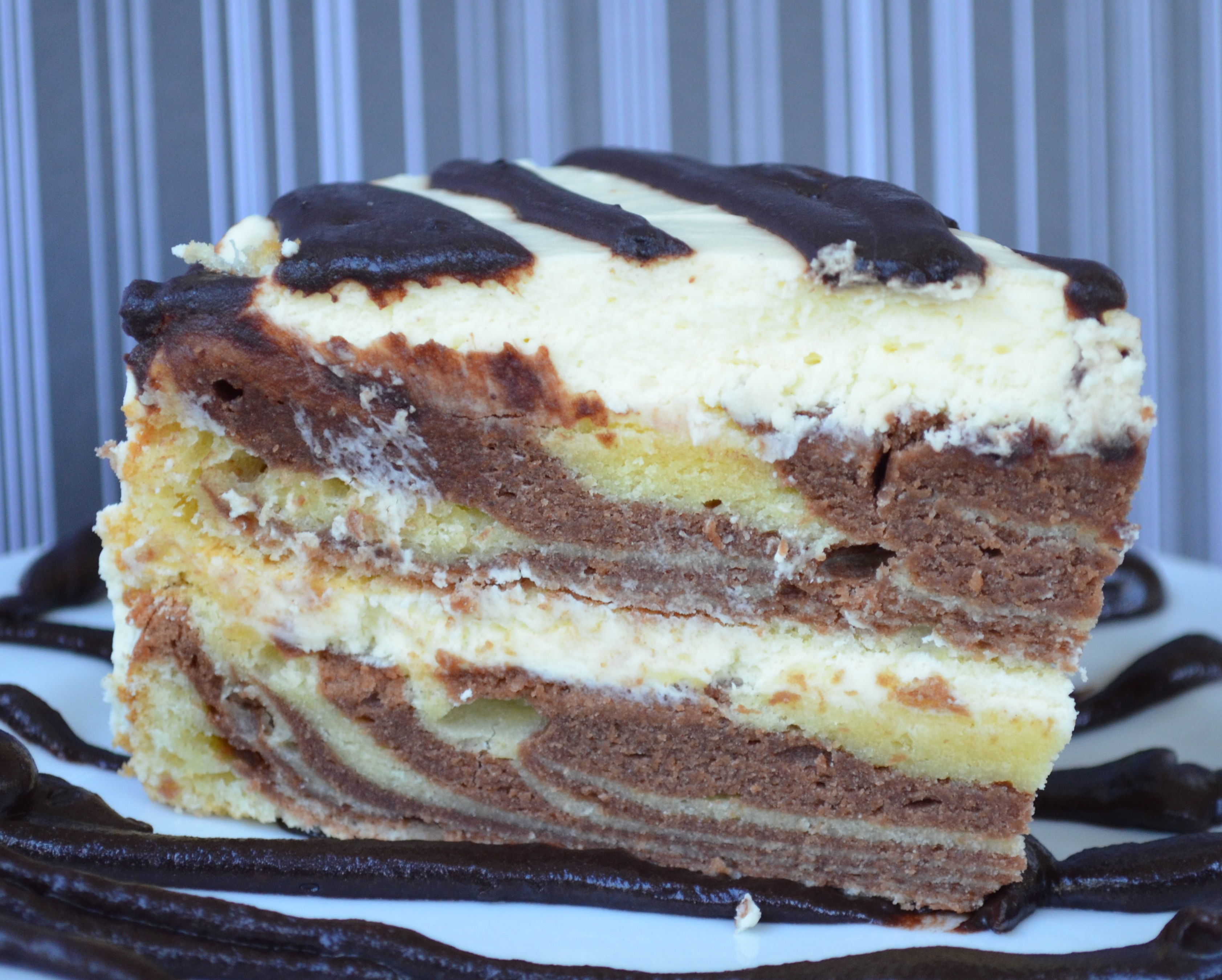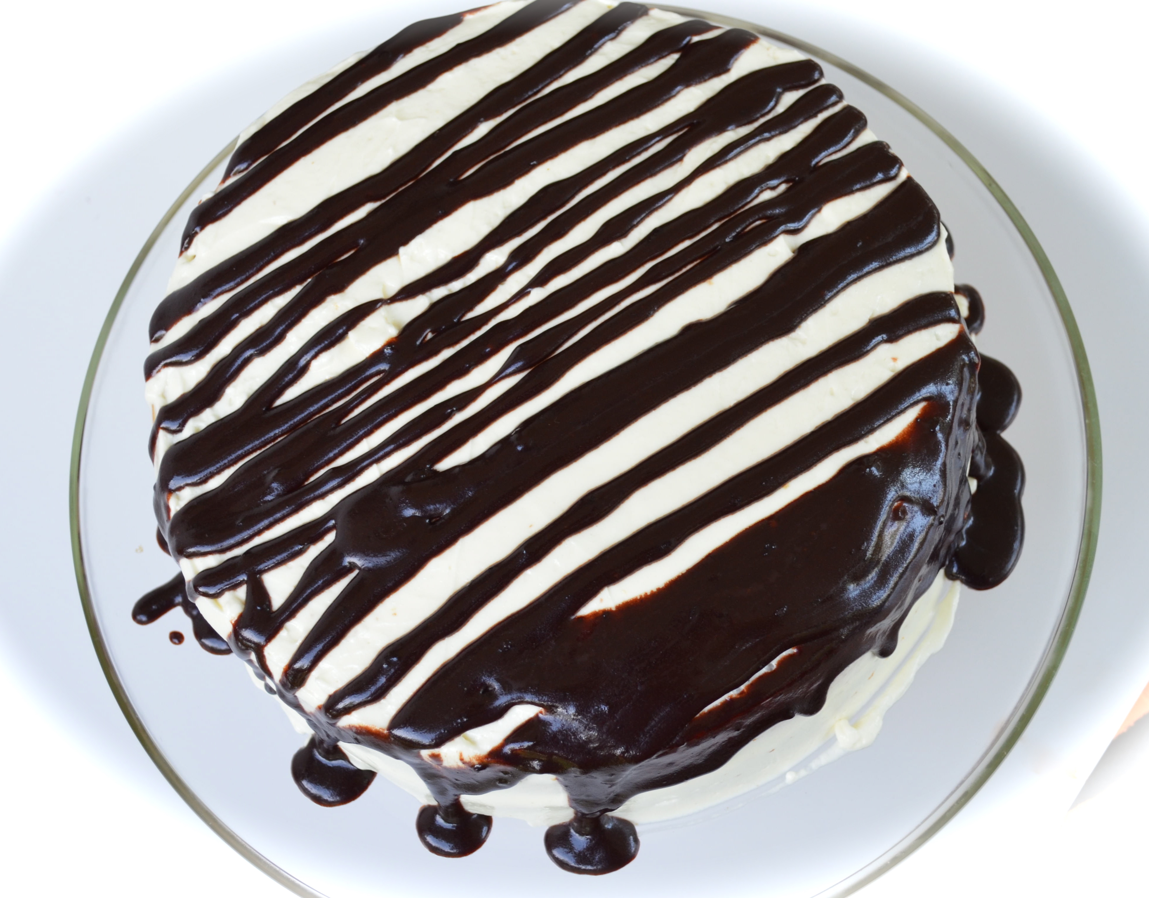 I love the look of this cake. Bright white icing striped with thick chocolate glaze.