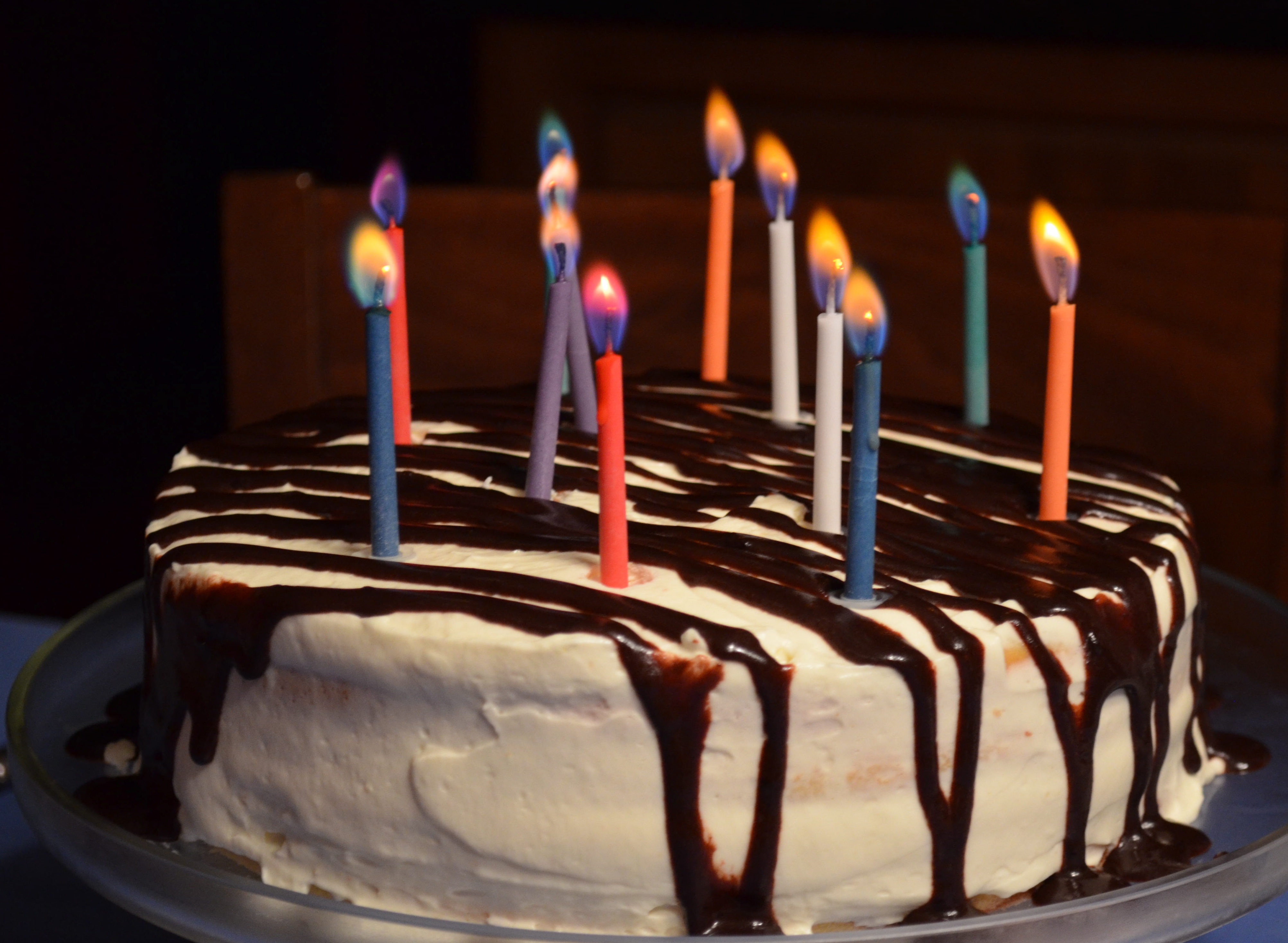 8. Spoon chocolate glaze into a pastry bag with round tip or use a ziploc bag and snip a hole in the corner. Drizzle chocolate glaze over iced cake.