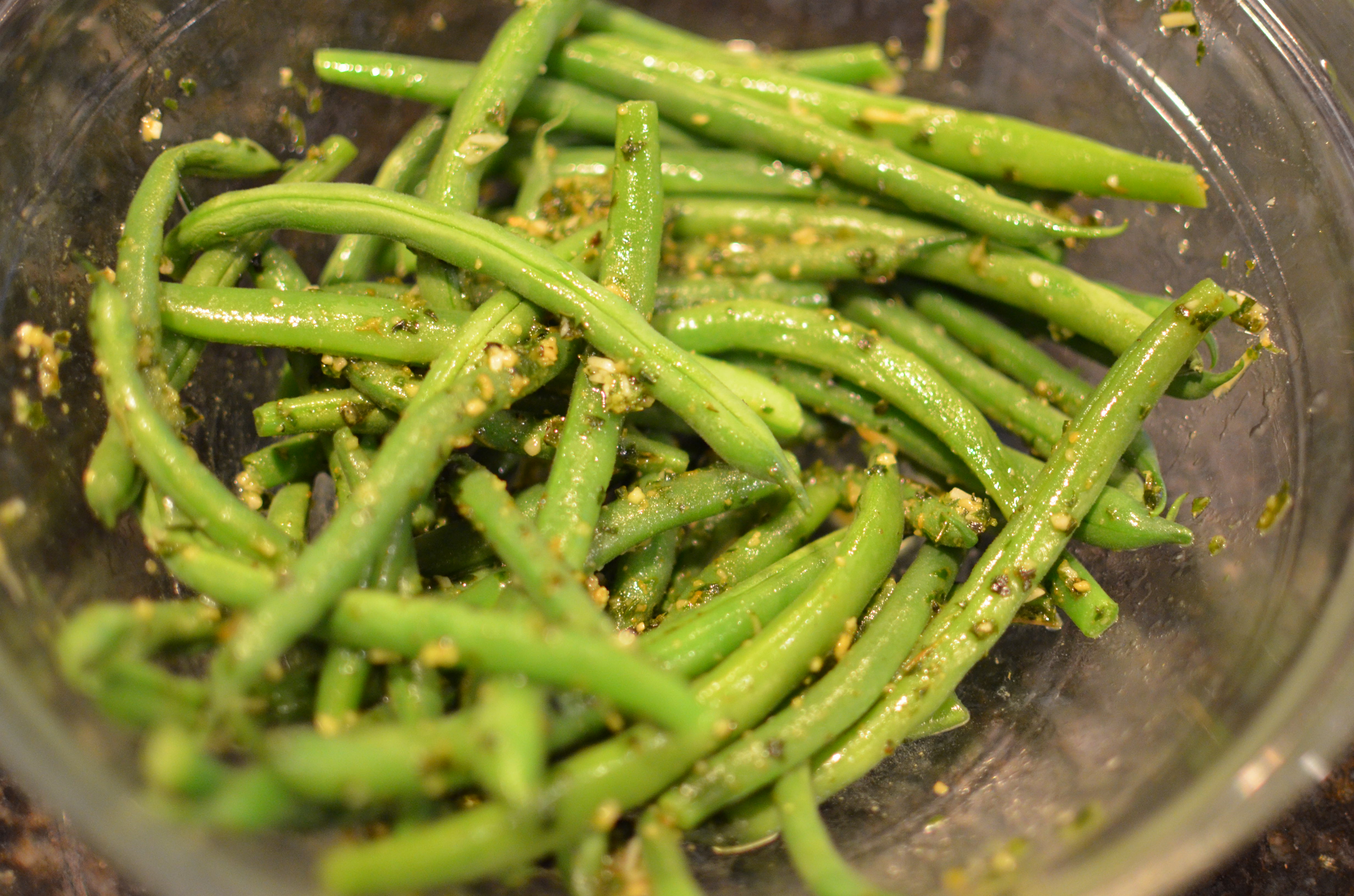 1. Toss cooked green beans with pesto and serve.