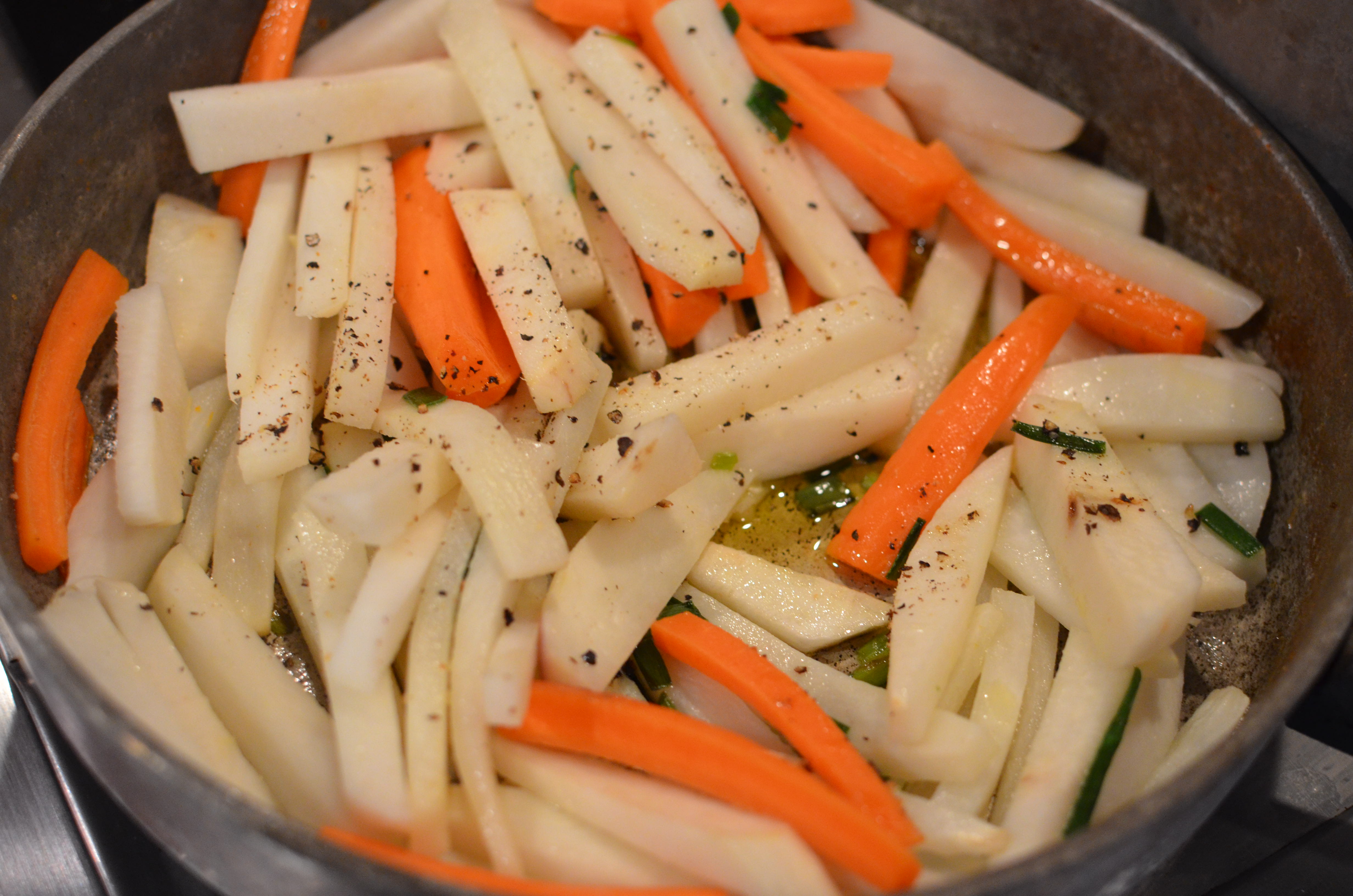 2 cups white turnips, cut into thick julienne slices