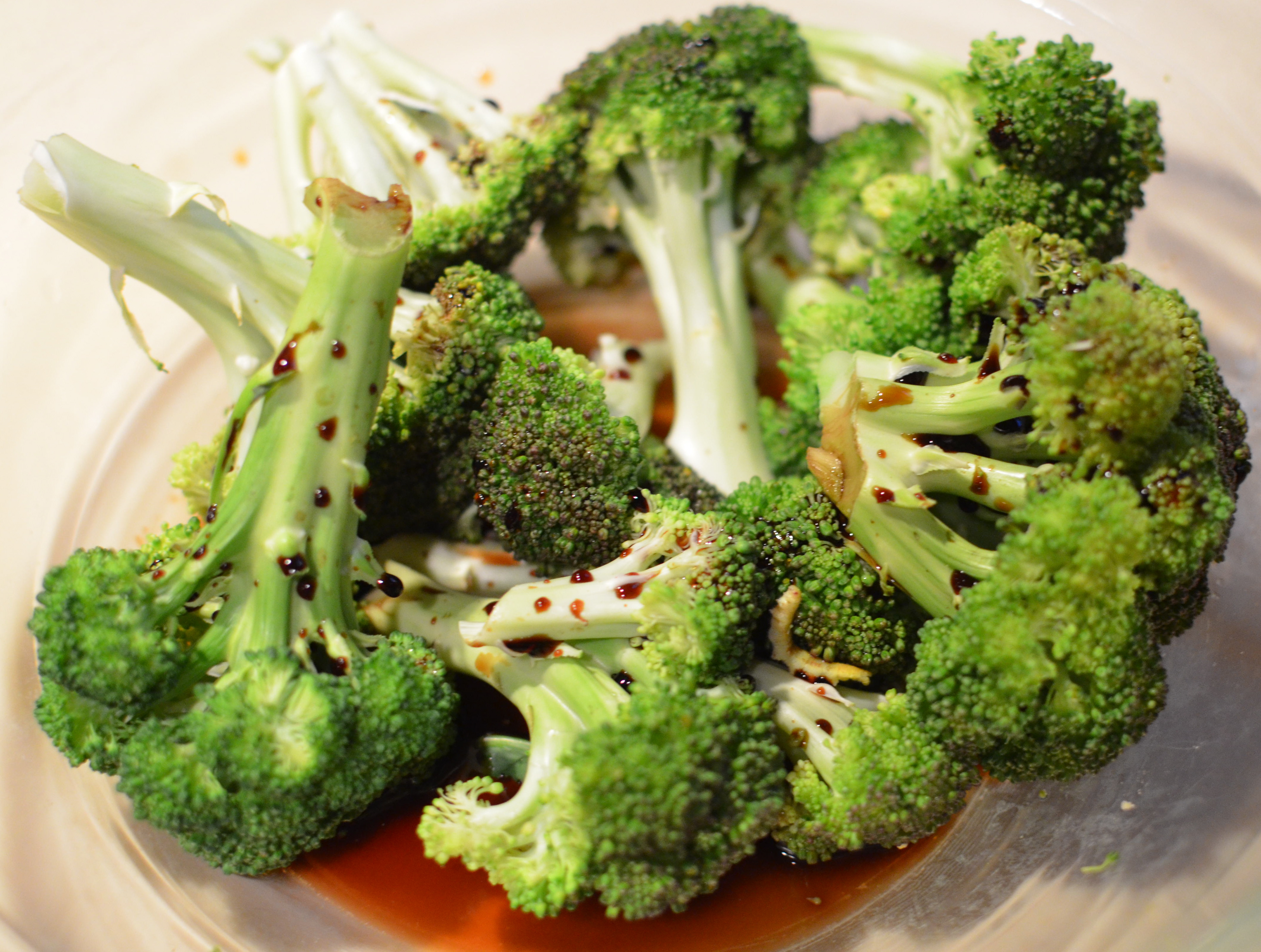 7. Drizzle the soy sauce over the broccoli and serve.