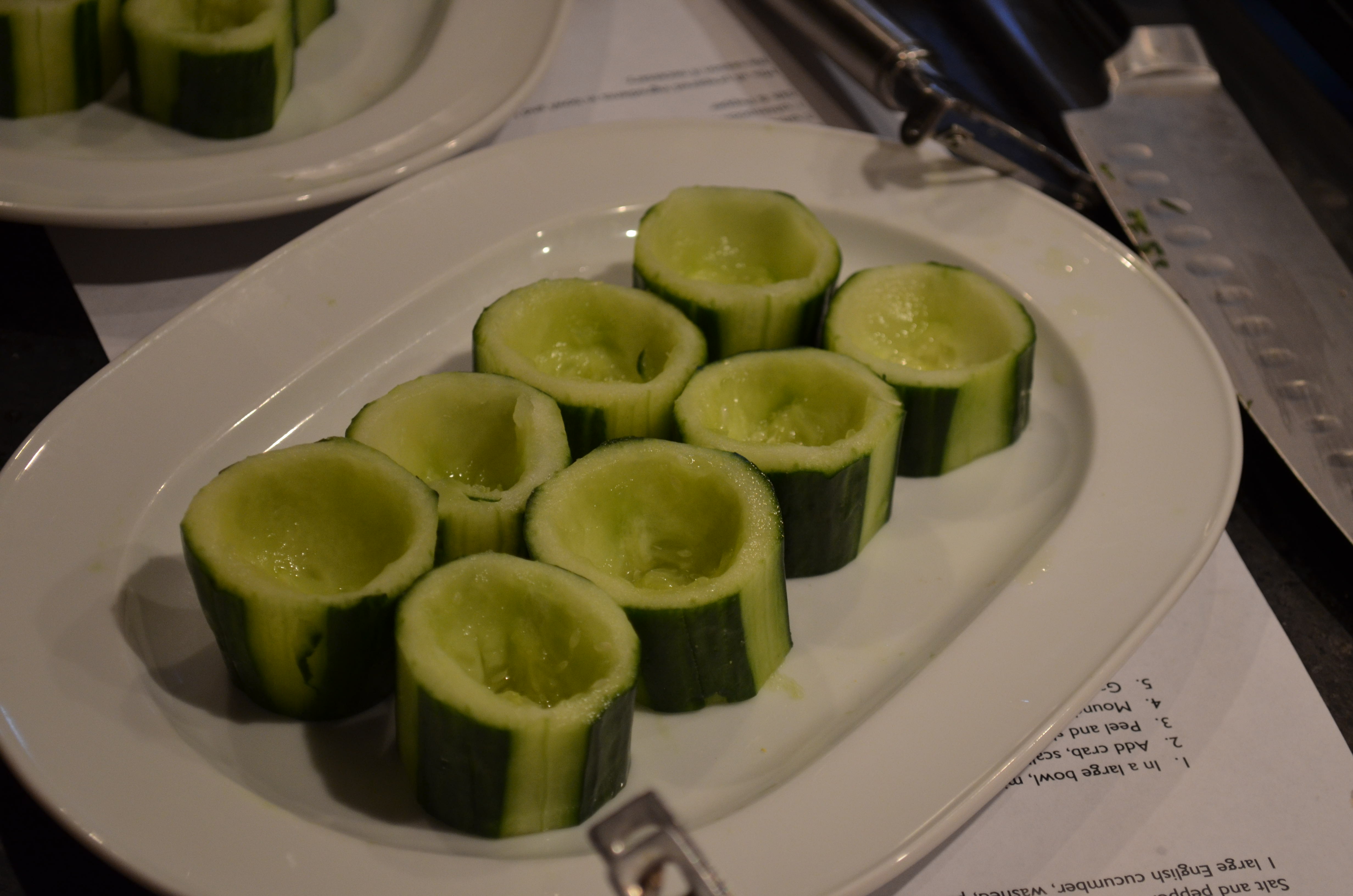 4. Fill each cucumber cup with tarragon crab salad.