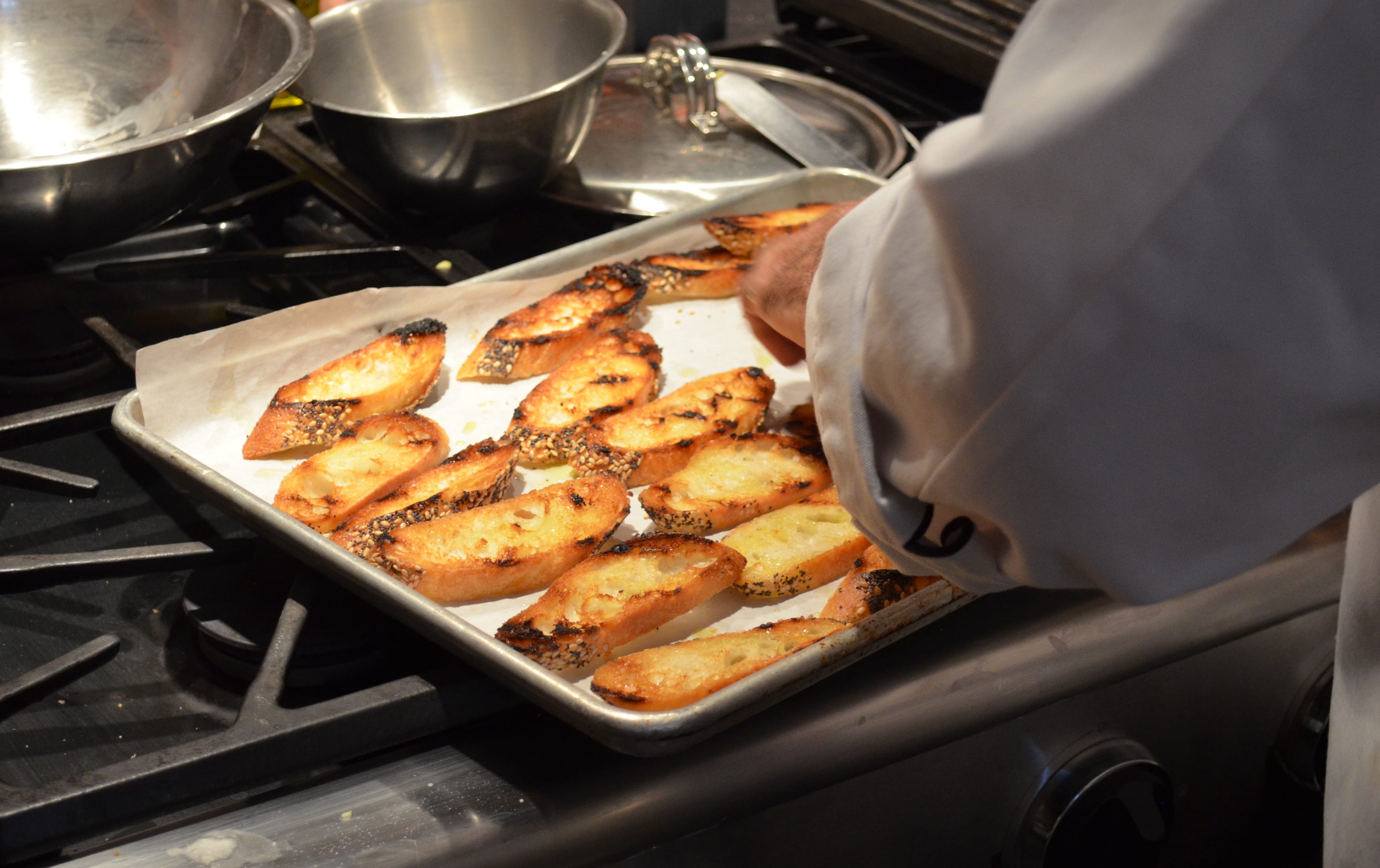 We got poured some wine, then set to different prep stations while Chef Laurence Wallace walked us through the recipes, offering tips and plenty of culinary knowledge as we went along.