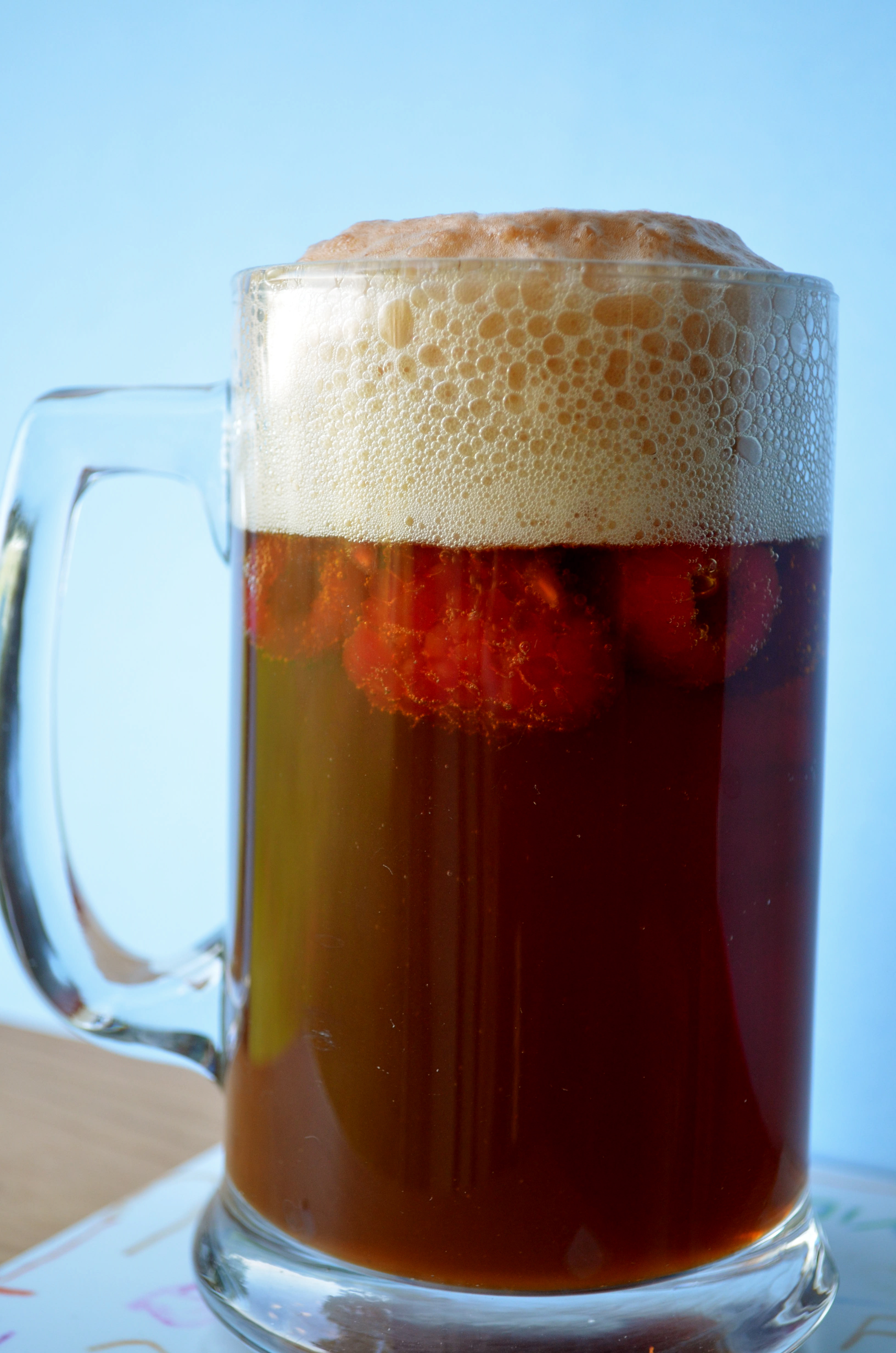 3. Pour beer over raspberry mixture. Stir gently to combine.