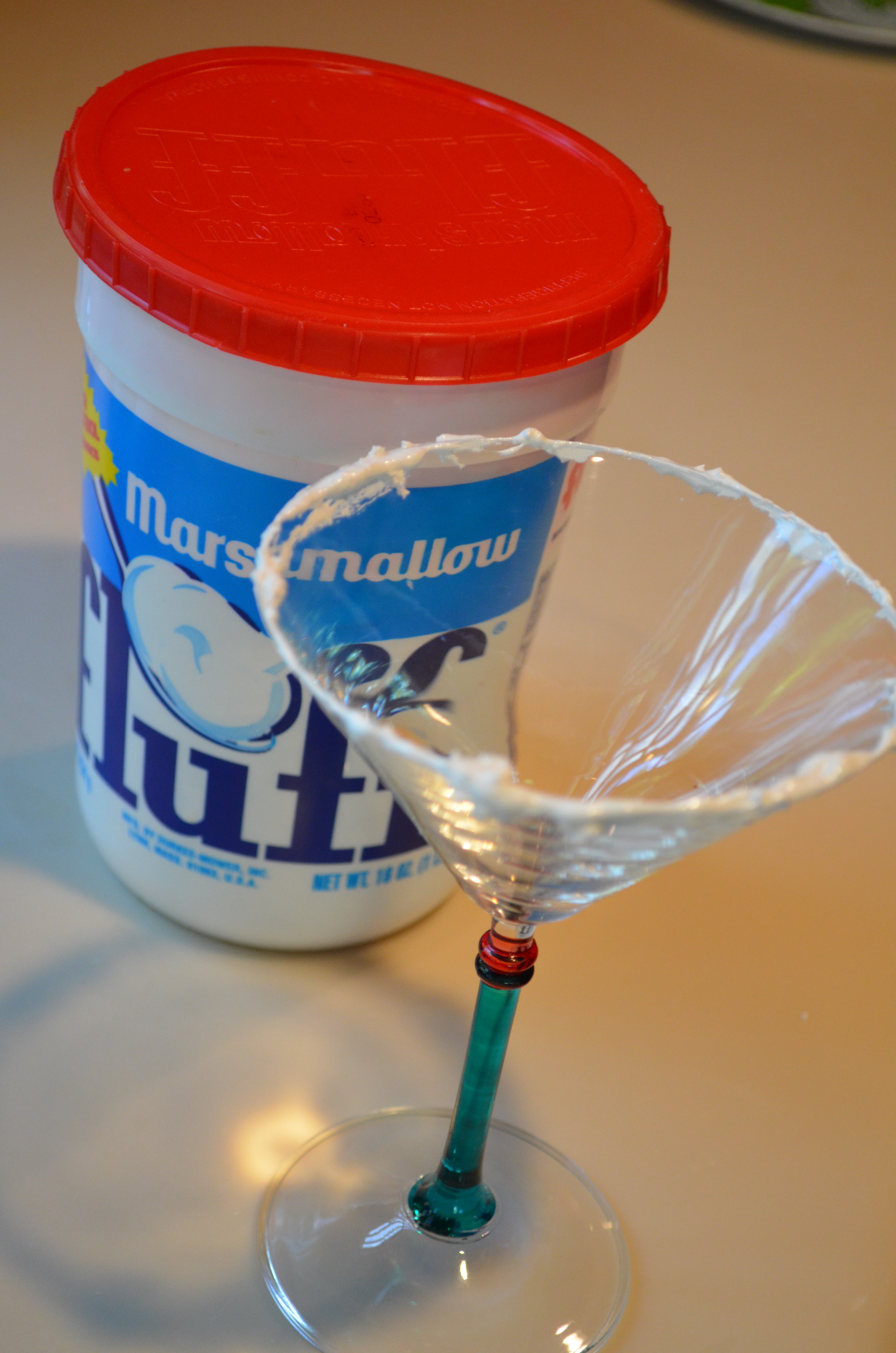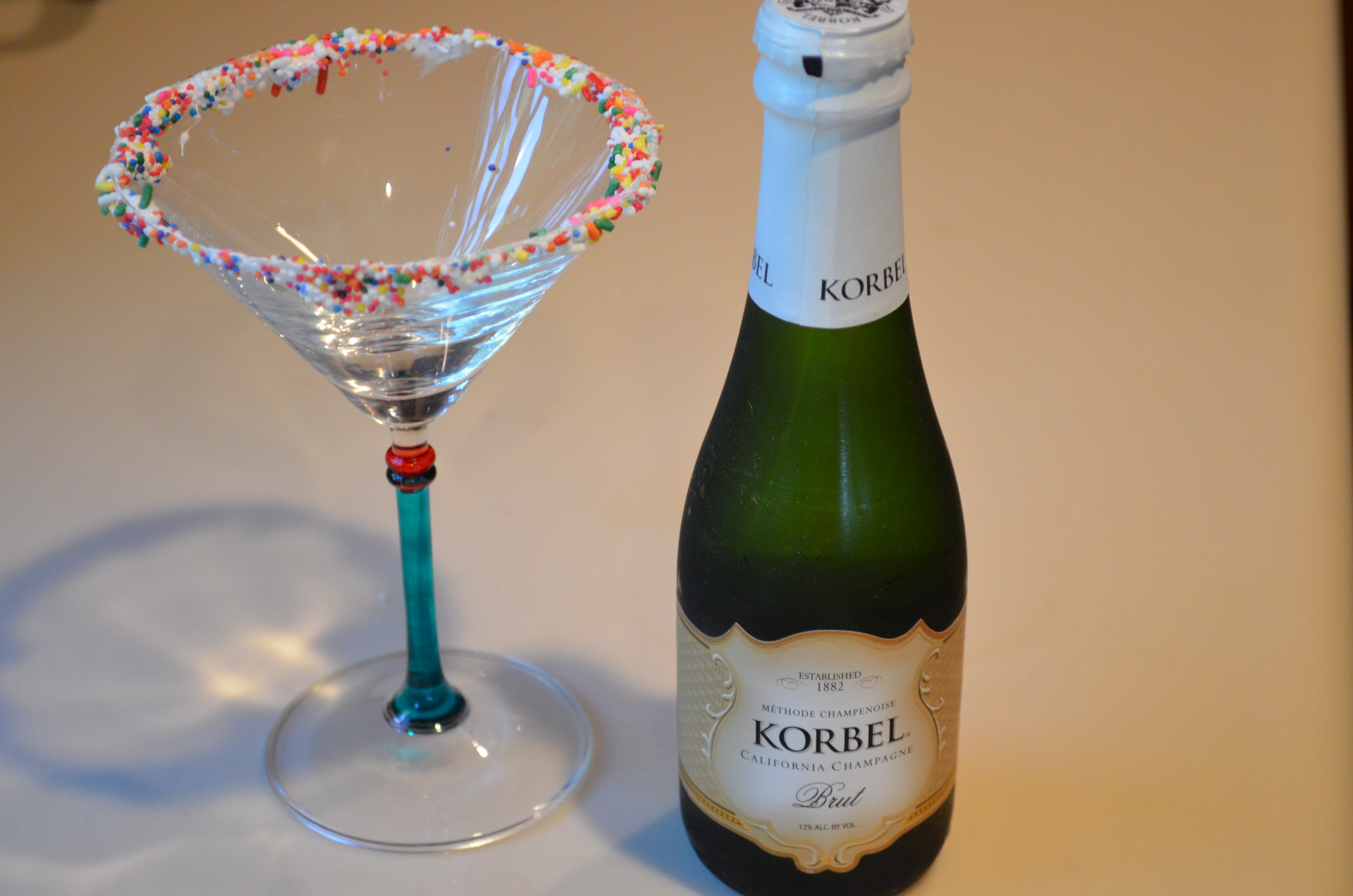 1. Rim glass with Sprinkles (Use marshmallow creme or cake frosting to help make them stick).