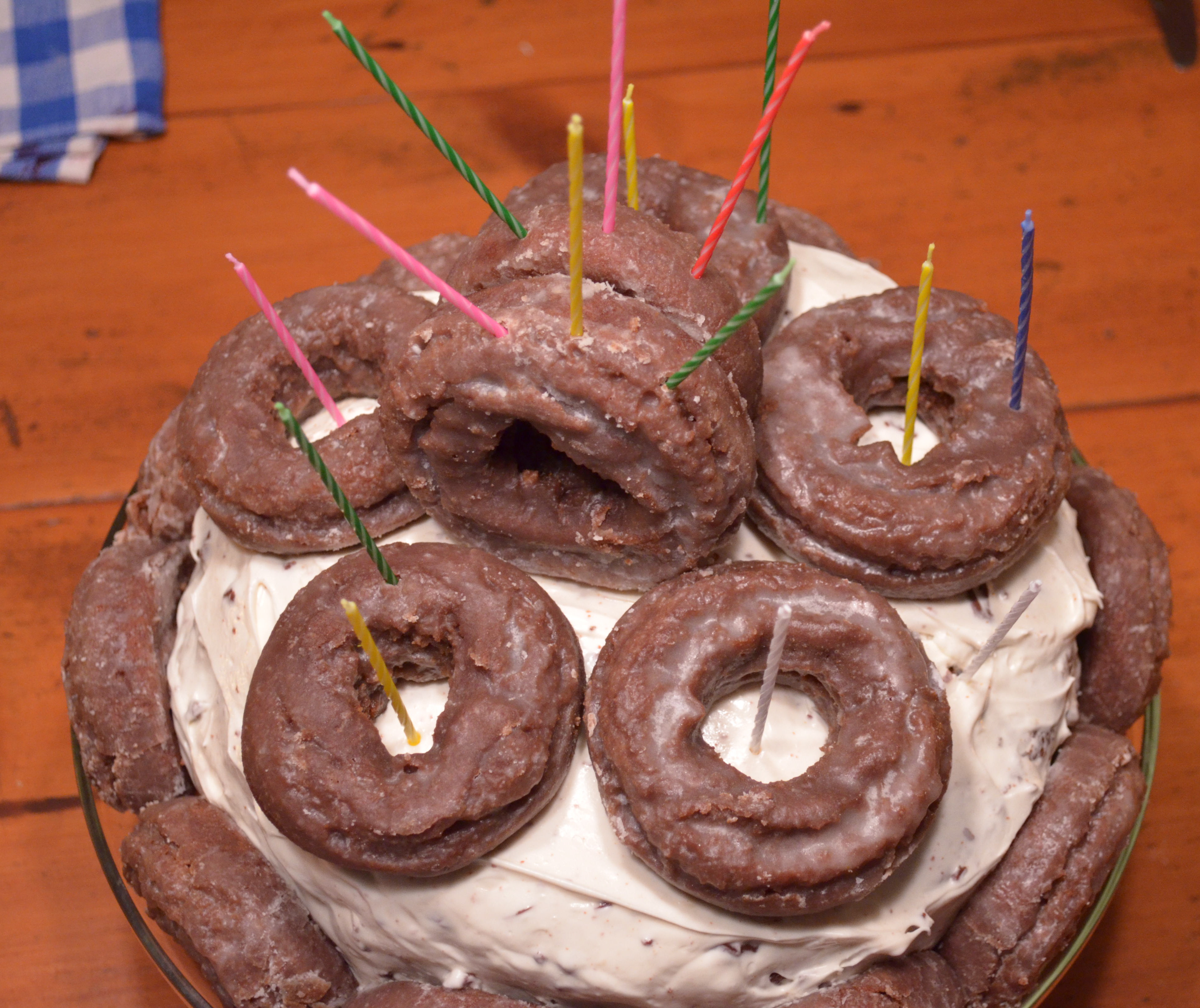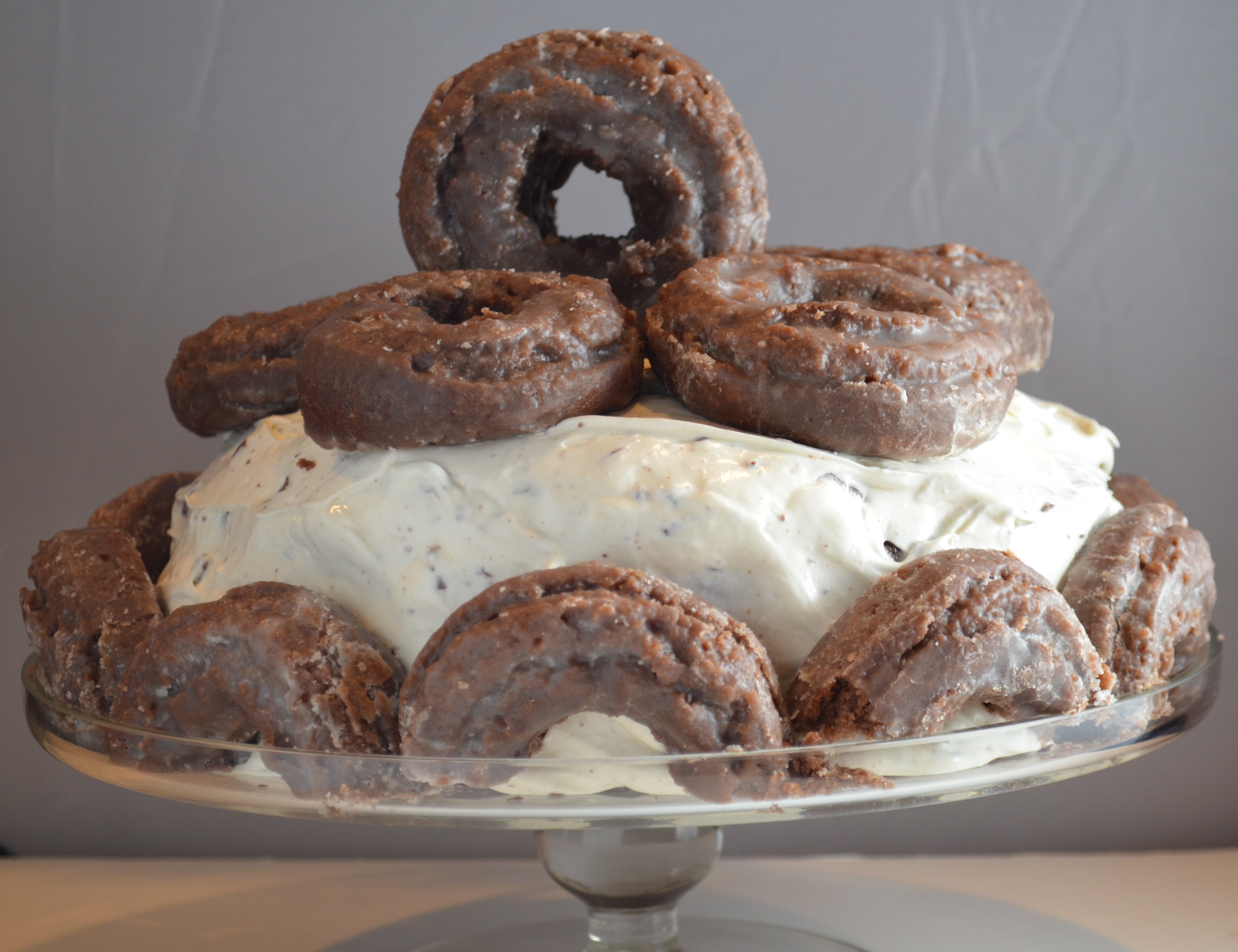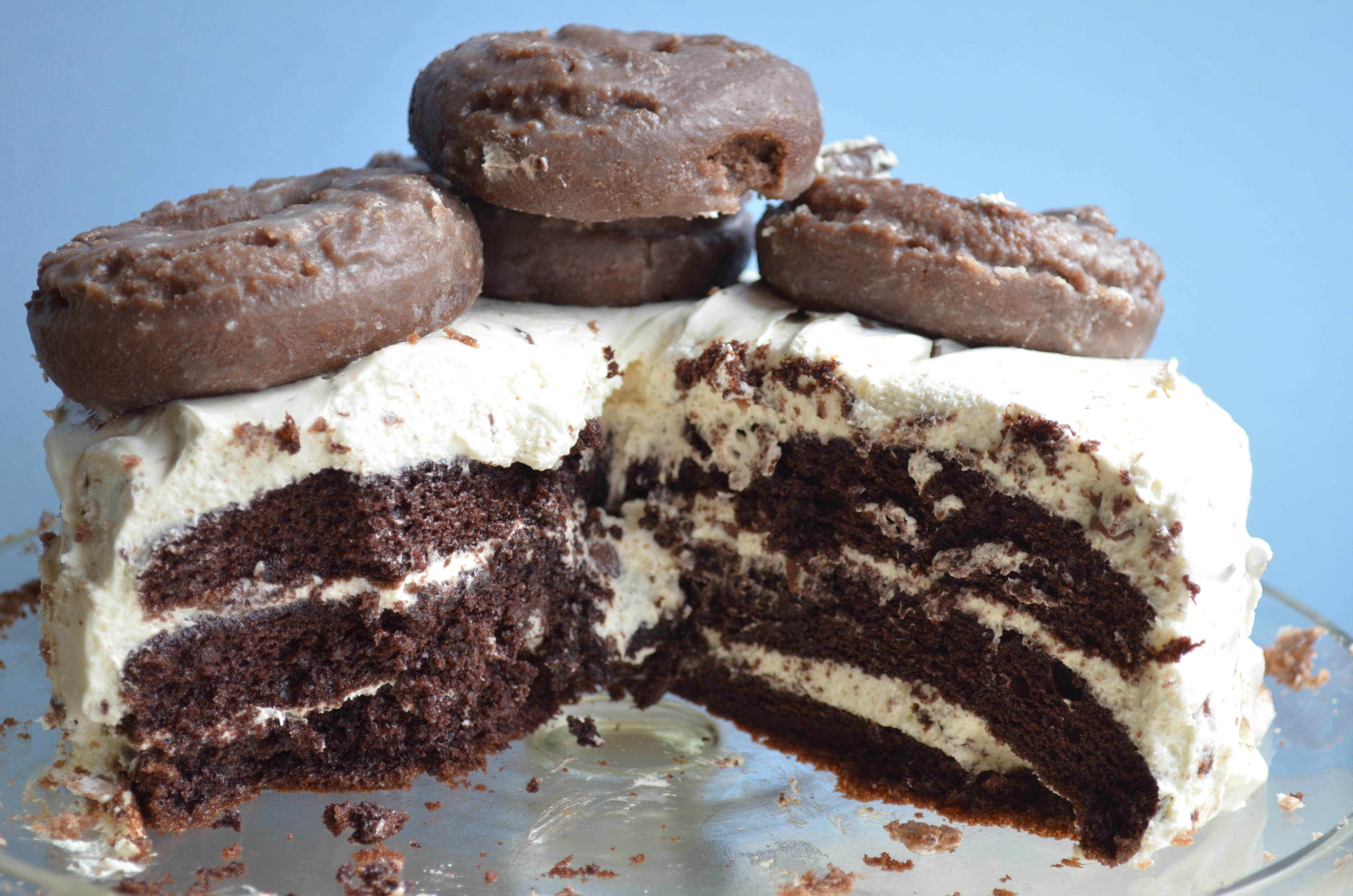 So I decided to make a rich chocolate cake with a cream cheese based icing and cover it in donuts.