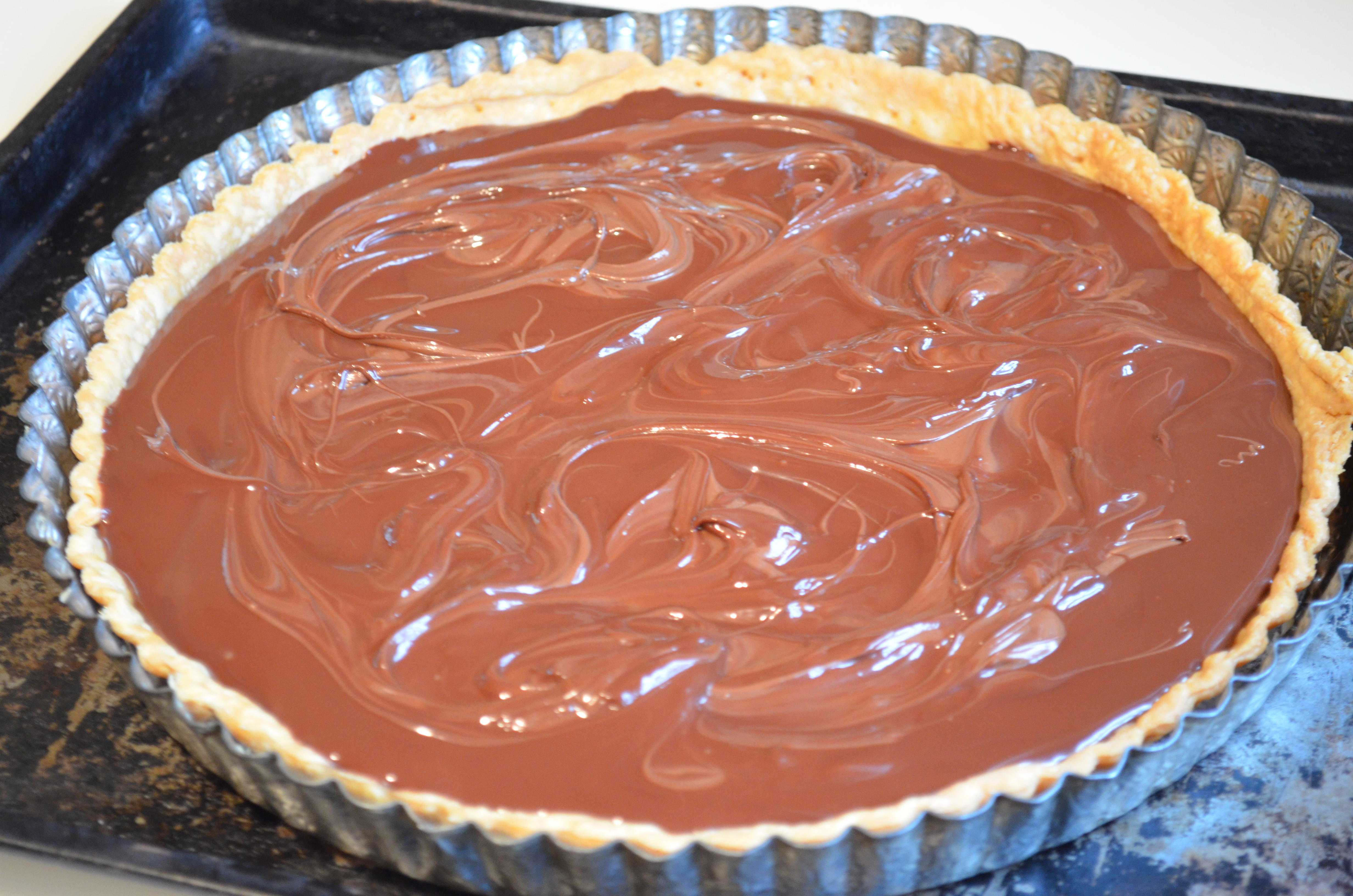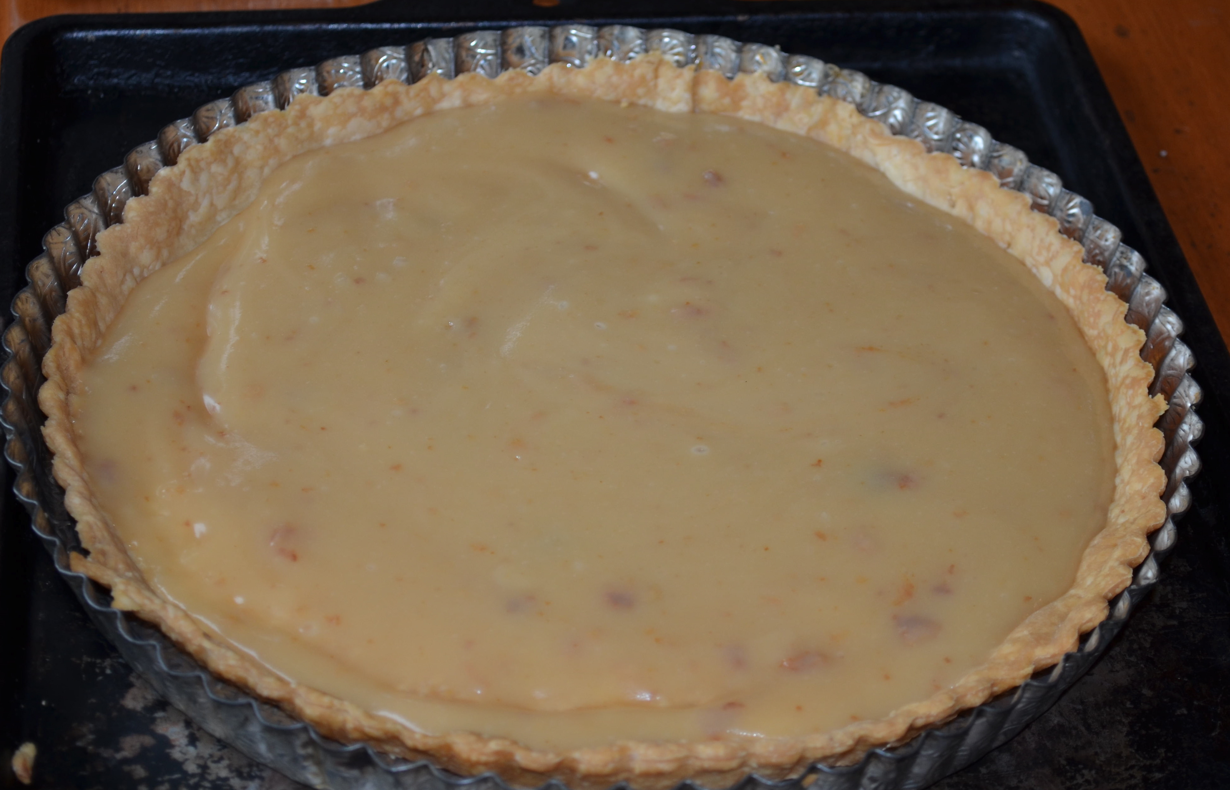 2. Heat the oven to 190℃/375℉. Put the pastry case onto a baking sheet, line with parchment and baking beans and bake blind for 20 minutes. Remove the paper and beans and continue to cook for 10-15 minutes or until the pastry is light golden. Cool.