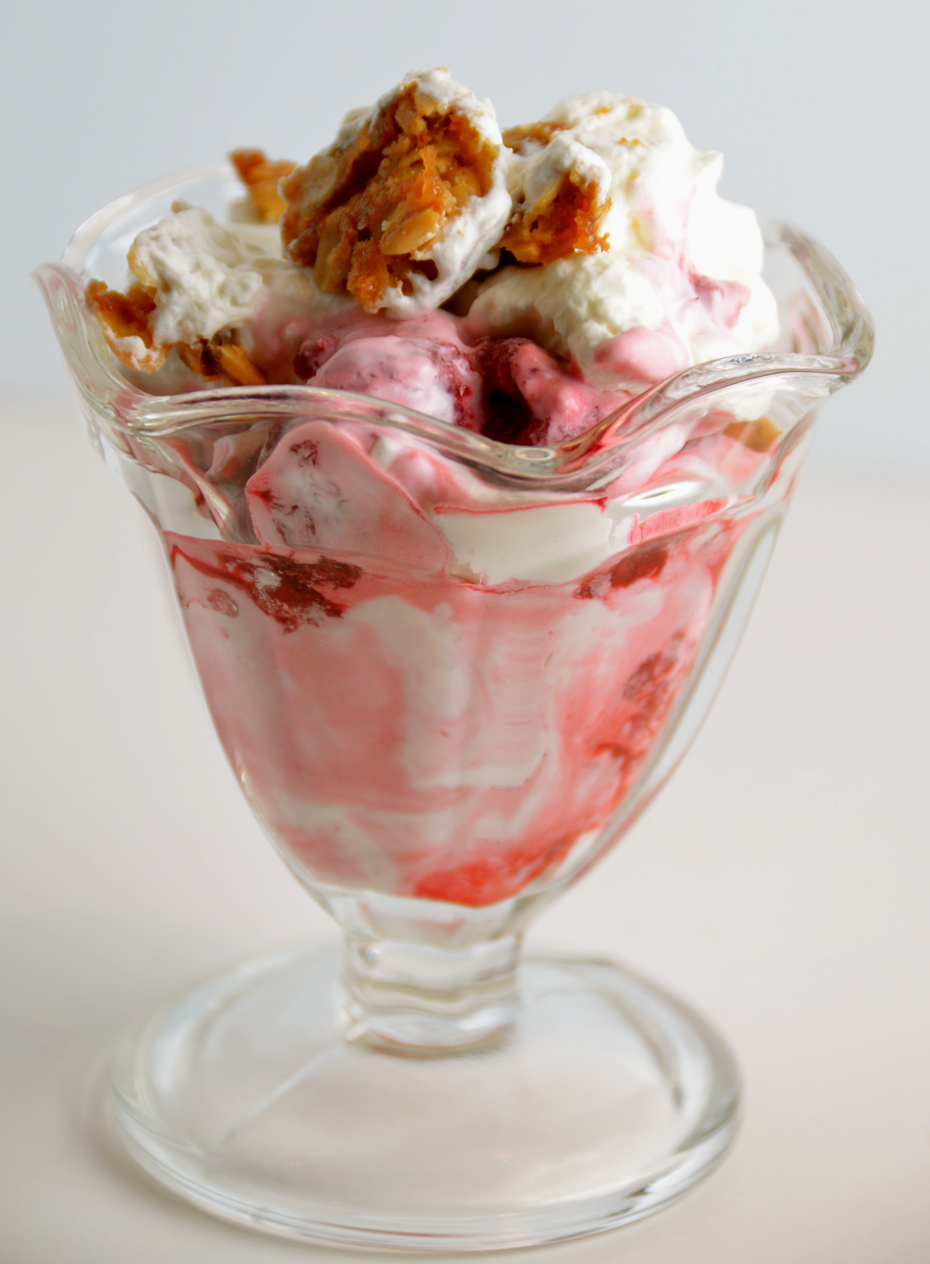3. Spread oat mixture out on a baking sheet, then bake for 20 minutes until crisp. Cool, crumble into pieces, then set aside. Can be stored in an airtight container for up to 3 days. (The leftovers are really good to snack on or to scatter over ice cream)