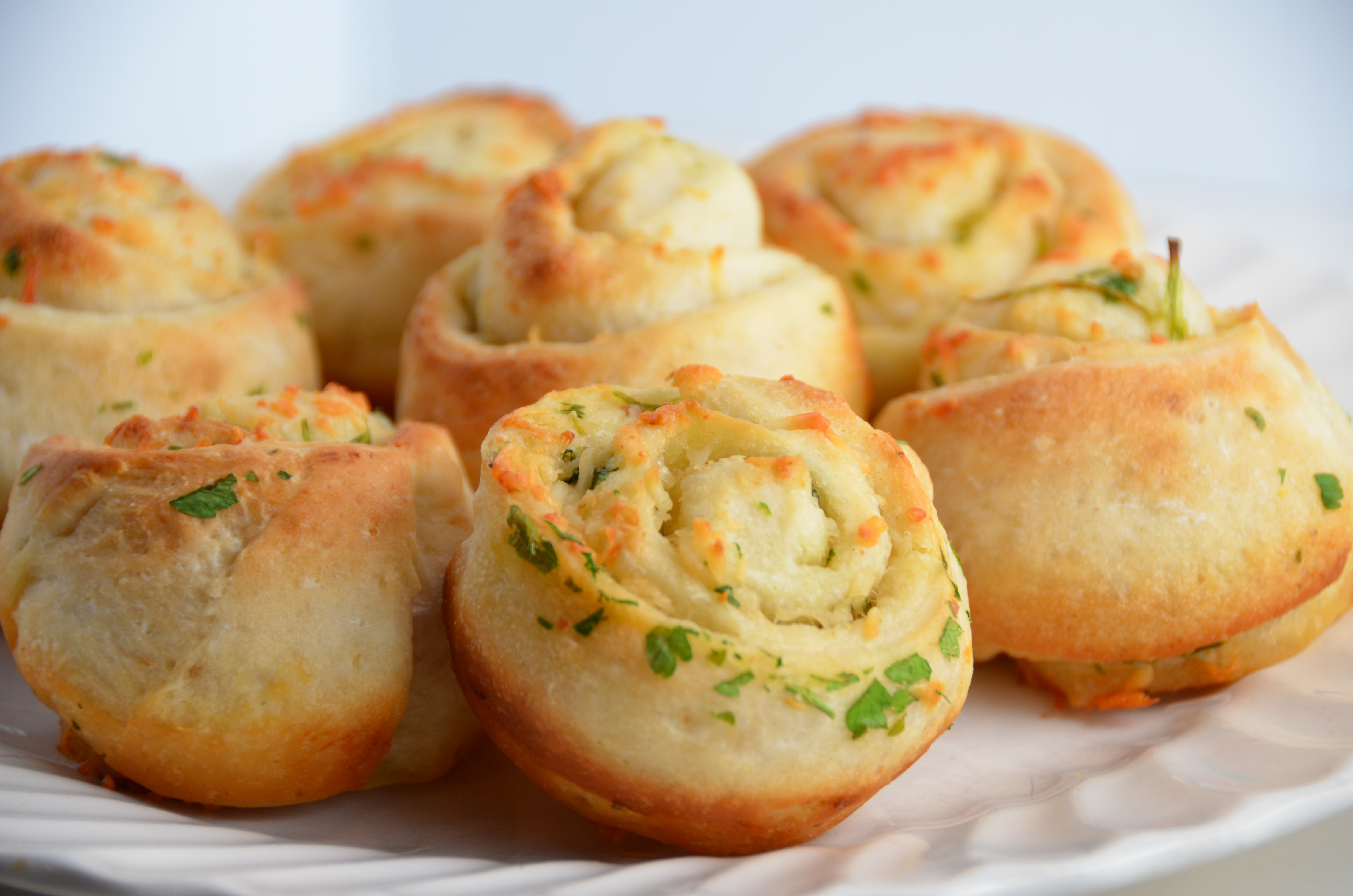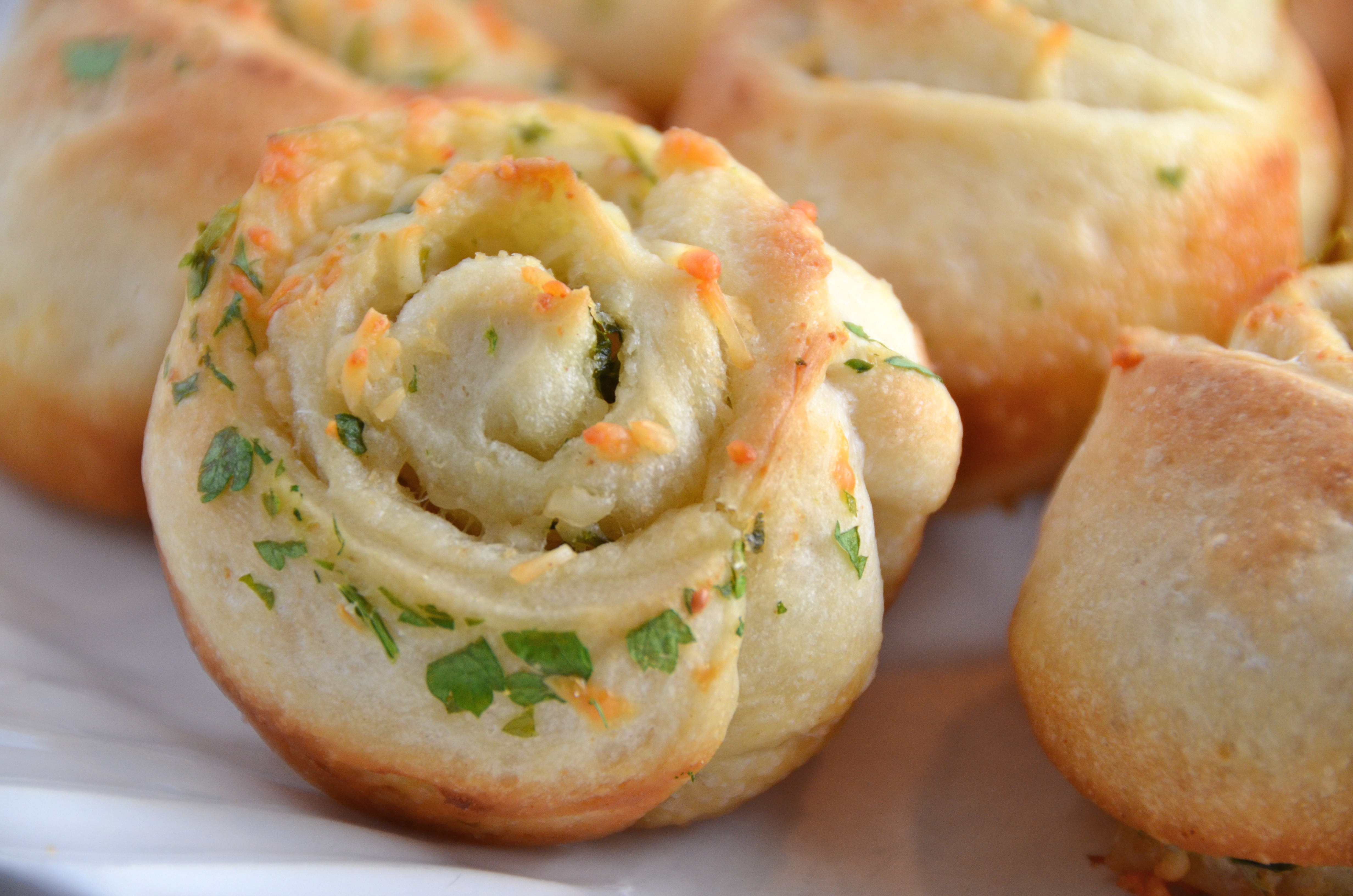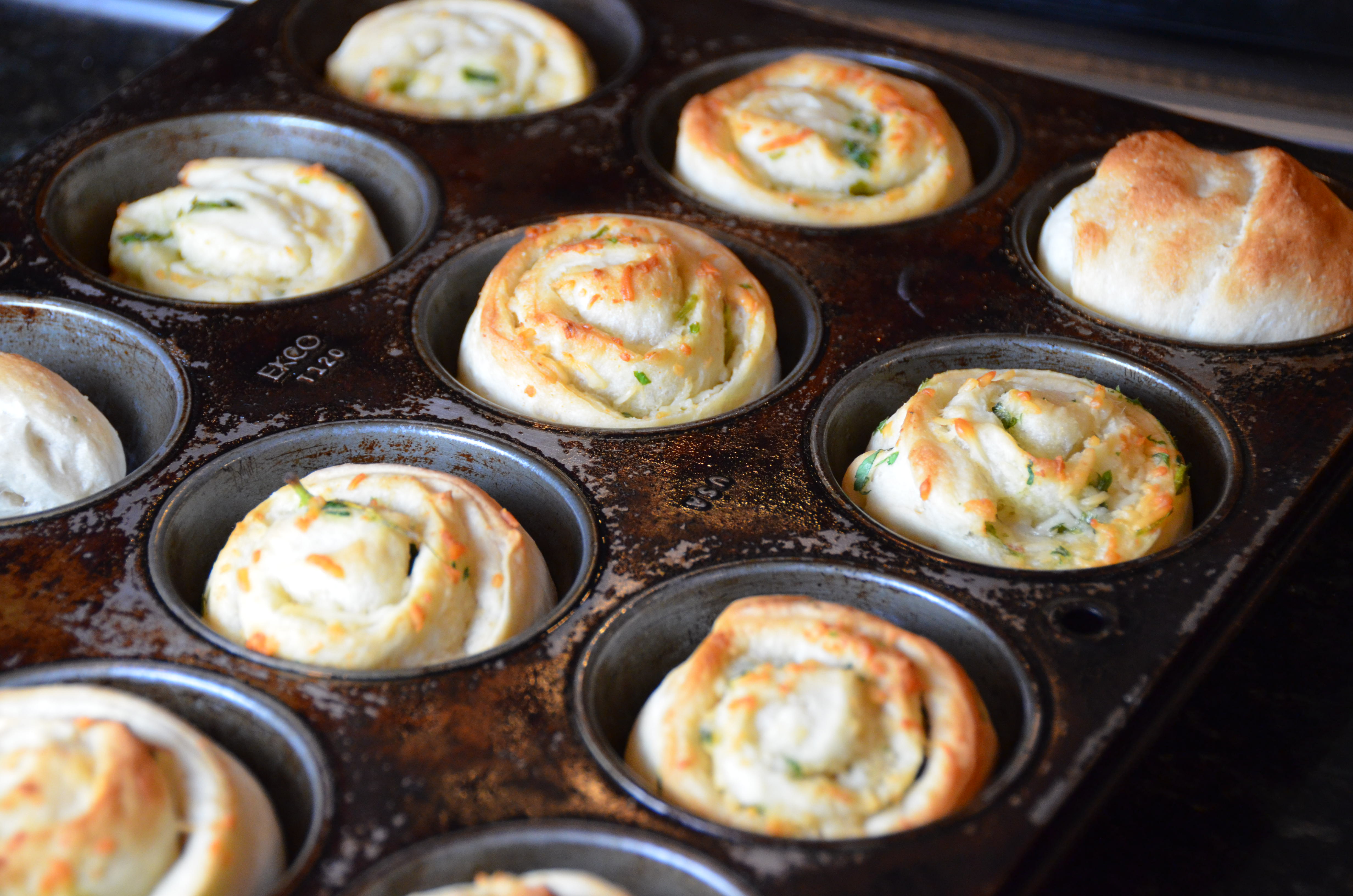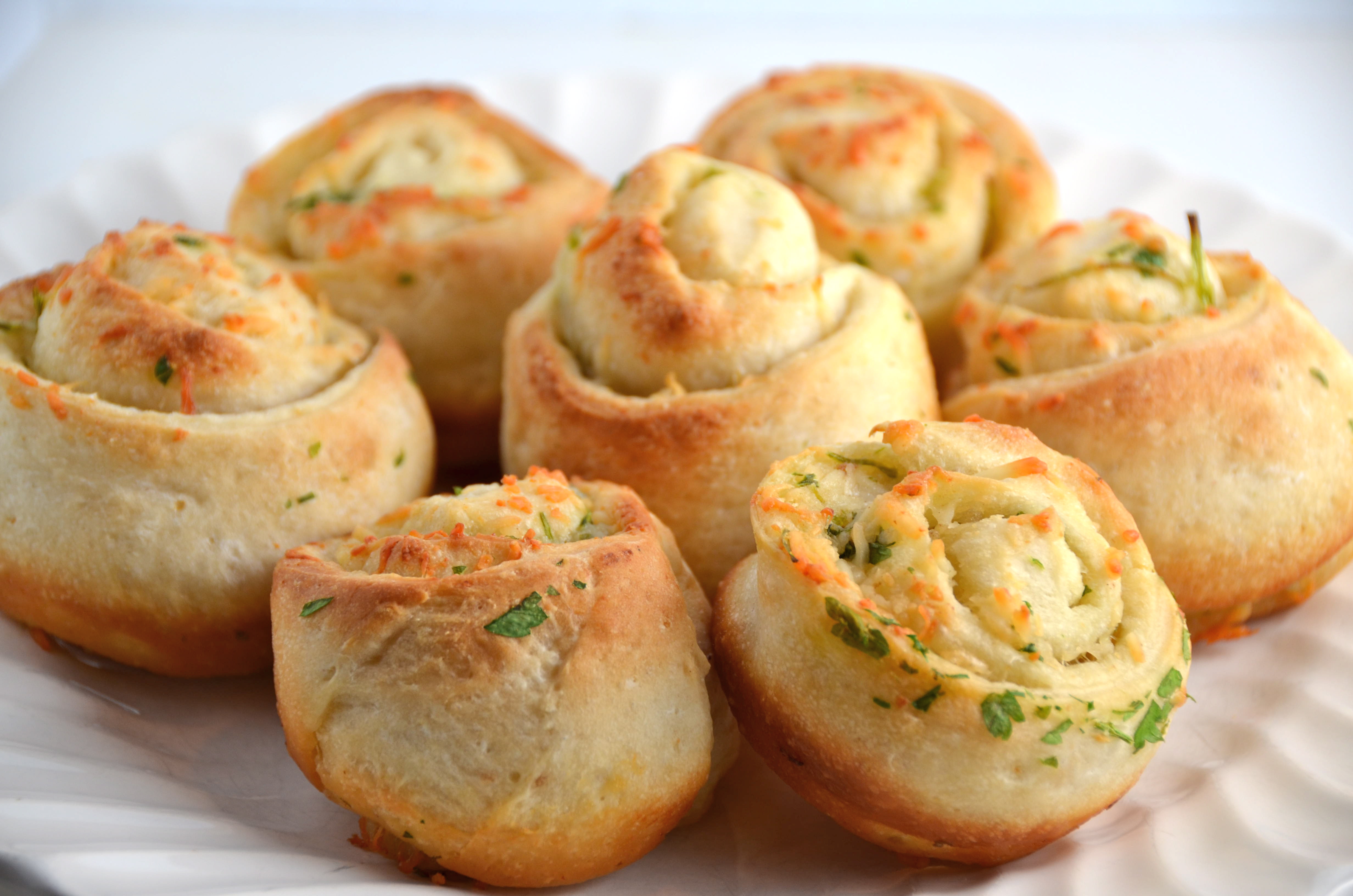 As if the soup isn’t enough richness for one meal, serve a batch of these buttery, cheesy, garlicky, oniony rolls alongside. The spirals are so easy and look as good as they taste.