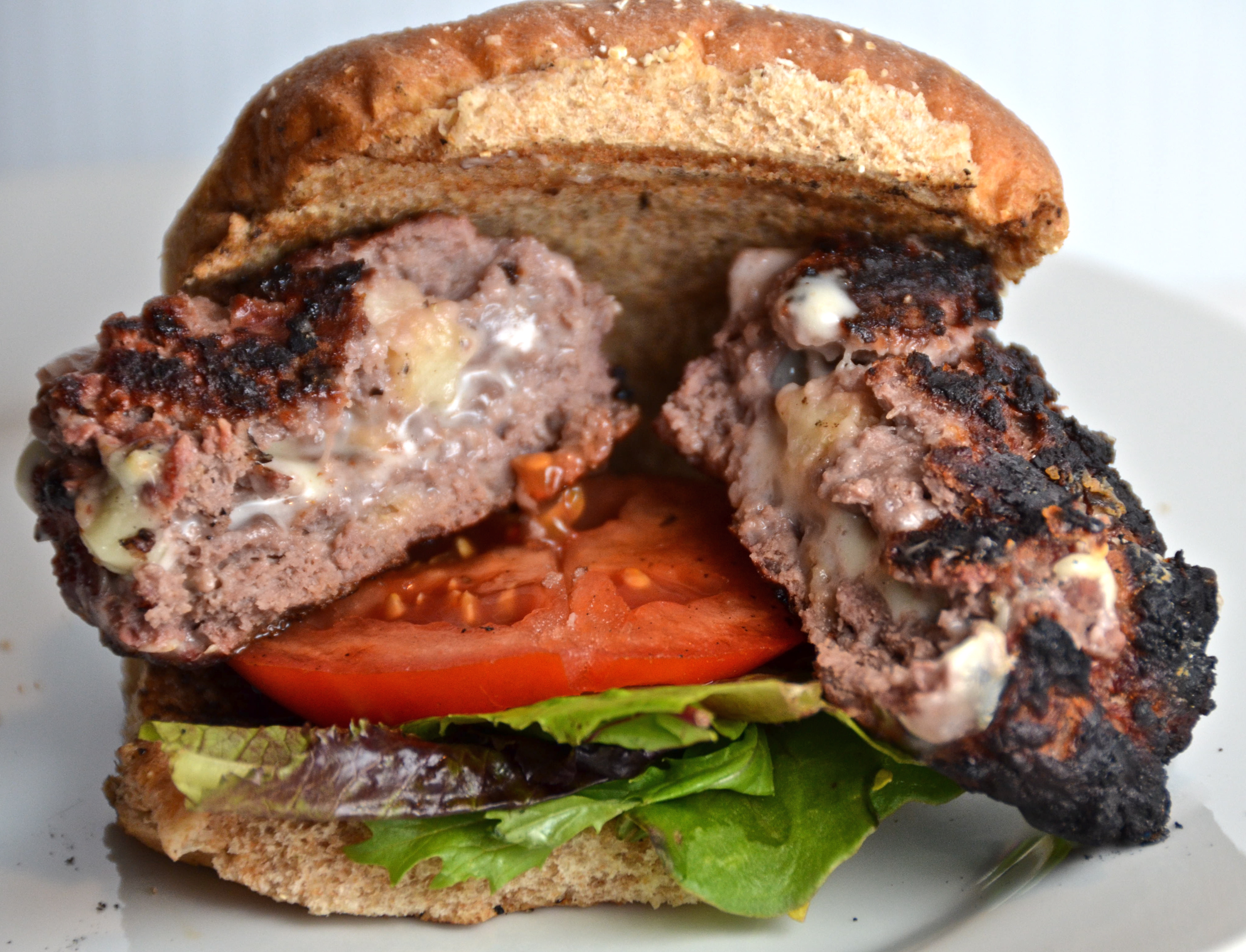 Cheese Stuffed Burgers. Mike Nisbet On The Stereo.