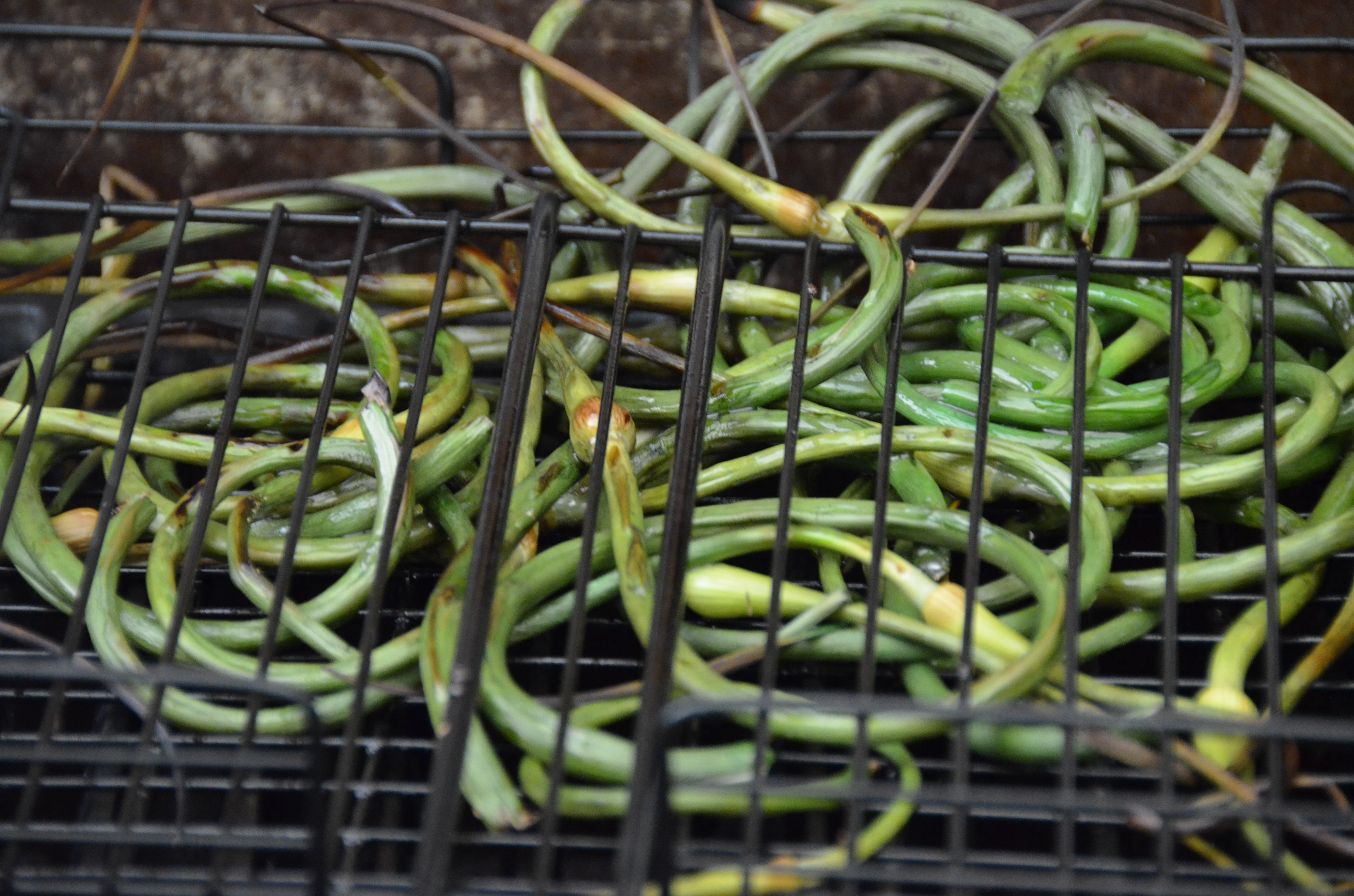 2. Toss grilled scapes with olive oil, salt and pepper.