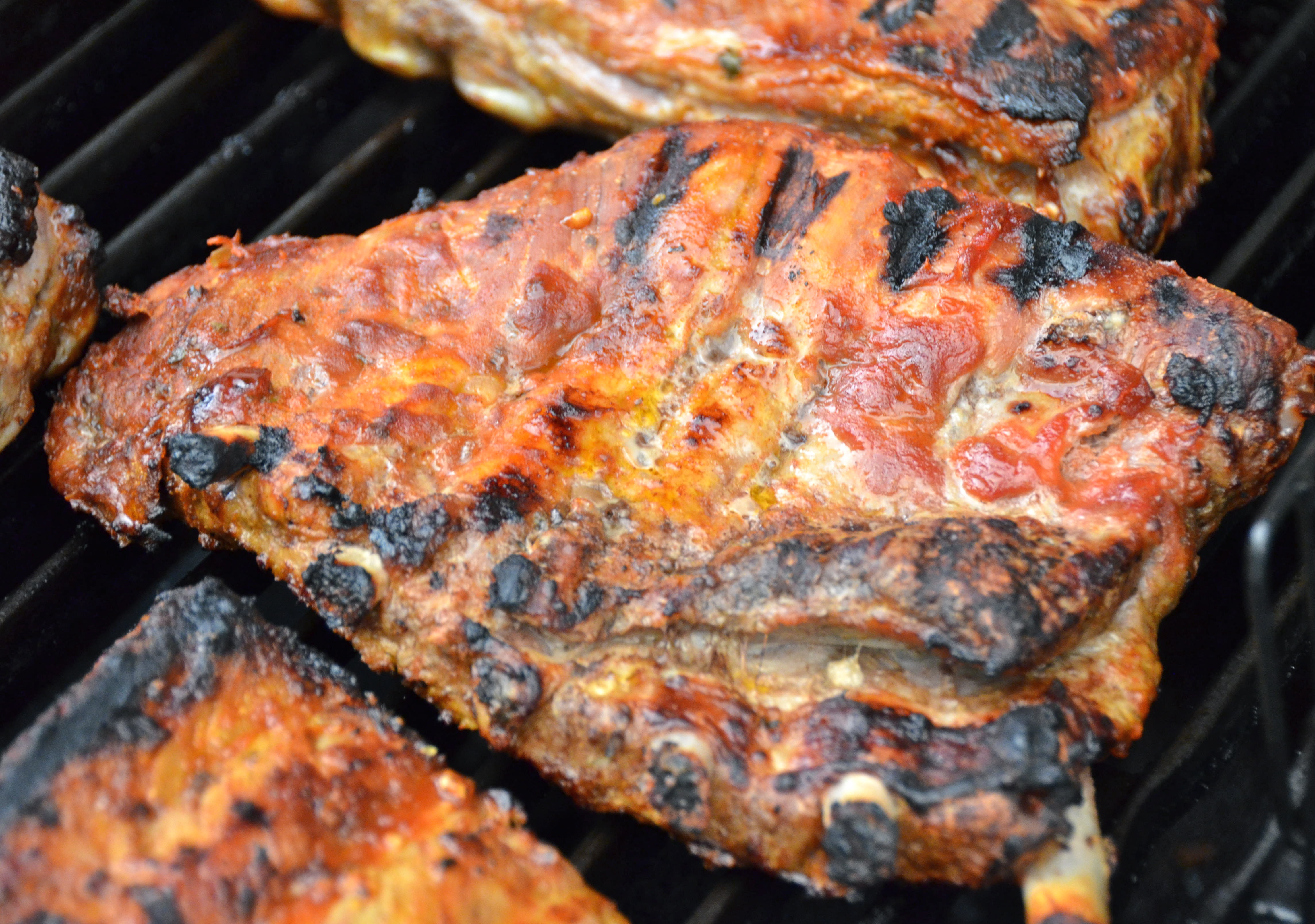 6. Grill ribs directly over heat and baste with some of reserved marinade for about 10 minutes or until cooked well throughout.