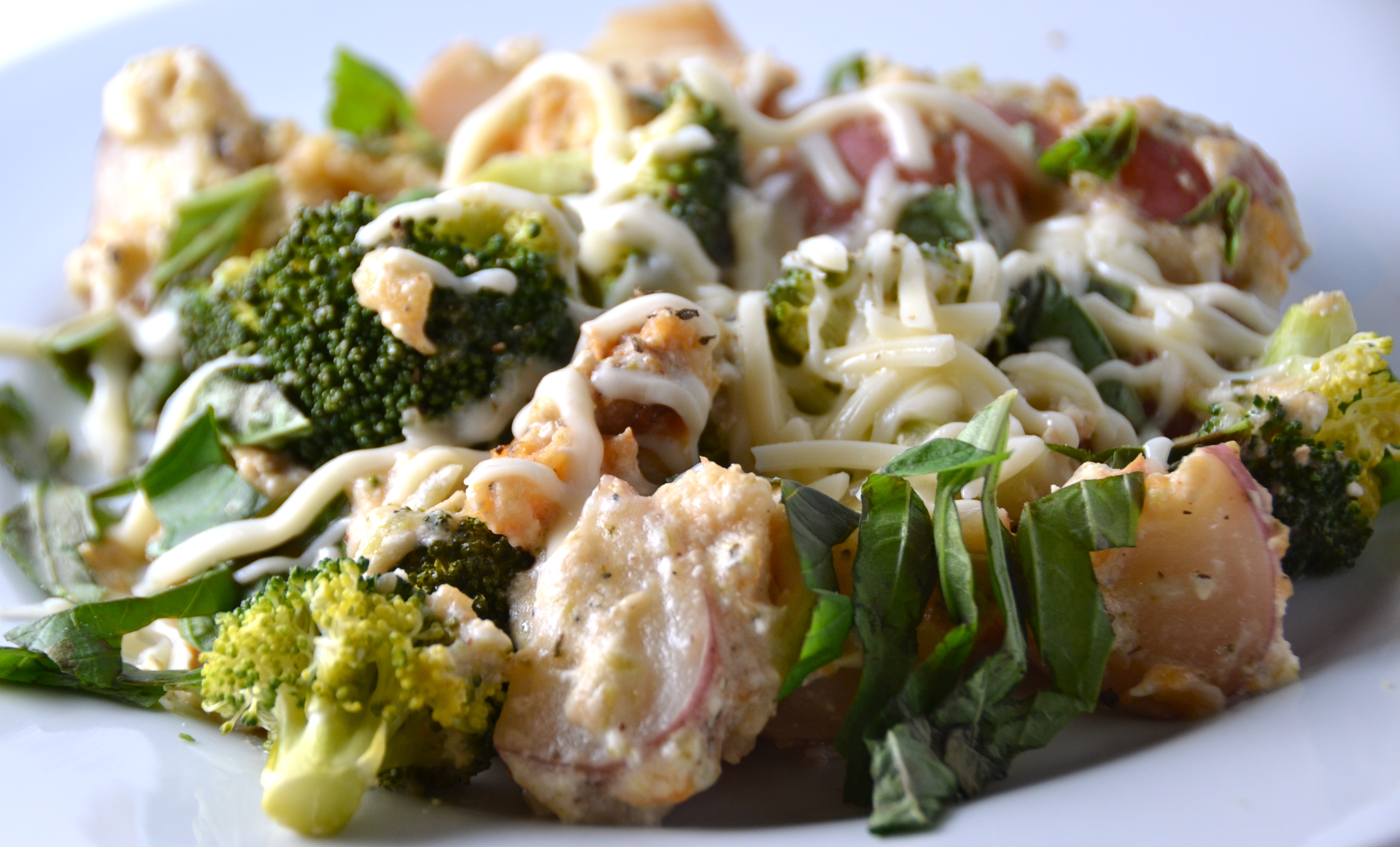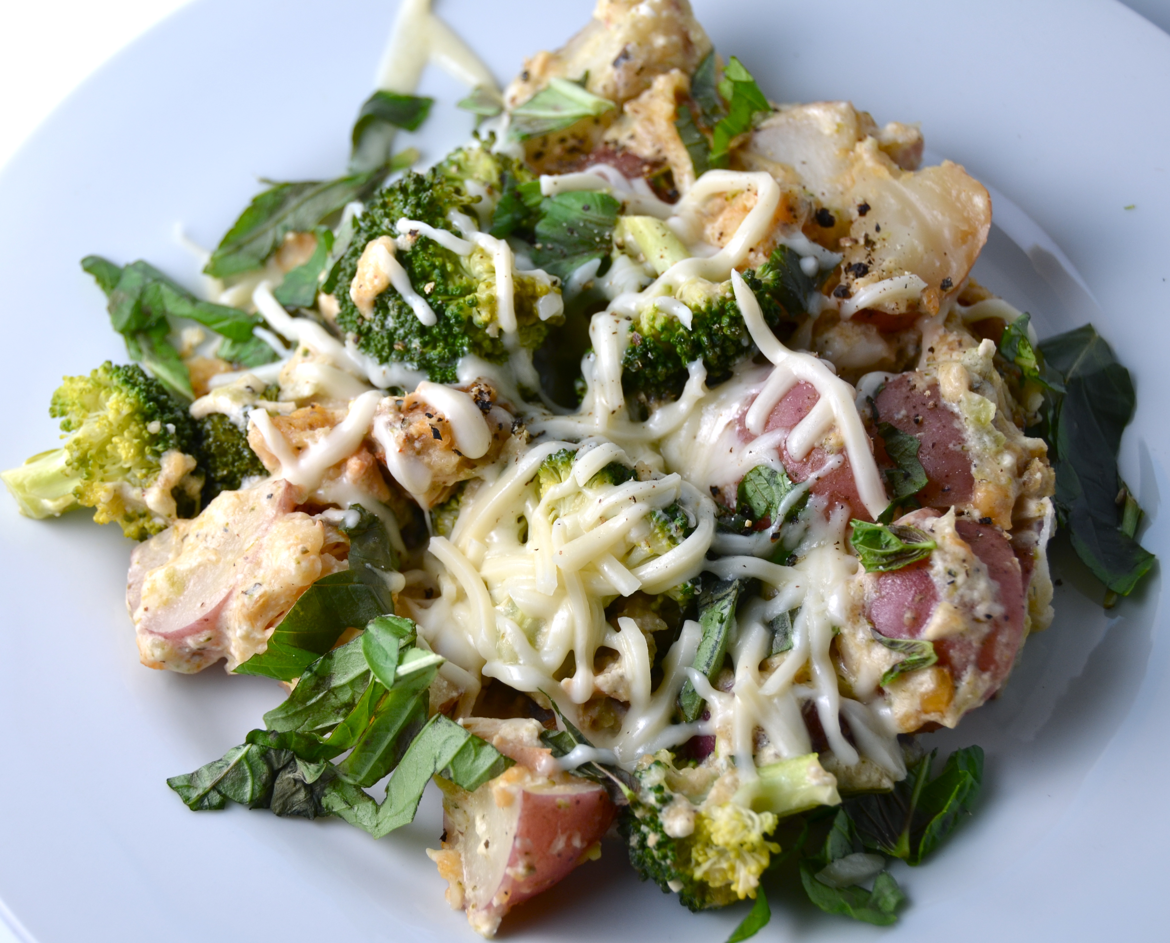 If you ever get frustrated that a lot of your slow cooker dinners taste the same, that will not be the case with this New Potato, Broccoli And Chicken Casserole. Tender chicken and potatoes share the stage with crunchy broccoli in a rich, creamy Swiss cheese sauce. The subtle peppery flavor of the fresh basil makes it the perfect garnish.