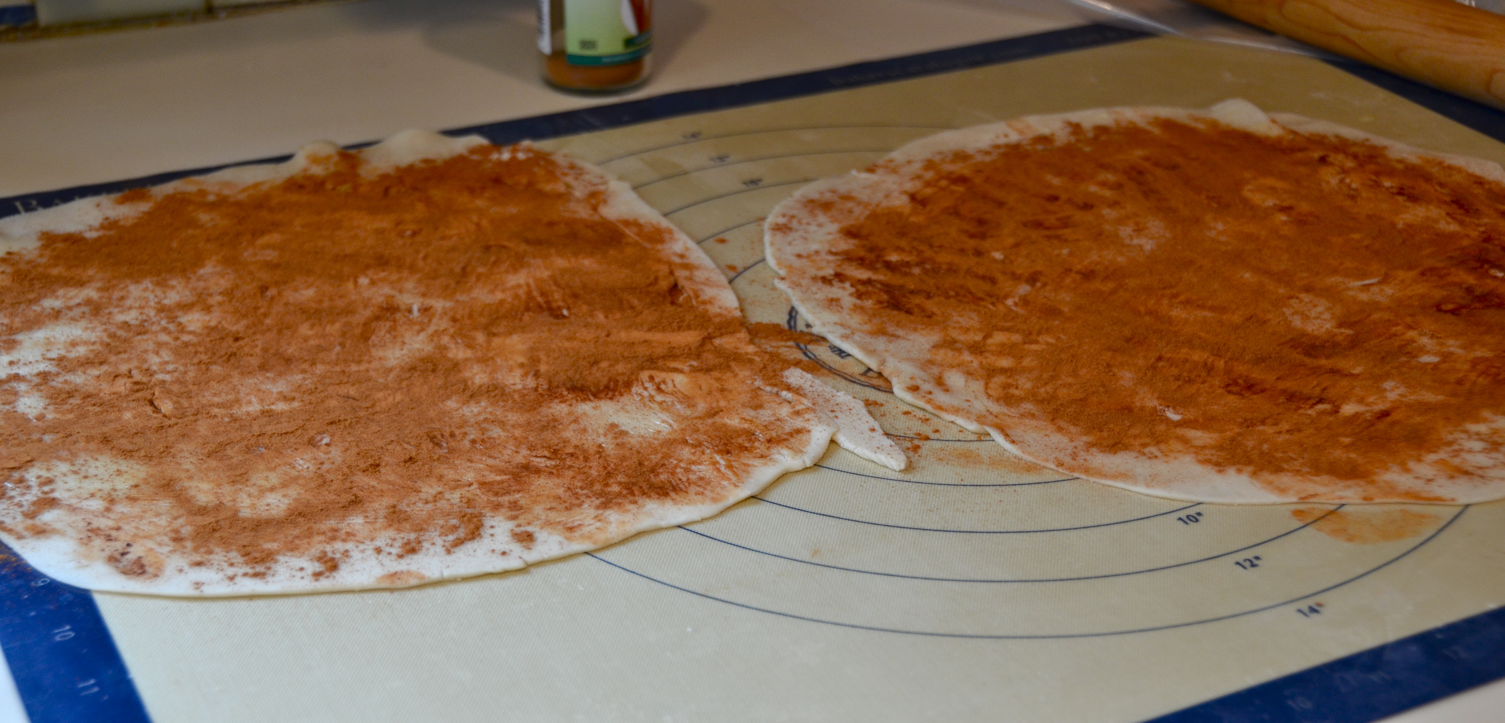 3. Sprinkle 2 teaspoons of the cinnamon on top of the crust and spread it around with your hands.
