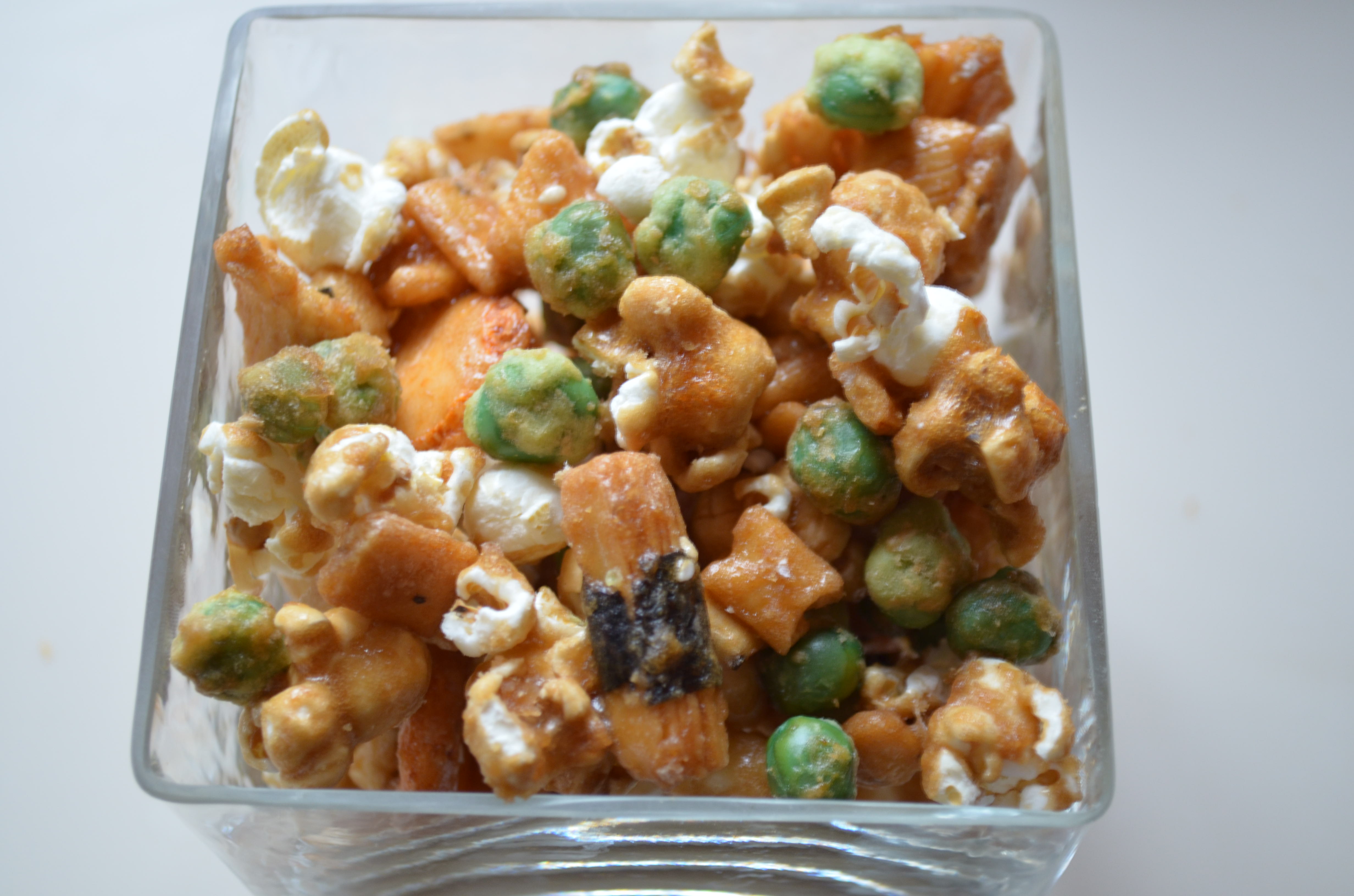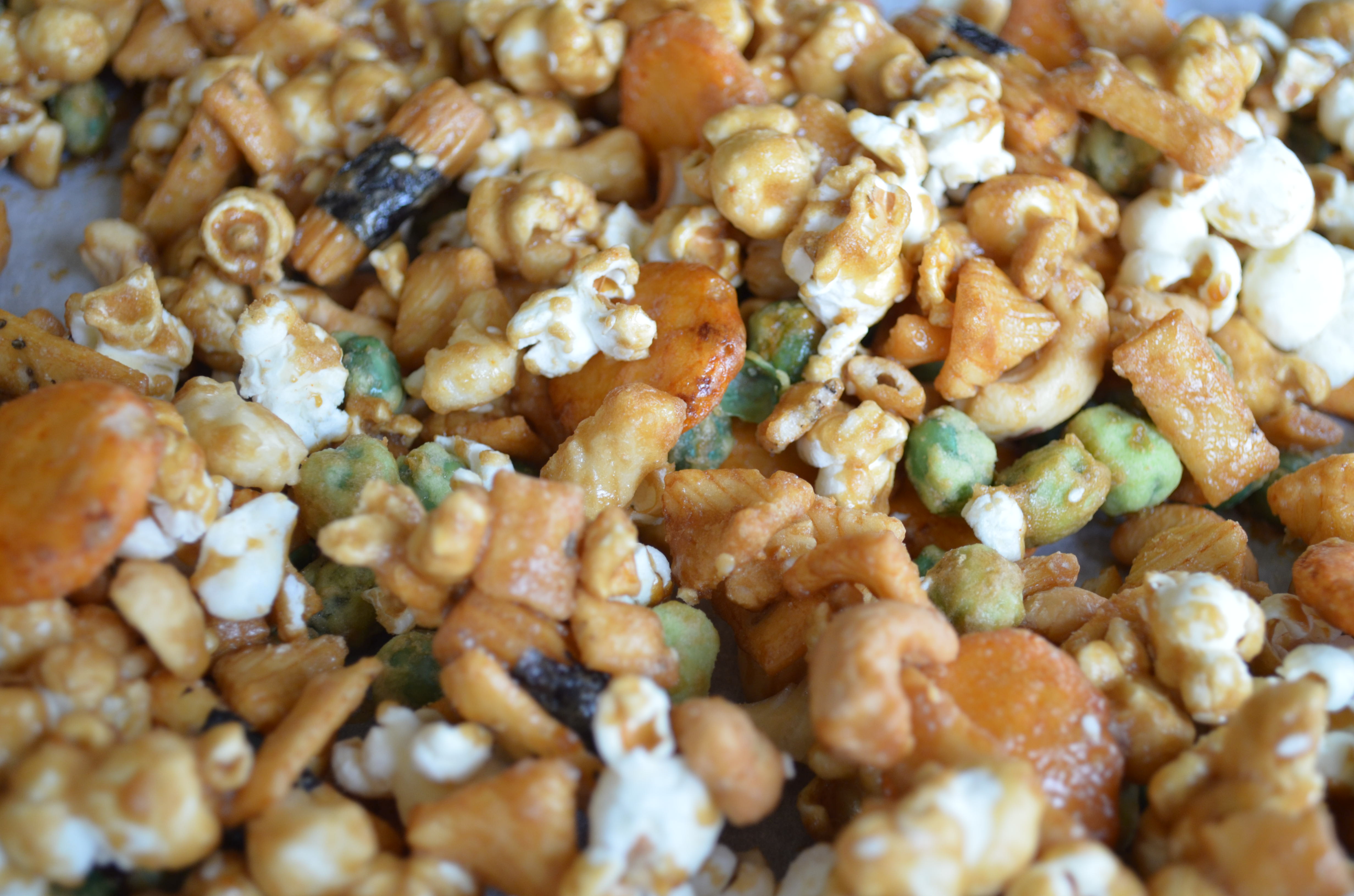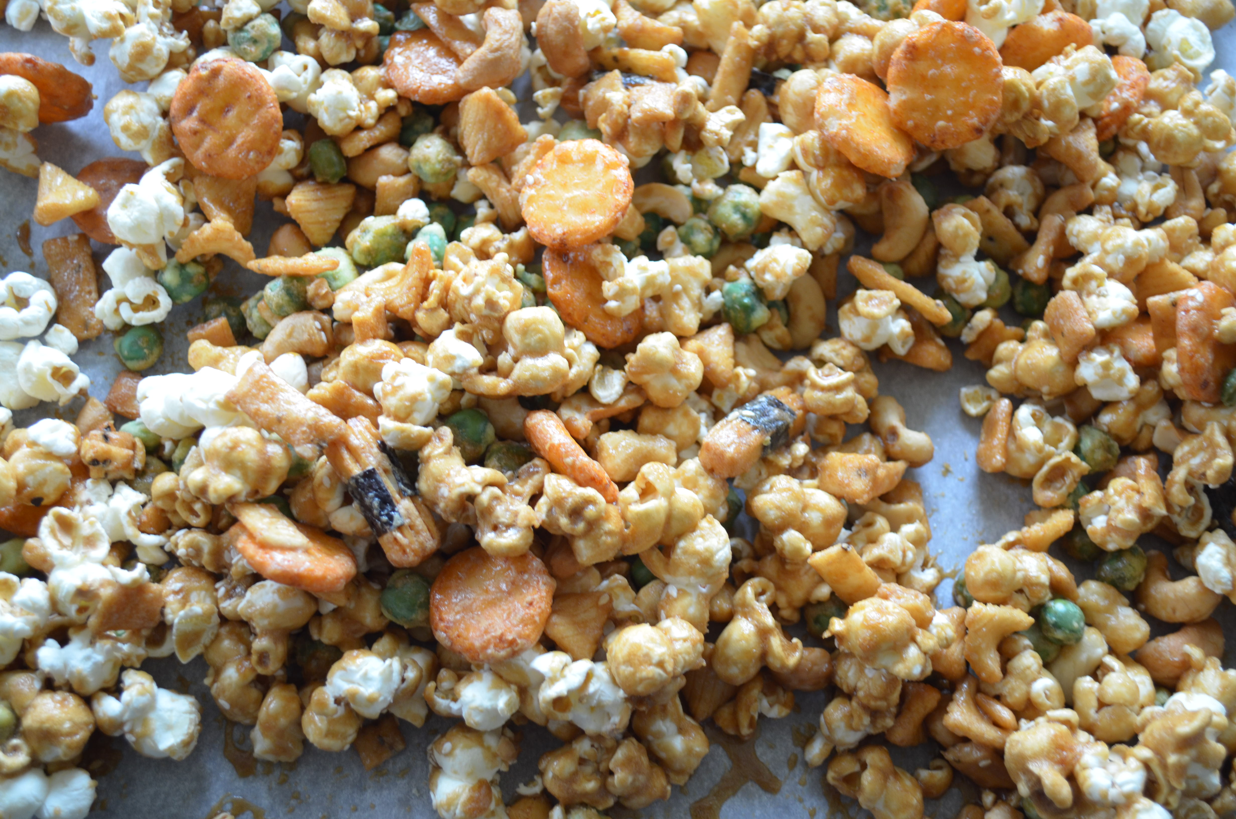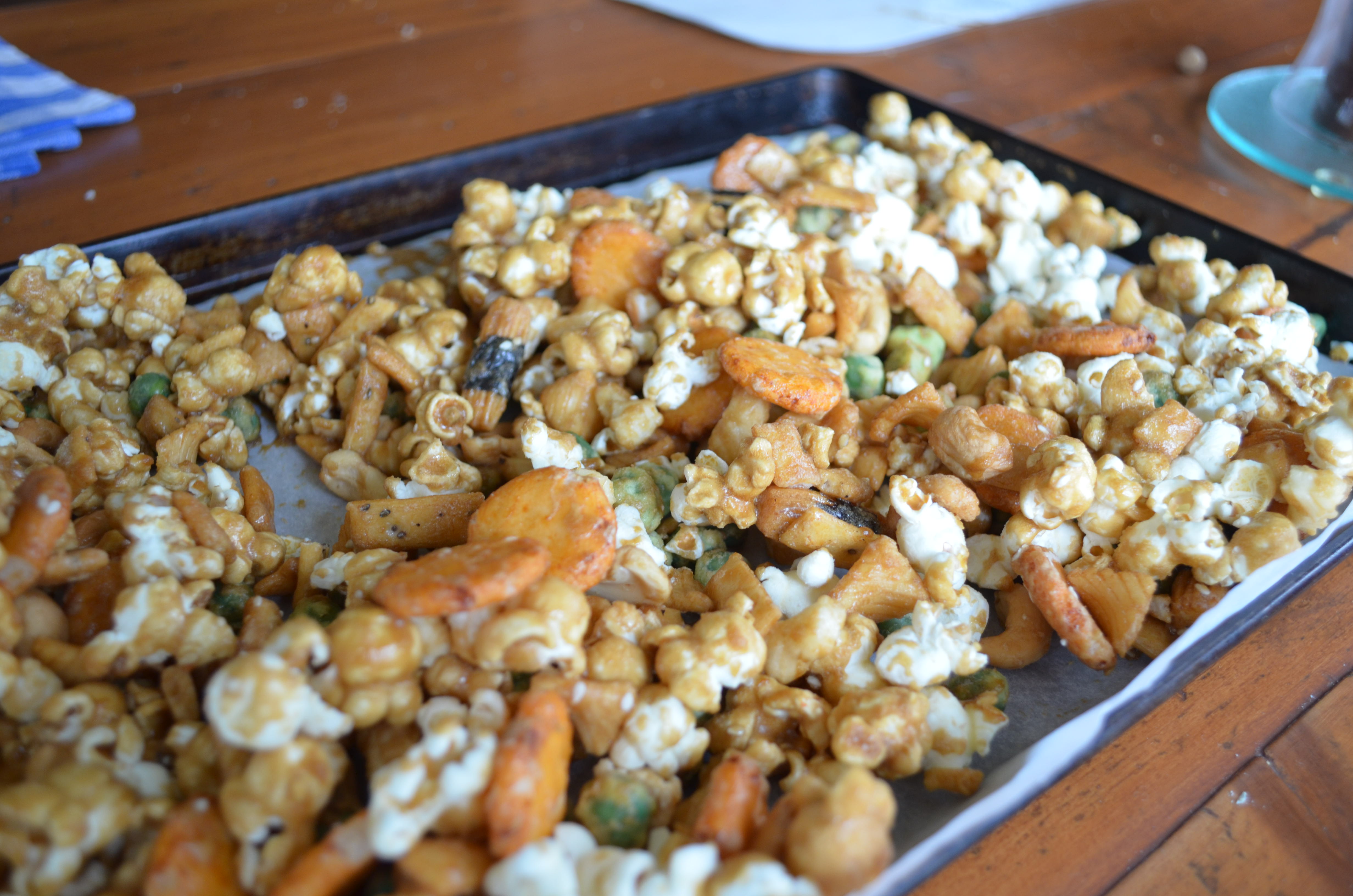 Sweet And Salty Caramel Popcorn Mix With Wasabi Peas And Cashews
