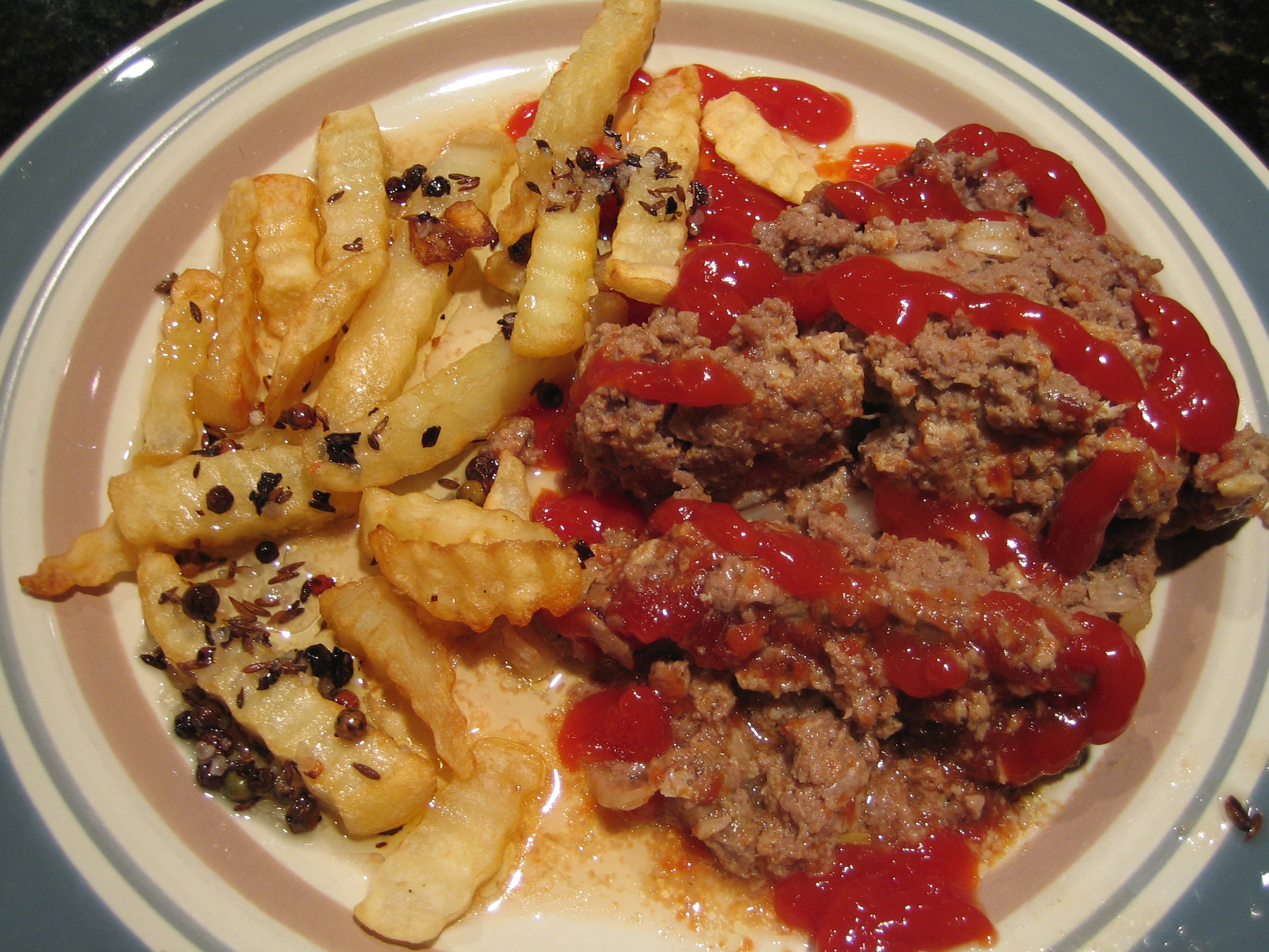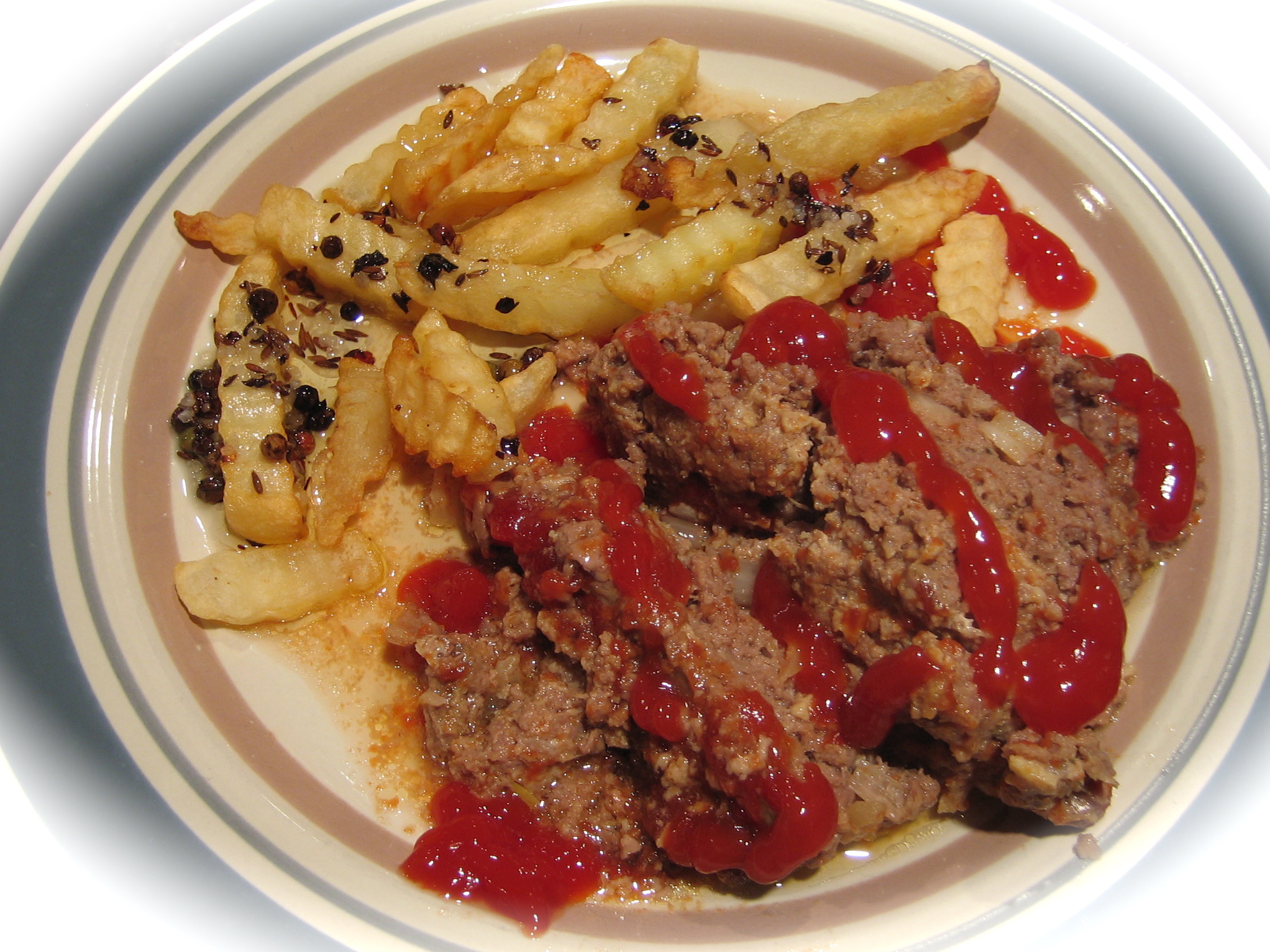 3. Spread ketchup in the bottom of a 9x5x3 inch loaf pan. Top with meat mixture. Top with more ketchup if desired (Yes, this is desired).