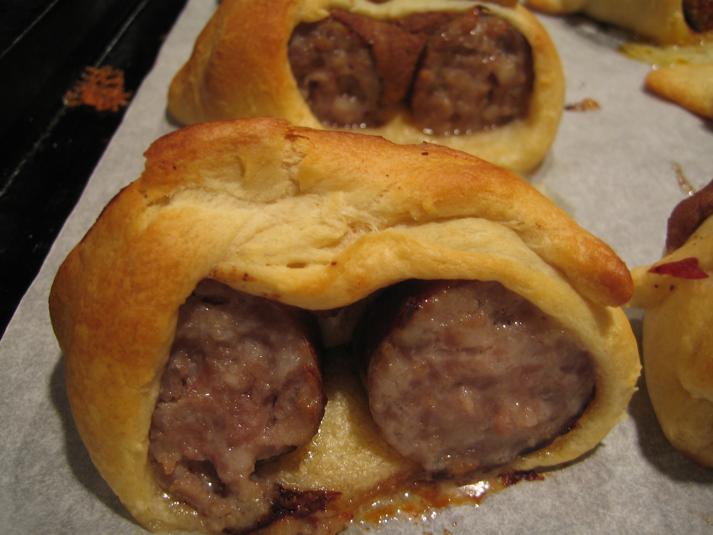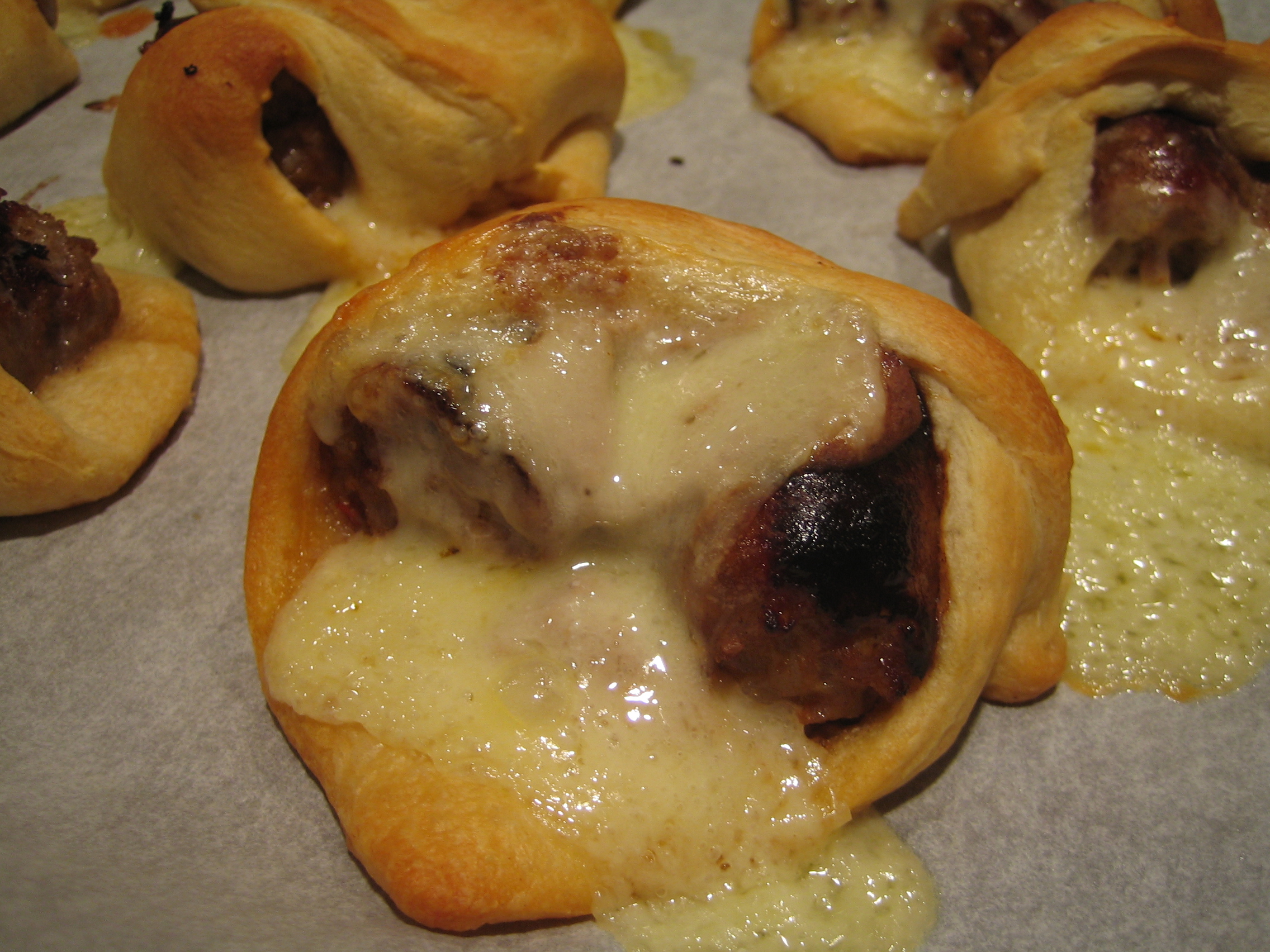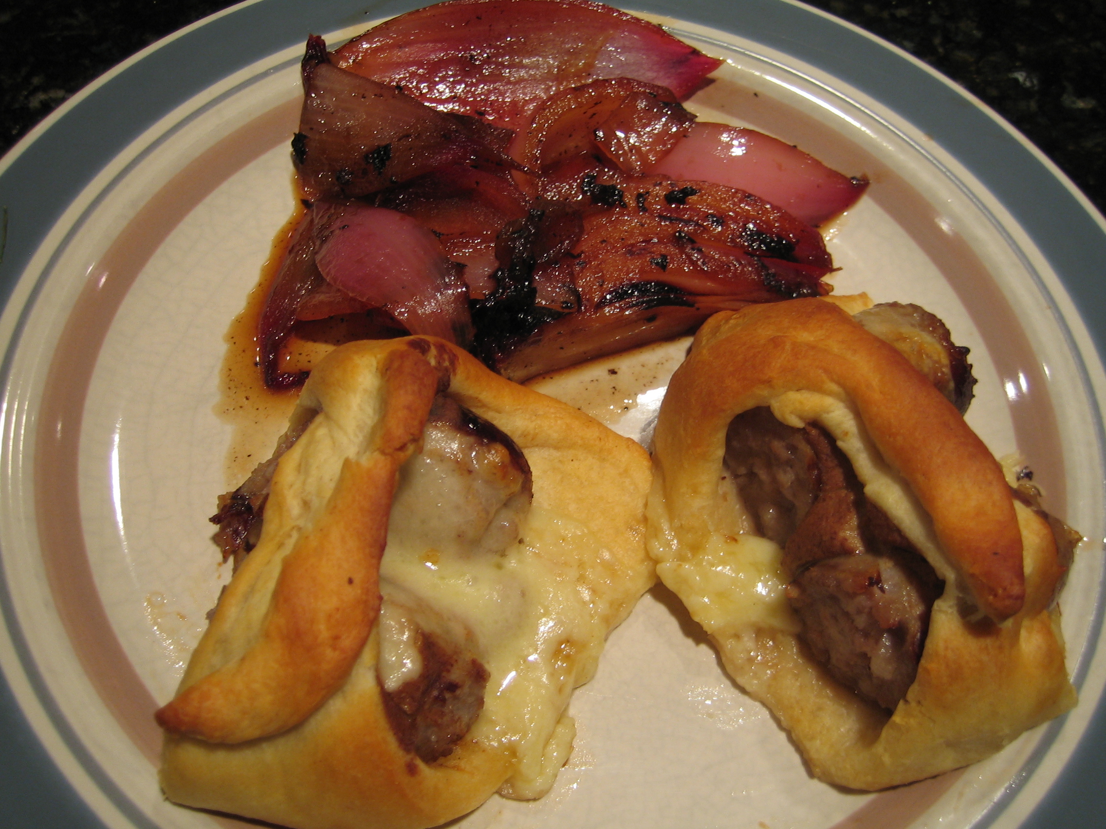 Sausage is so good covered in cheese and mustard and baked up in dough. The onion side is the perfect accompaniment.